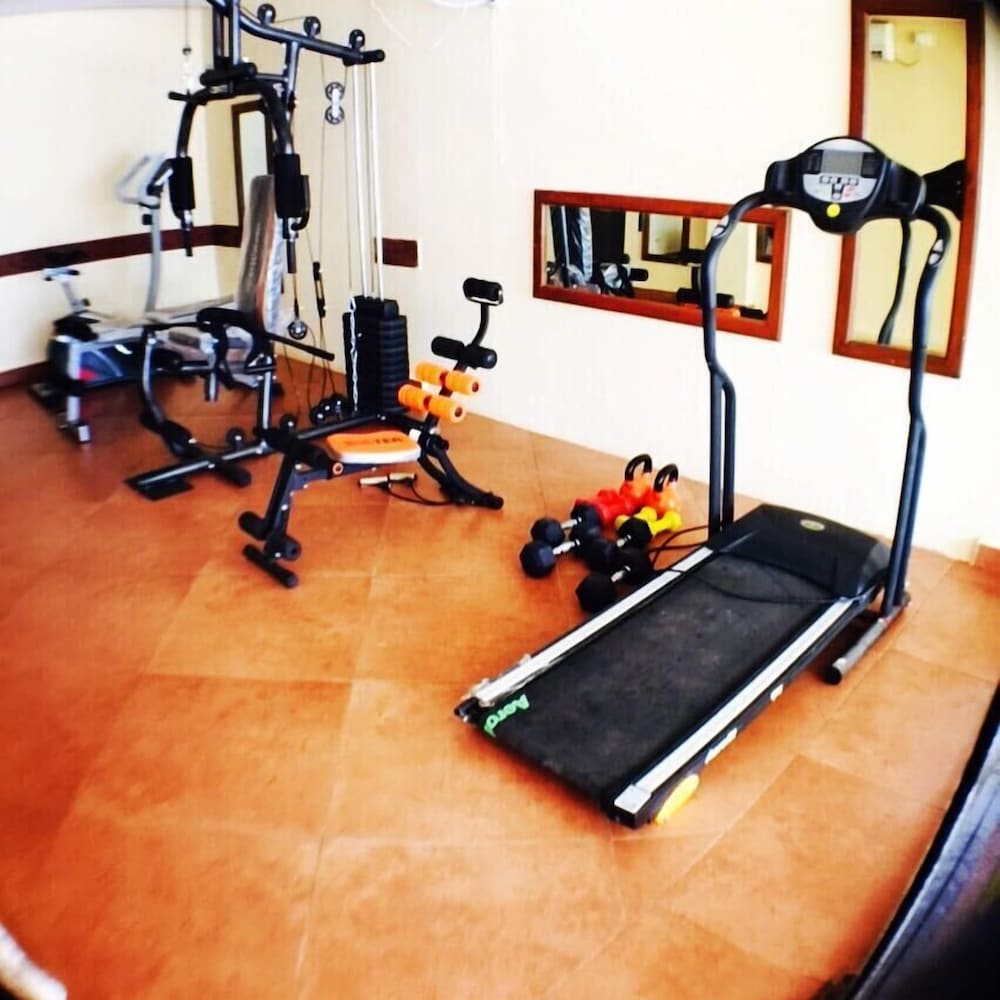 Enjoy the outdoor pool and fitness center at Camelot Fantasy Resort for a relaxing stay.