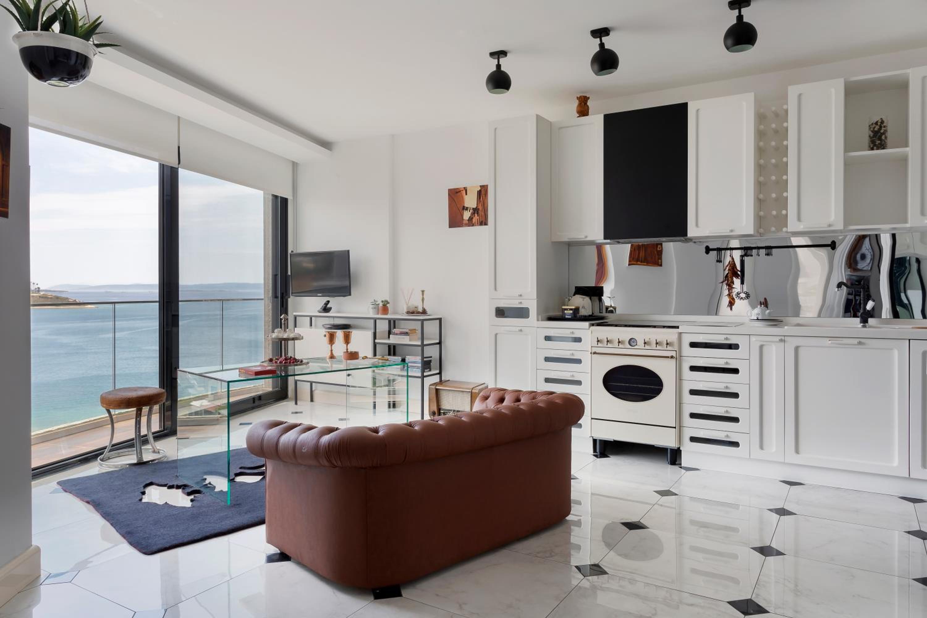 Prachtig uitzicht, zeer schoon, zeer luxe en comfortabel. Ontvangst was erg gastvrij en de service was geweldig. De omgeving is in het rustige gedeelte van Cesme en op loopafstand van het centrum.