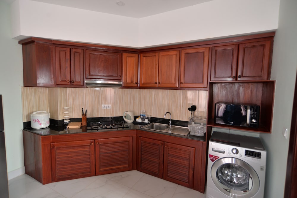 This place was great! Location is really unbeatable within walking distance of the heart of the city, tons of great restaurants, and one of the best grocery stores in Phnom Penh is across the street. The hotel receptionist, Panha, is very friendly and helpful. Also, the rooms are comfortable and the kitchen is stocked with cooking ware.