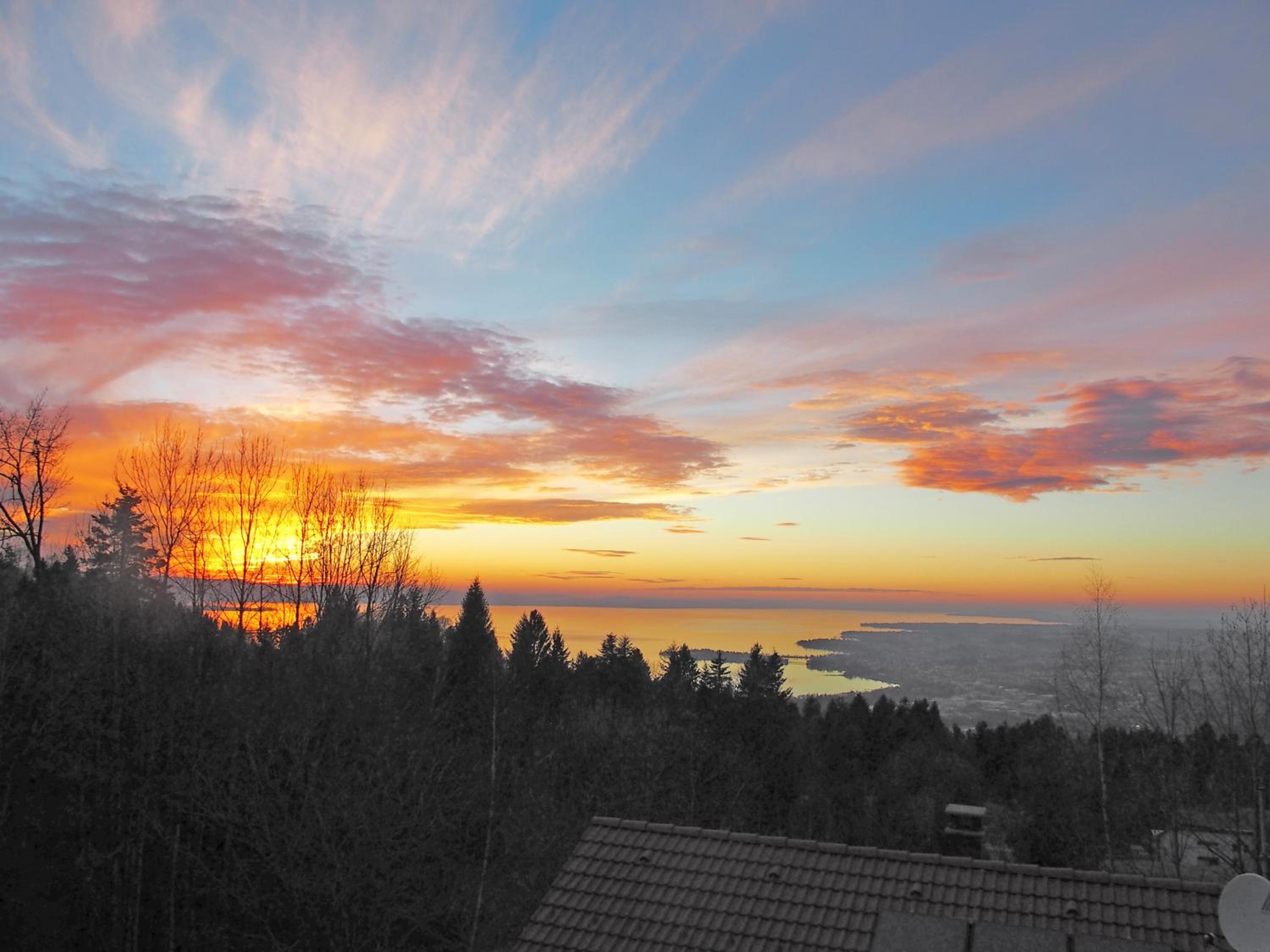 Freie Sicht auf den Bodensee von der Dachterrasse sowie vom Wohn- und Schlafzimmer aus