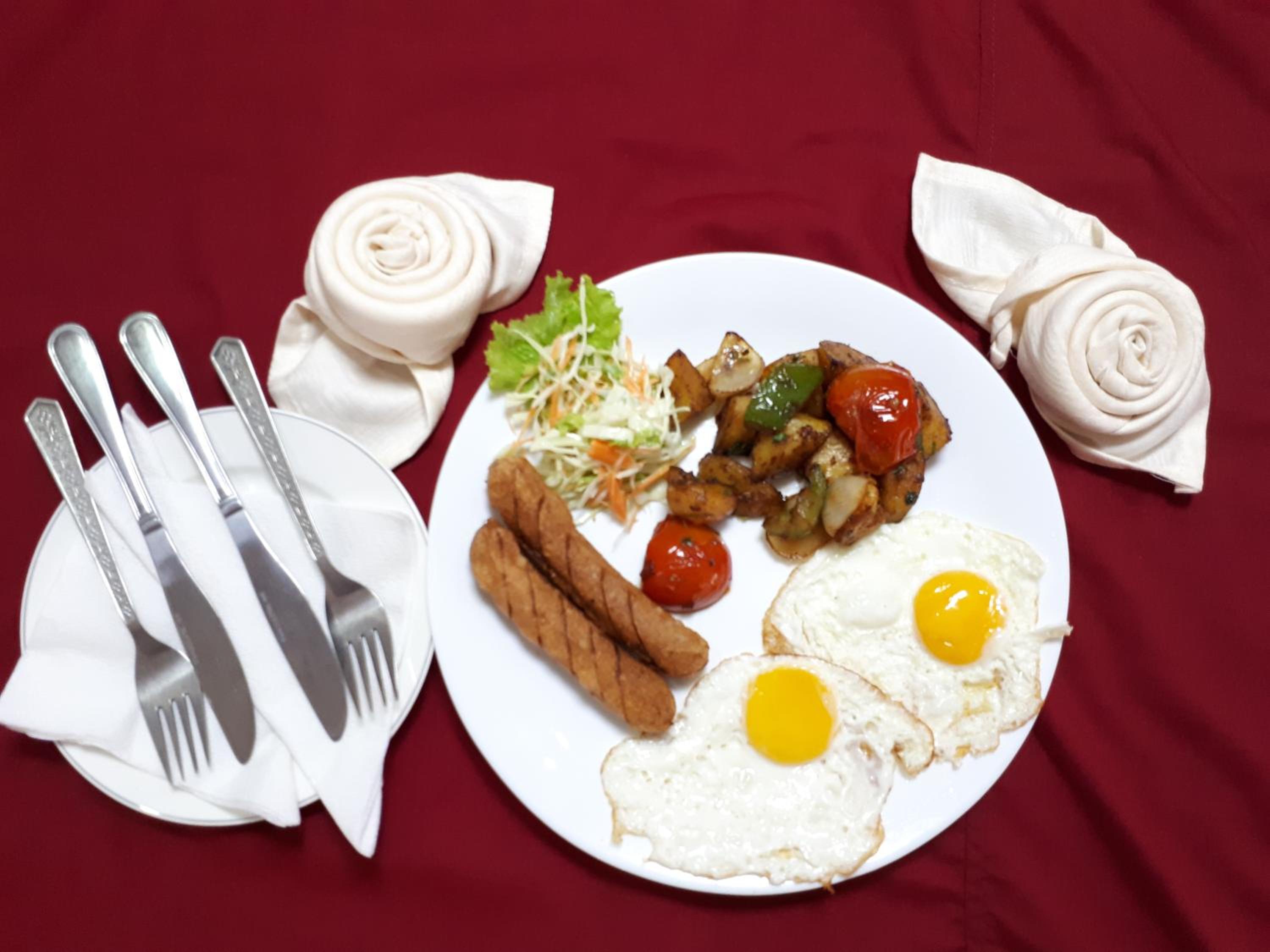 The free breakfast was only breakfast for name: Toast, coffee/tea, 1 egg omelette and 4 pcs of fruit cut into cube size.