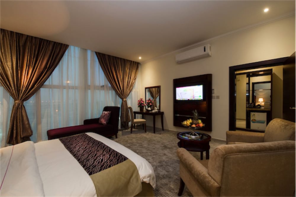 Immerse yourself in comfort in our air-conditioned rooms with modern amenities like refrigerators, LCD TVs, and complimentary Wi-Fi. Explore nearby attractions like Fawars Mall and Al-Ahsa Oasis, all just a short drive away.