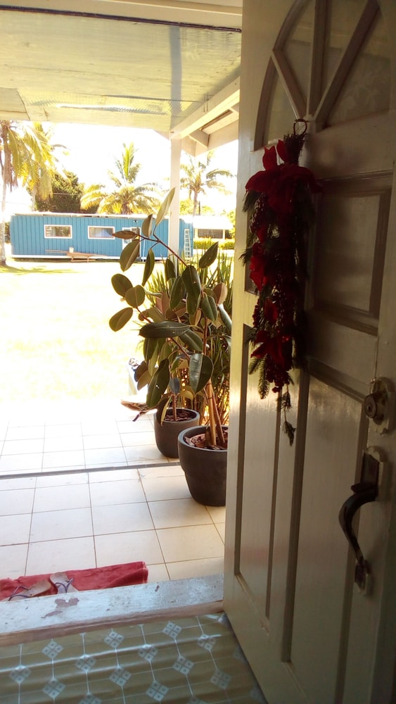 Plane was around 10mins late on arrival we booked driver from hotel and was unable to contact hotel, driver came to airport but didn’t wait for us so we had to arrange our own transport, our booking stated breakfast included however no breakfast was prepared we left around 8am from the hotel the next morning noone was around, we had to walk to domestic airport as we had a flight to another island, the rooms we had below needed cleaning/upgrade the condition was not great rooms smelt quite musty/mouldy, shower room light flickered when turned on and bathroom/toilet doors didn’t shut/no locks, prob ok if you’re on a real budget, pizza place on front lawn good, staff were nice.