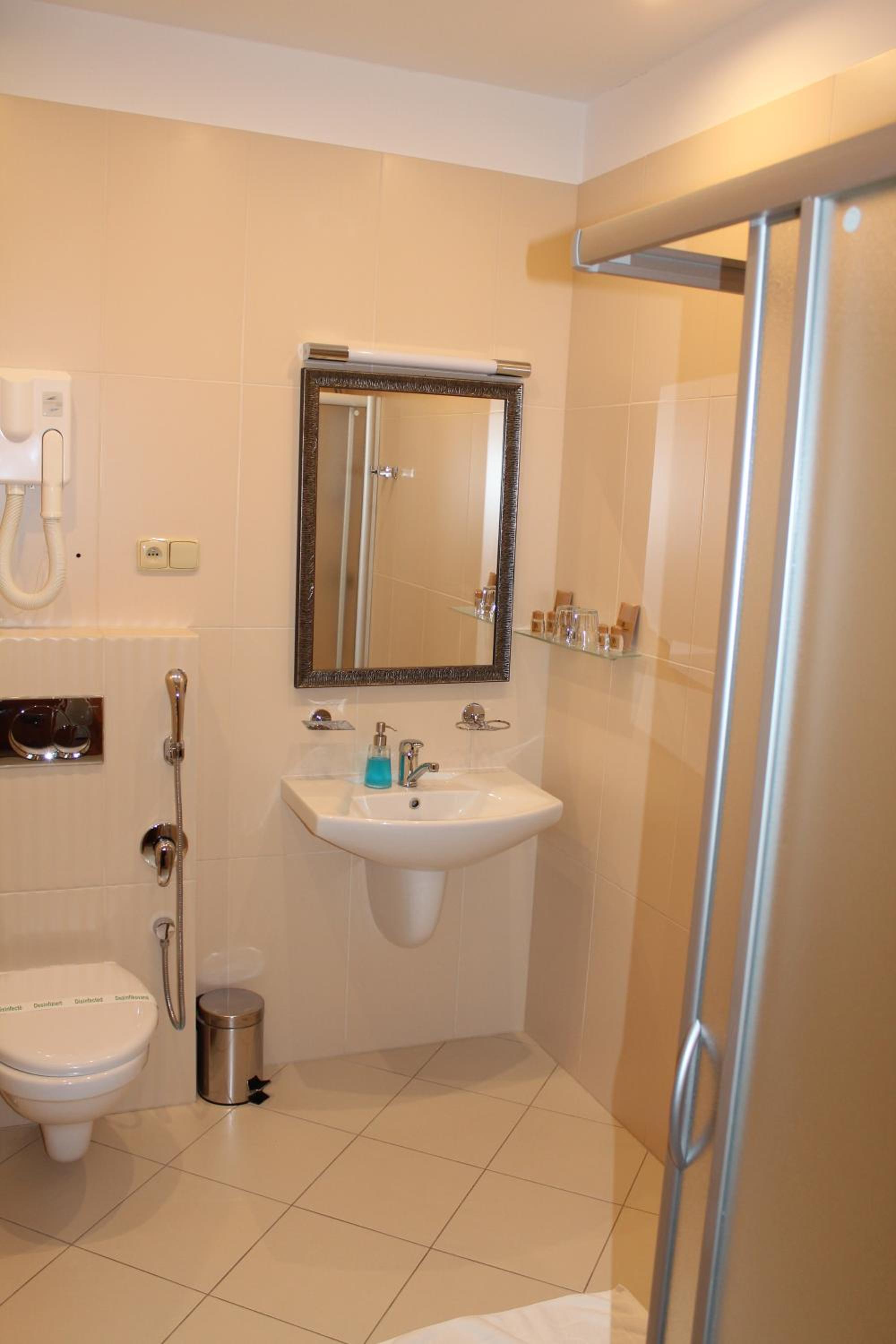 Explore the surroundings with bike rentals available on-site, or unwind at the nearby Thermal Spa Aphrodite just 100 meters away. With free private parking and proximity to the bus and train station, your stay at Hotel Encian promises both relaxation and convenience.