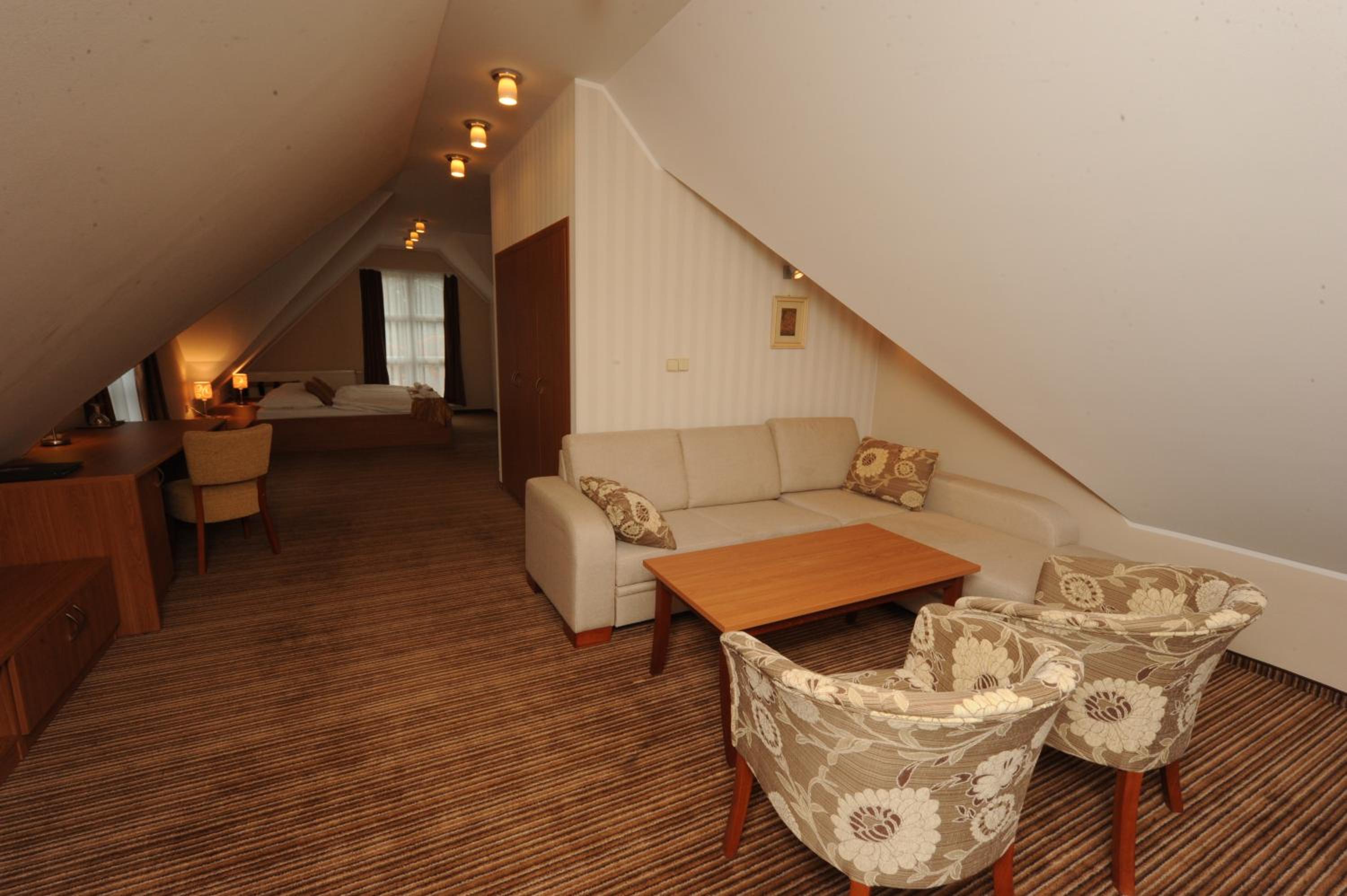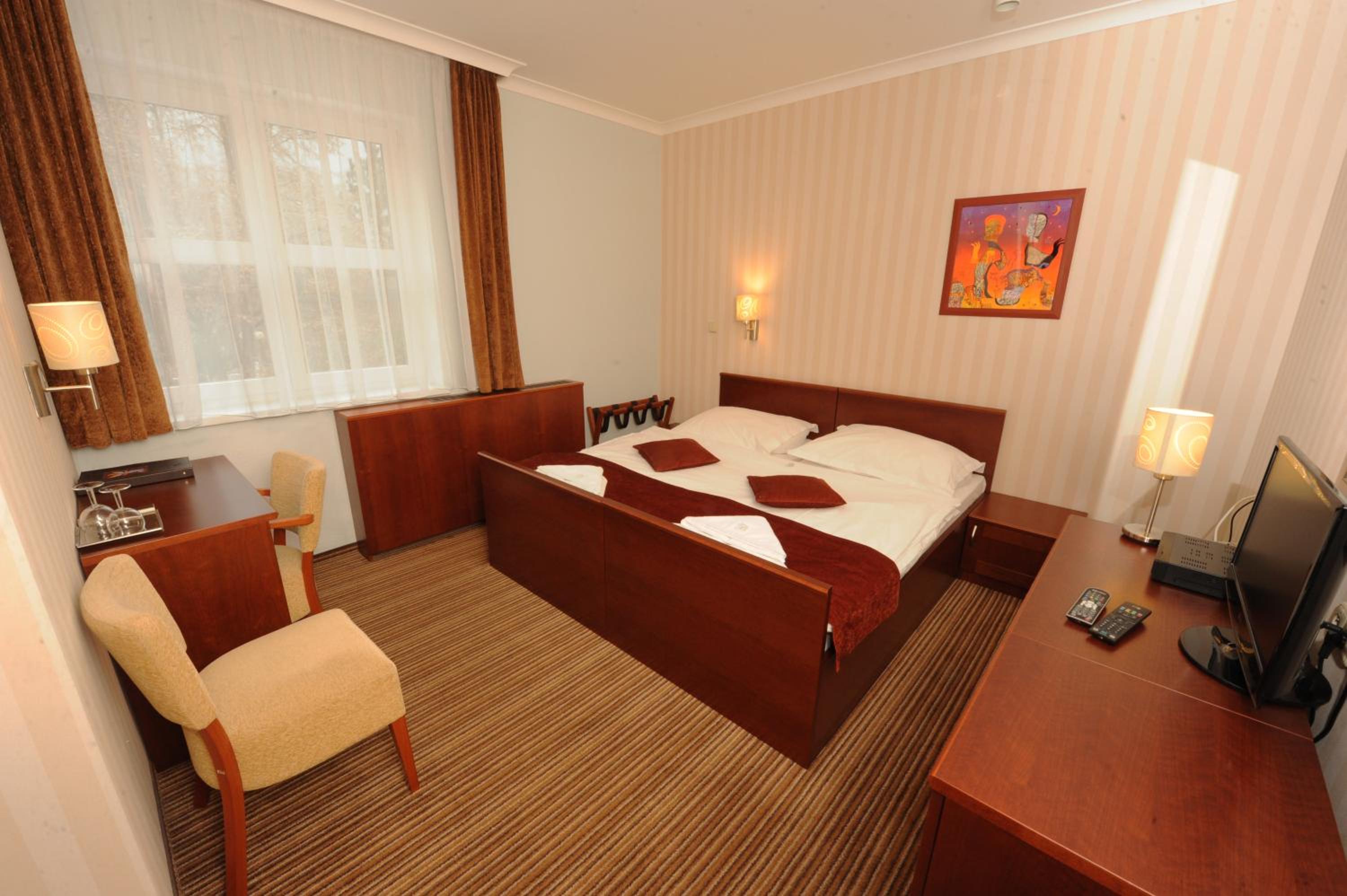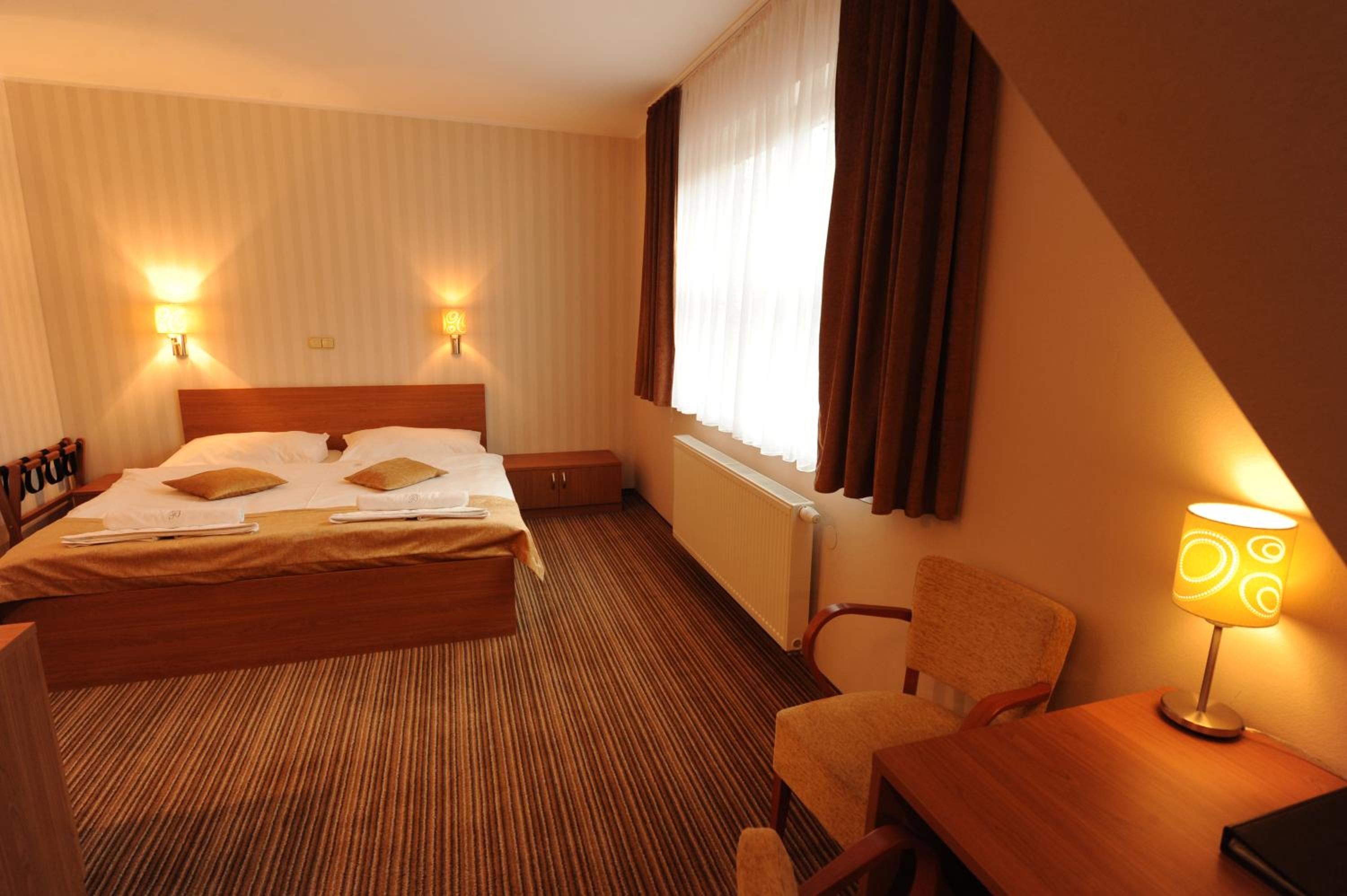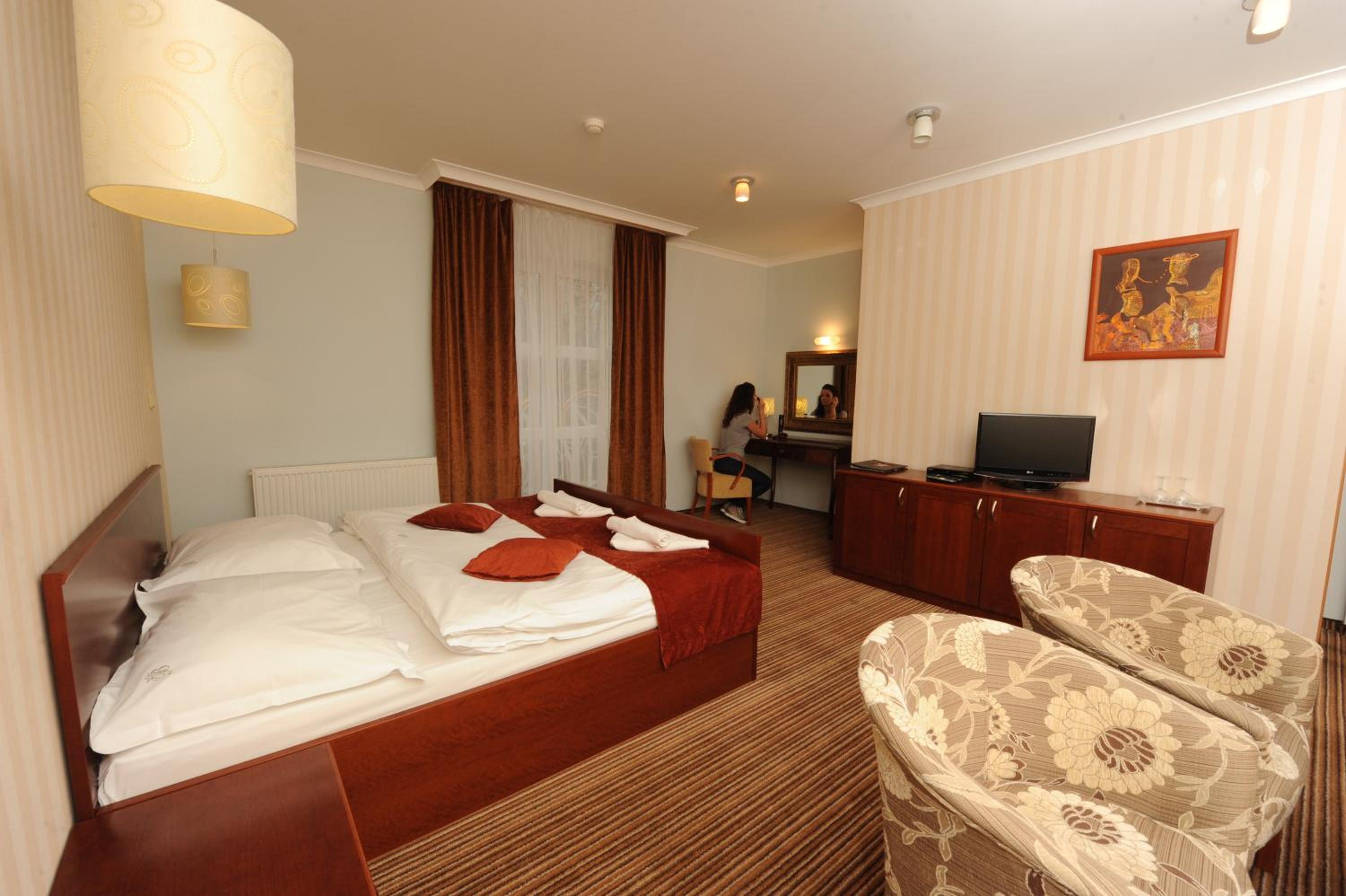 Hotel vzdialený len 100m od Spa Aphrodite. Za skvelú cenu si to nakombinujete s kúpaním a ušetríte veľké peniaze v porovnaní s tým, keby ste ubytovaní priamo v kúpeloch. V piatky a soboty večer vám v reštaurácii hrá kapela. Obsluha je veľmi priateľská, raňajky sú chutné a zodpovedajú 3 hviezdičkovému hotelu. Izby sú pekné, v hoteli sú krásne obrazy a fasáda hotela má zaujímavé kresby, maľby. V blízkosti hotela je pekné Labutie jazero, informačné centrum a obchod so suvenírmi. Mesto je obklopené krásnymi lesmi a pri hoteli tečie horský potok. Parkovanie je rozhľahlé, žiaden problém.V reštaurácii varia chutné jedlo.