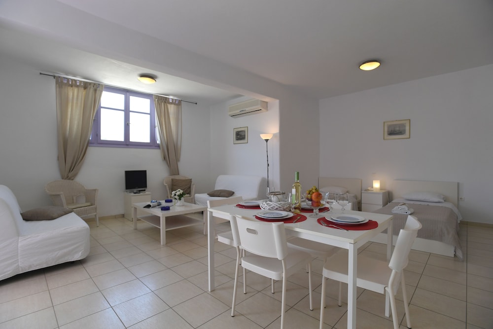 Very spacious, lovely welcome, very generous breakfast items, good proximity to Pyrgos & Panormas plus 2 balconies for sunrise and sunset!