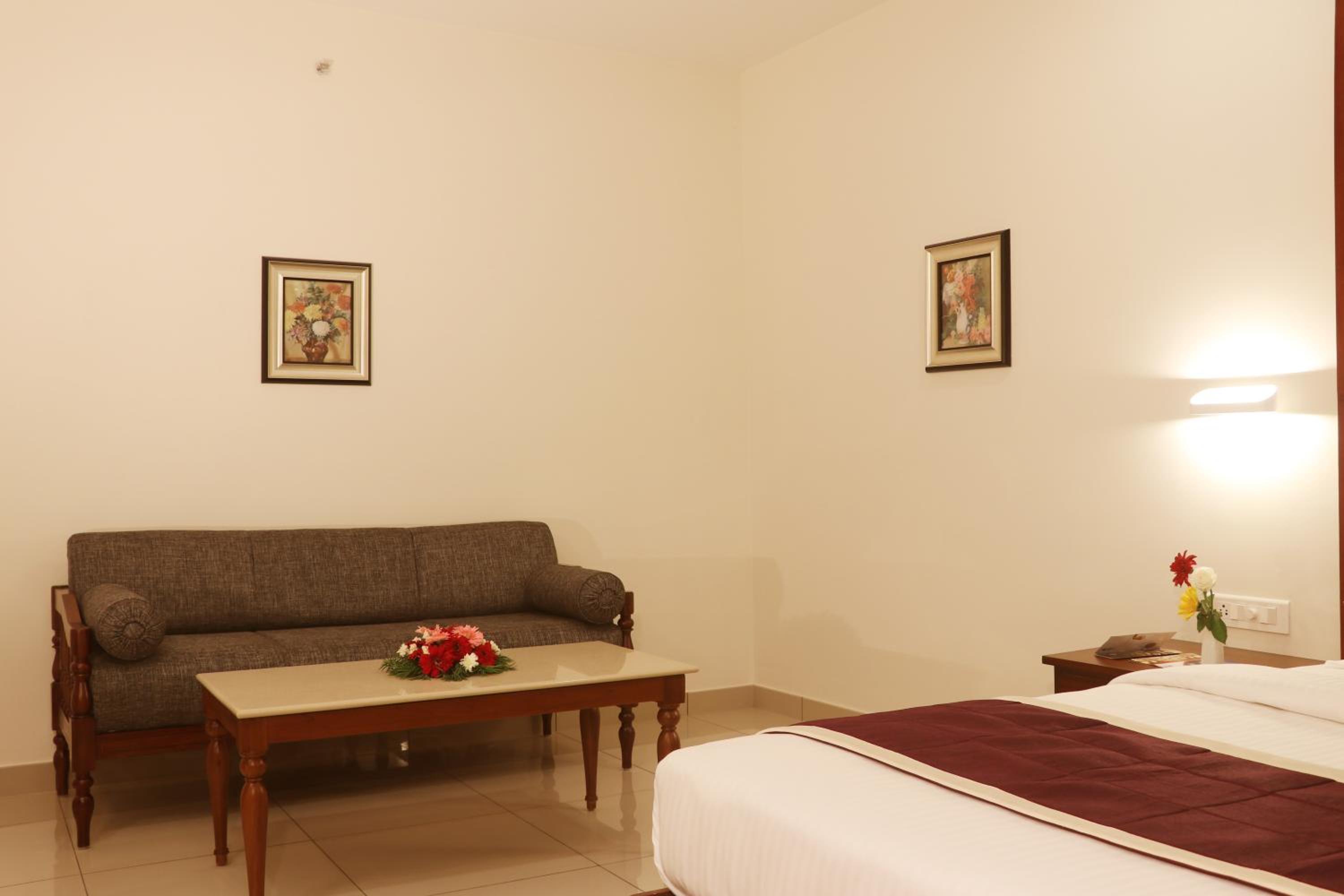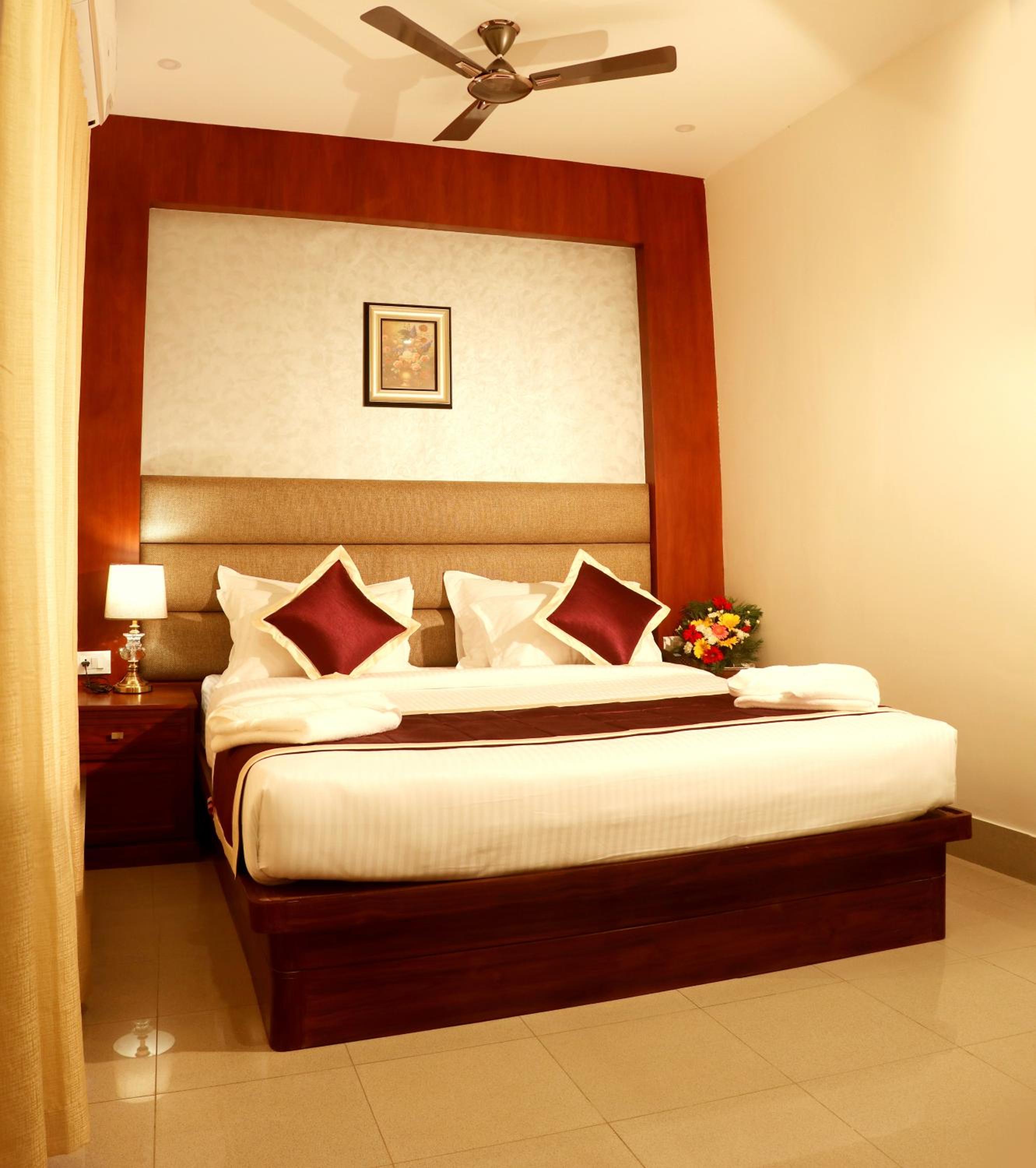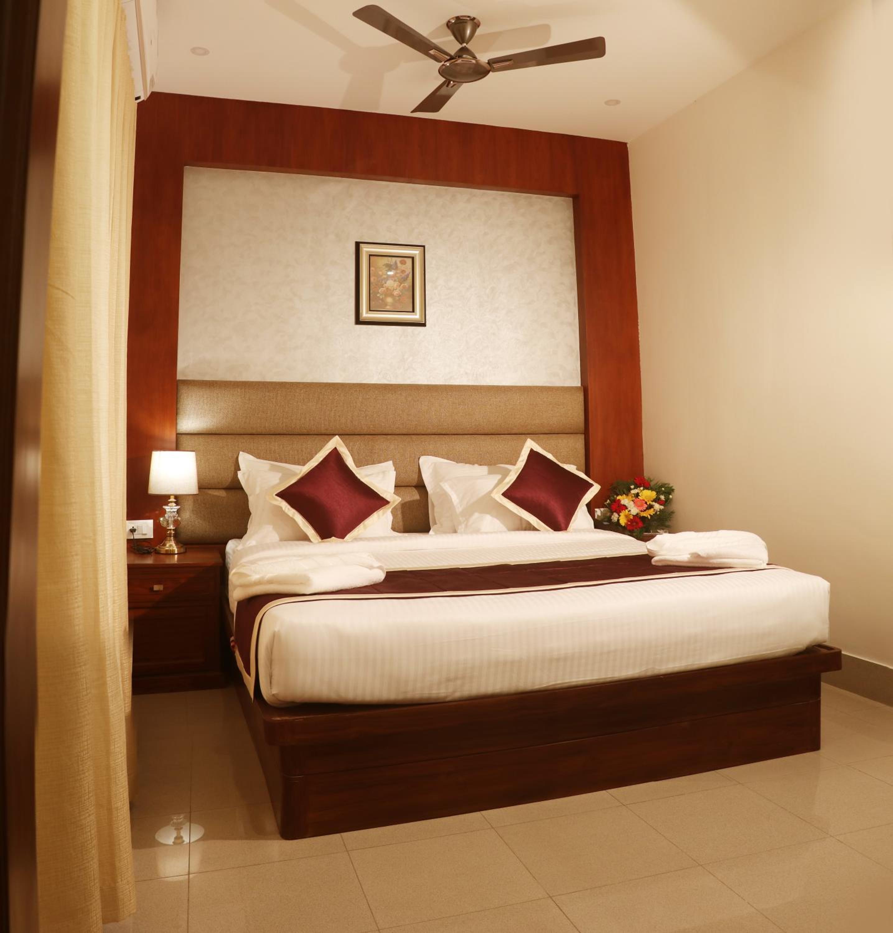 Bhasuri Inn Guruvayoor offers comfortable rooms with modern amenities such as flat-screen TVs, air conditioning, and free WiFi. The private bathrooms are equipped with complimentary toiletries, ensuring a relaxing stay for all guests.