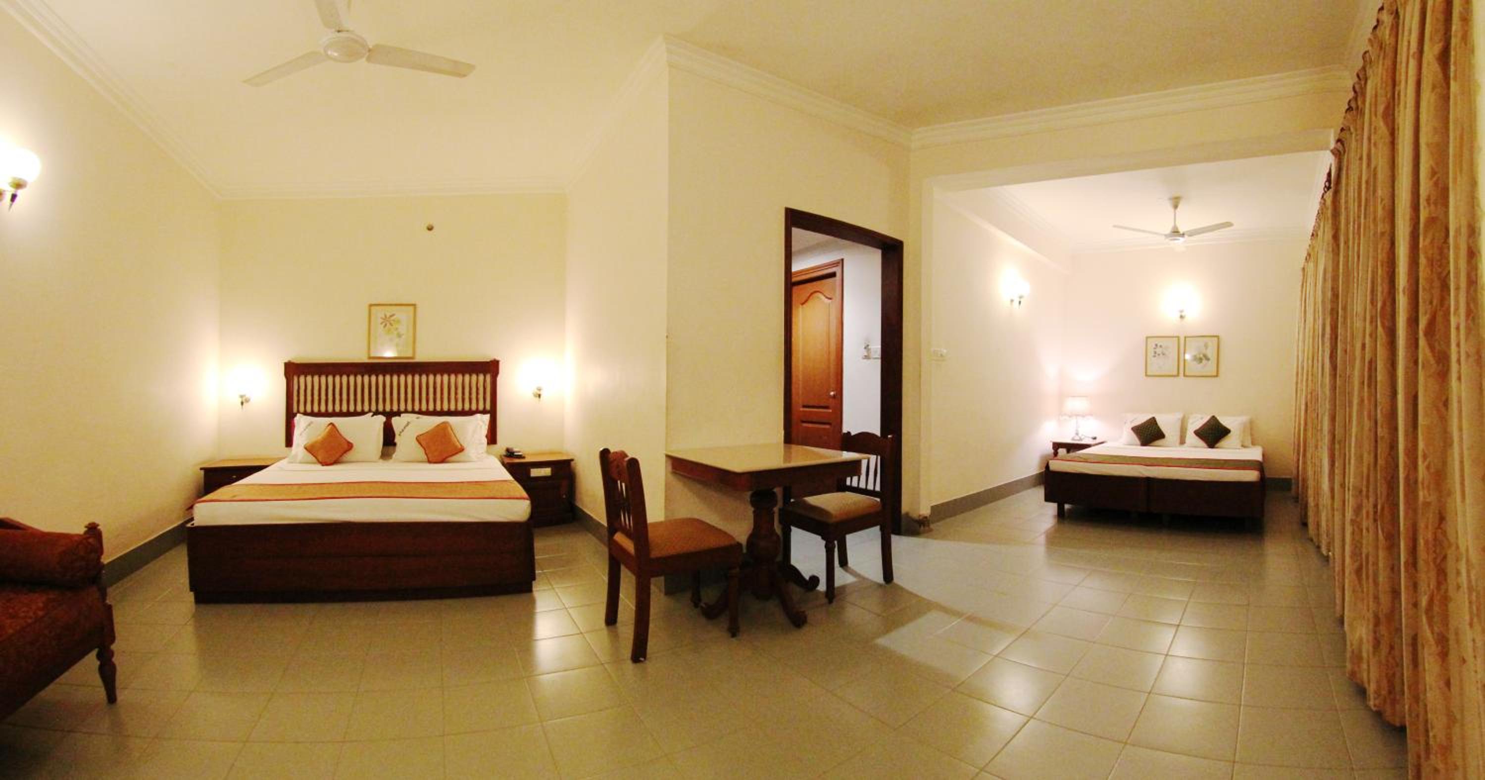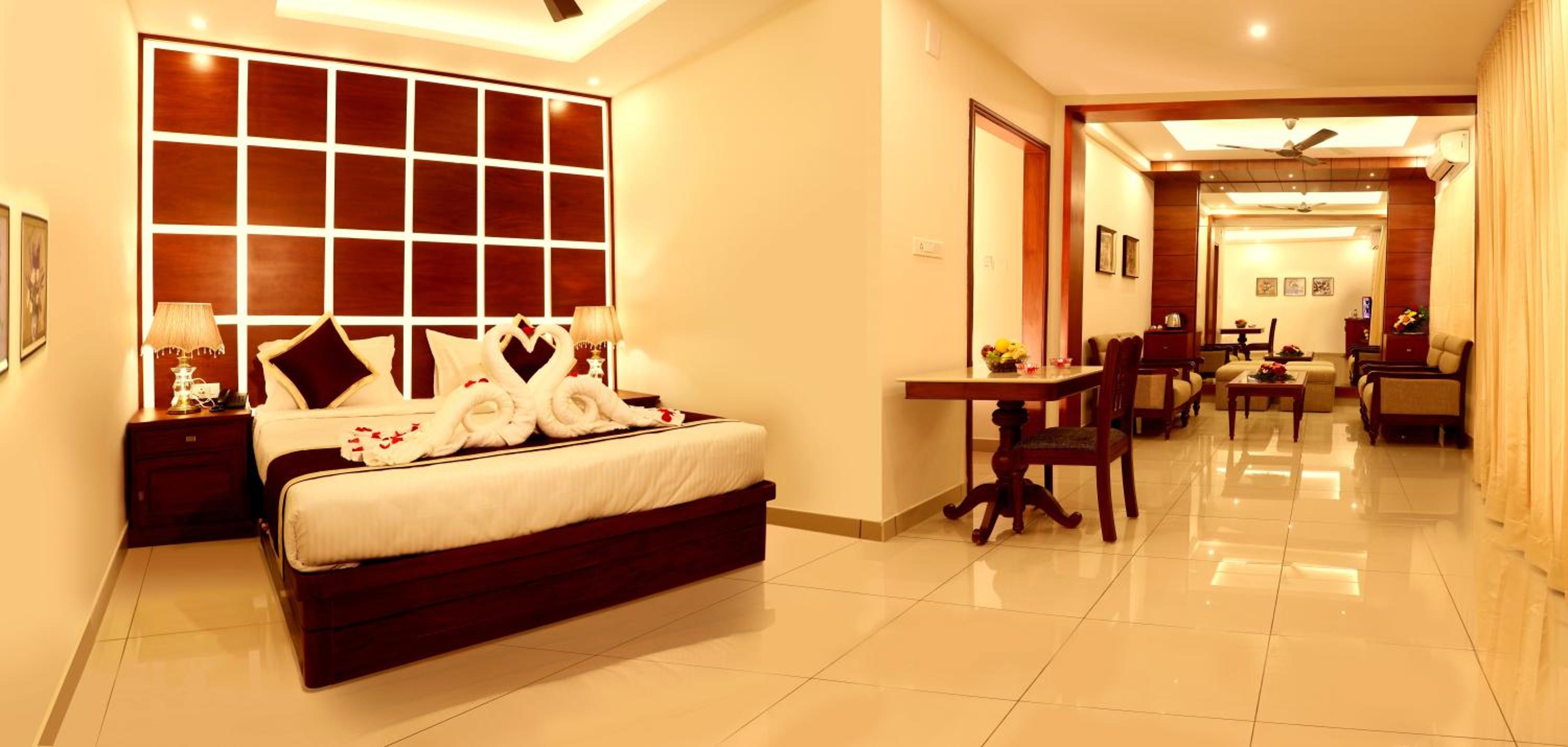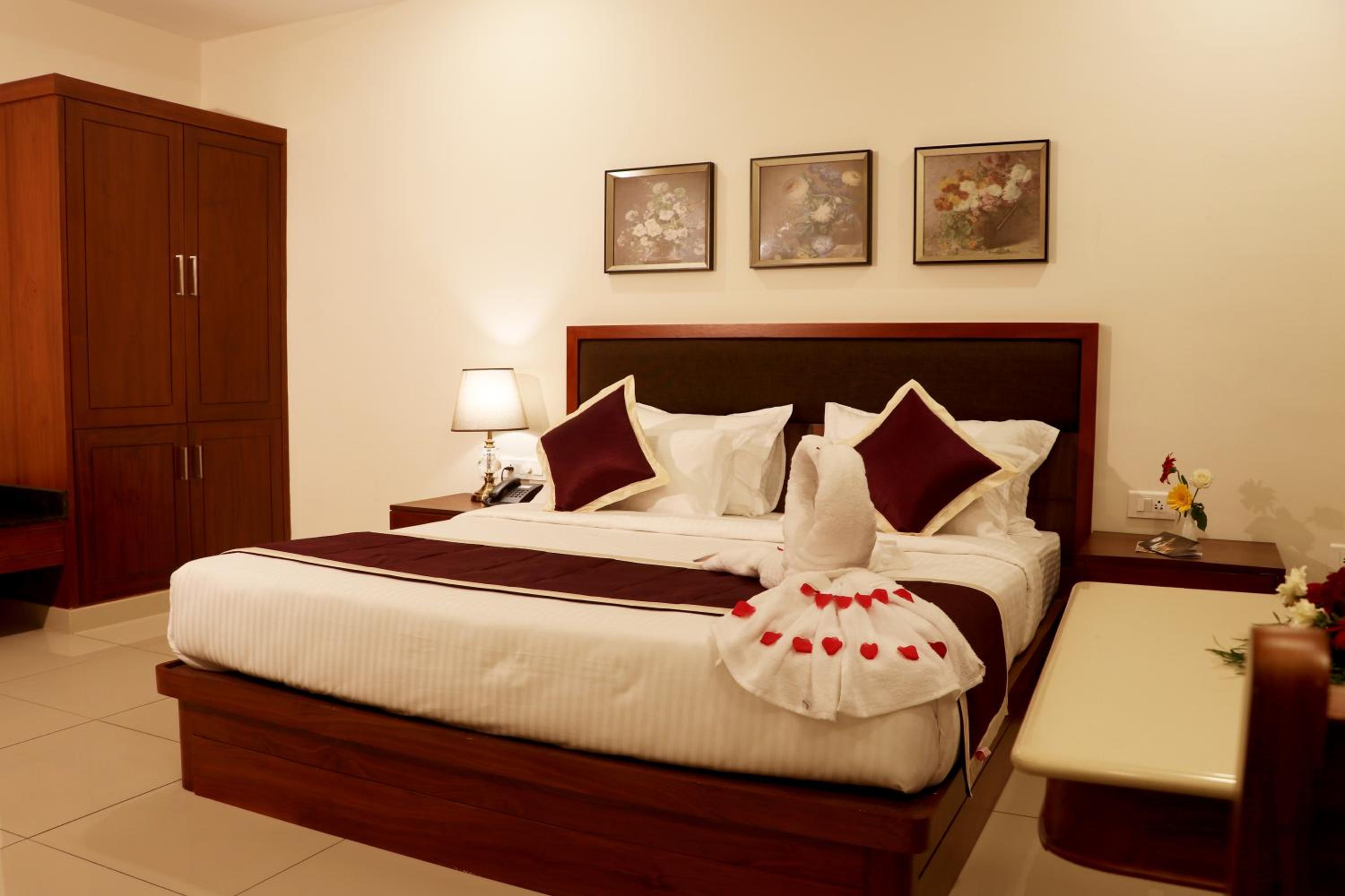 Bhasuri Inn Guruvayoor offers comfortable rooms with modern amenities such as flat-screen TVs, air conditioning, and free WiFi. The private bathrooms are equipped with complimentary toiletries, ensuring a relaxing stay for all guests.