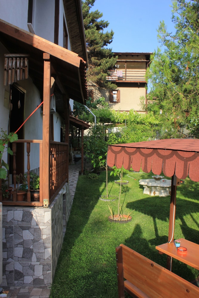 Güzel bir Safranbolu evi. Arkasında küçük bir dere var. Konum olarak çarşıya yürüme ile 10dk mesafede bulunuyor, çarşıya biraz yokuş malesef ama yürünemeyecek kadar değil. Çarşının içinde olmaması da iyi oldu, çünkü sessiz ve sakin bir konumda olduğu için gürültü olmadan rahatça uyuyabildik. Girişi ara sokakta olduğu için biz ilk başta sokağa arabayla girmeye tereddüt ettik fakat sokağa girilebiliyormuş, camiyle yan yana, önüne park edilebiliyor. Karşılama güler yüzlüydü, temizlikten de ayrıca memnun kaldım. Ev gibi ayakkabısız giriliyor, ayaklarımız hiç kirlenmedi. Odalar, banyo tertemiz. Odamızda klima ve sineklik vardı. Klima olması bizim için tercih sebebiydi. Sineklik olmasına rağmen küçük çocuk olduğu için ağaçlardan böcek girer belki diye pencereleri kapattık, klima güzel çalışıyor. TV yeterli. Kahvaltı da güzeldi. Tiryakiler için önemli, çayı lezzetliydi. Aile işletmesi olduğu da değerlendirilirse ben hizmeti gayet başarılı buldum. Yolumuza iyice dinlenmiş olarak devam ettik. Türkan hanıma ve sevgili kızına misafirperverlikleri için teşekkür ederiz. Bir sonraki sefer olursa yine tercih edebiliriz burayı.