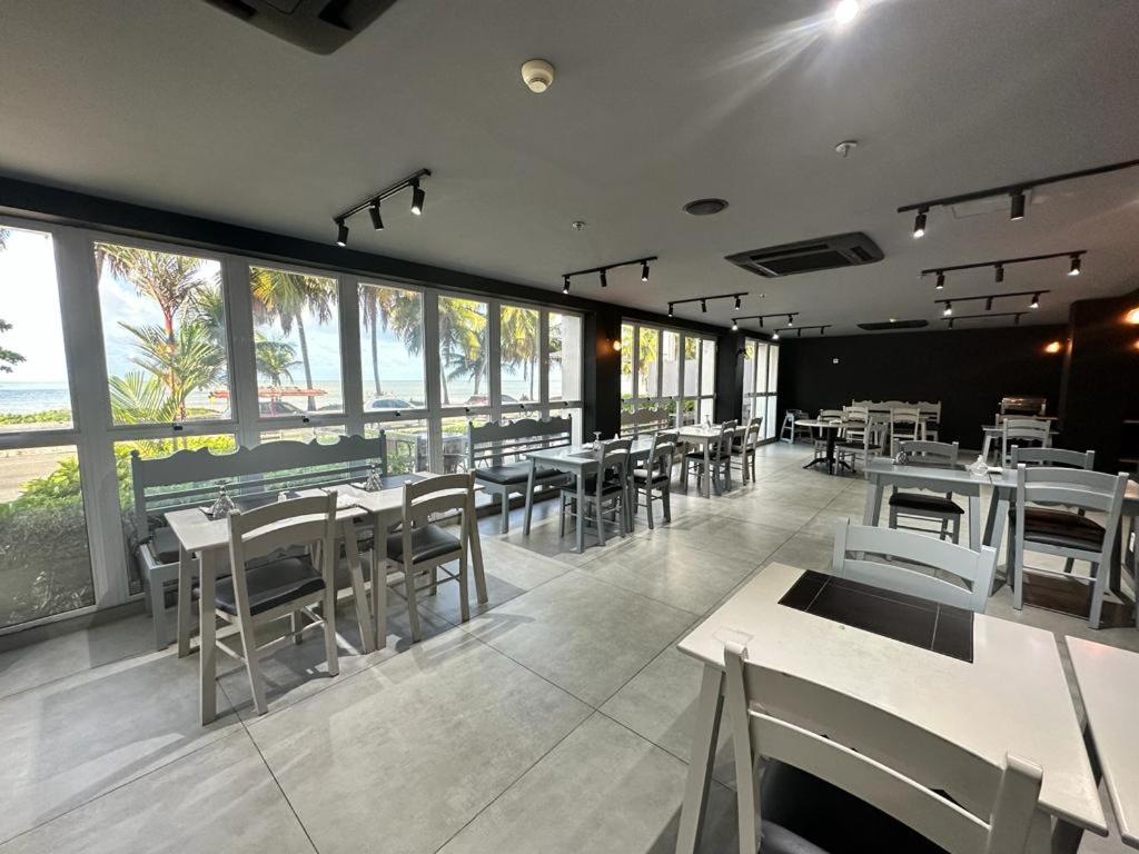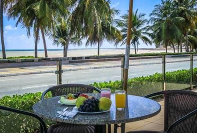 O hotel fica em frente à praia e a área do café da manhã tem uma vista bonita. O café da manhã é bom.