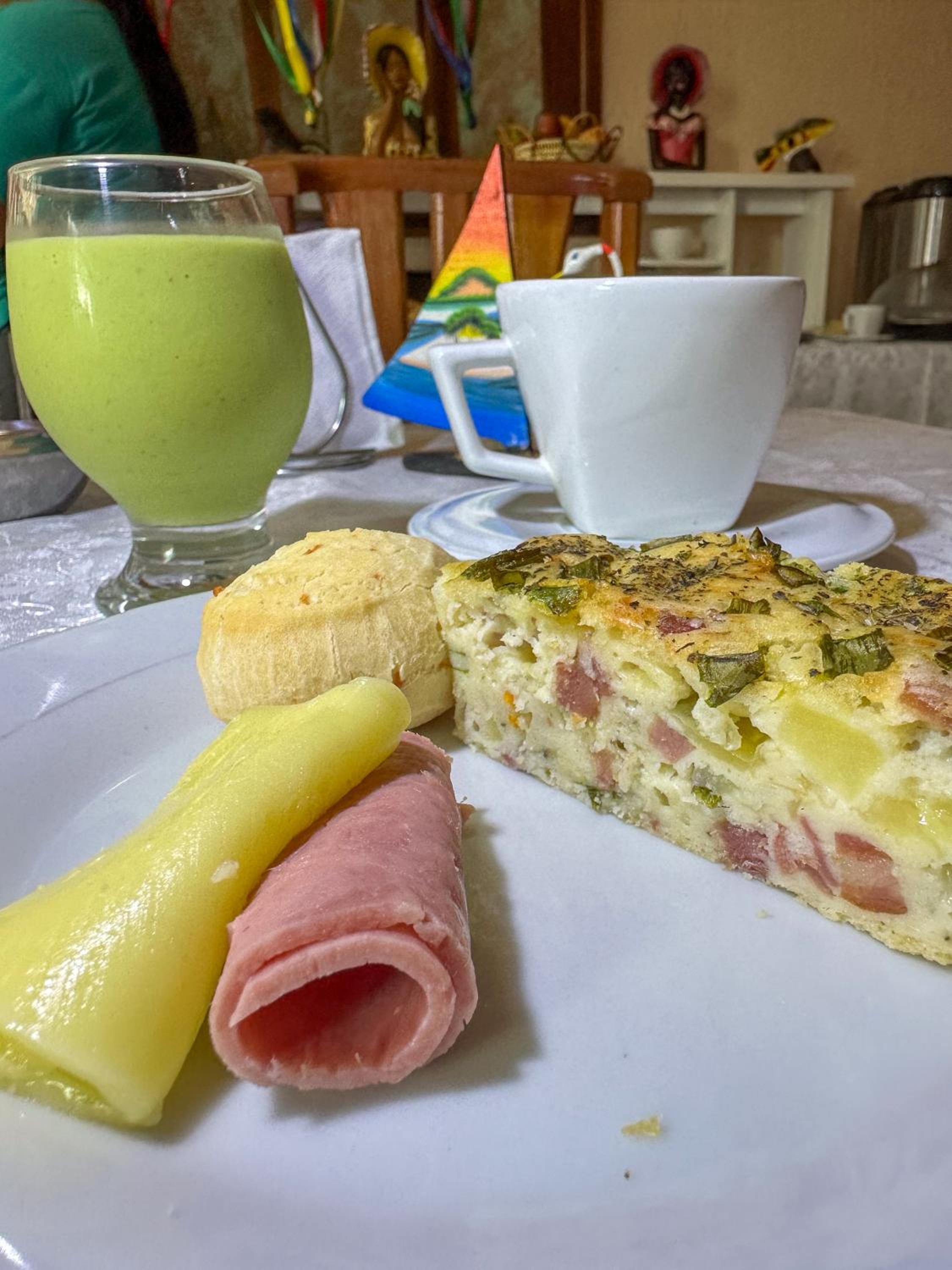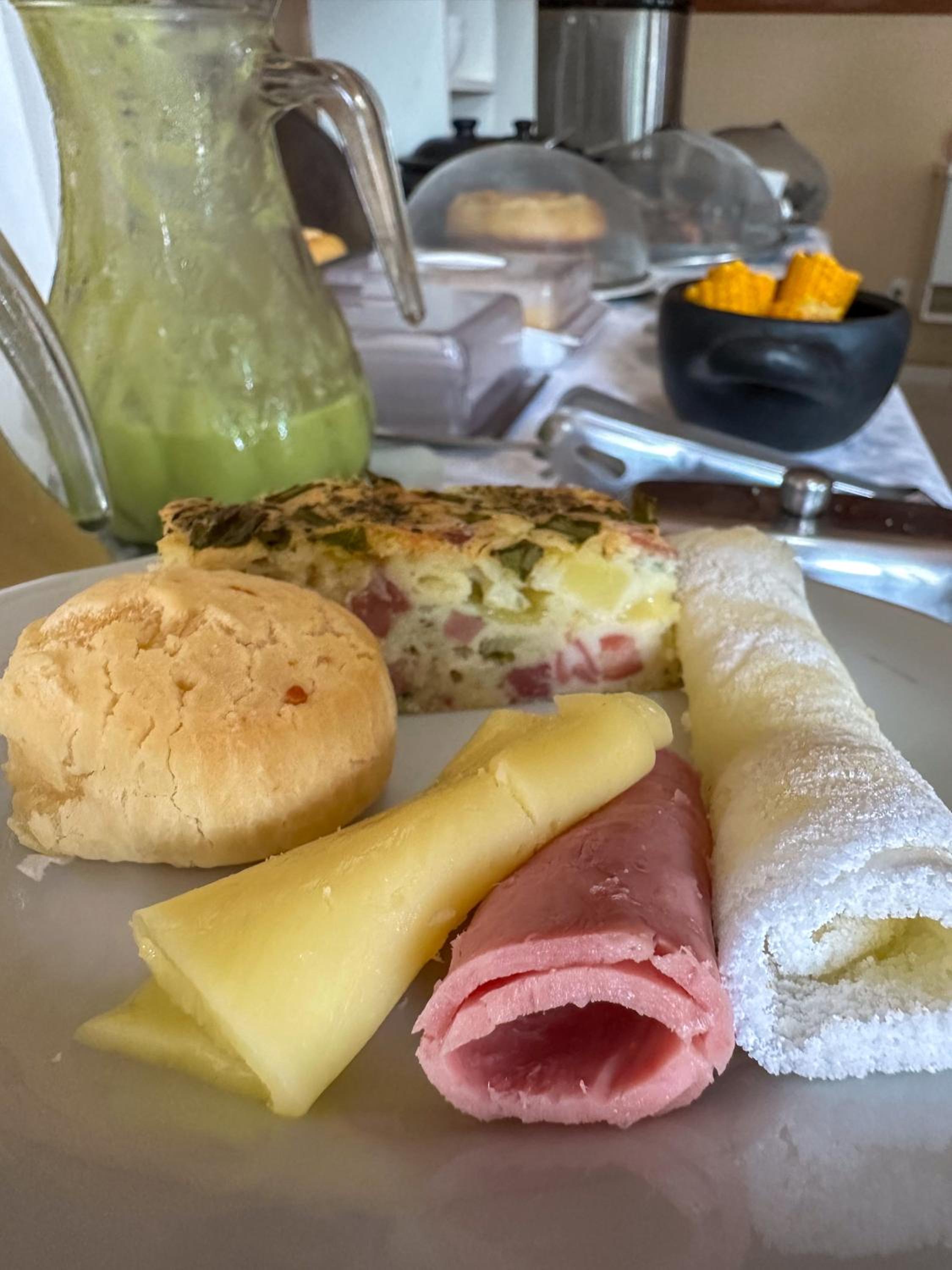 Café da manhã bom, mas sem muitas opções regionais, apenas sucos.