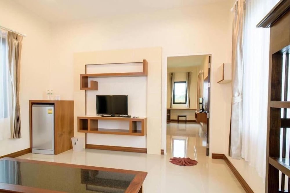 ที่พักอยู่ไม่ห่างจากถนนใหญ่ ห้องพักกว้างสบายมีที่จอดรถเฉพาะหลัง สงบไม่พลุกพล่าน ที่ควรปรับปรุงคือ พนักงานต้อนรับที่รับเช็คอินแล้วถามลูกค้าเคยมาพักที่นี่รึยัง ตอบไม่เคยมาครั้งแรก_เธอก็บอกห้อง... เลี้ยวซ้ายแล้วก็ขวา ยืนรอสักพักน่าจะไม่มีพนักงานไปส่ง ต้องถามว่ากุญแจอยู่ที่ห้อง? ปล่าวจ้ากุญแจก็ไม่ให้เรา เพลียใจจริงจัง ถึงห้องพักต้องหาทางเปิดแอร์ทีวีตู้เย็นเอง หาสวิสต์เบรกเกอร์เอง อีกอย่างที่พักไม่มีบริการกาต้มน้ำและชุดกาแฟ มีบริการเฉพาะกาต้มน้ำ 1 เครื่องที่ฟร้อนต์ (เพื่อบริการชงชากาแฟบะหมี่สำเร็จรูปที่วางจำหน่ายมากกว่า) ฟร้อนต์ไม่ค่อยสะอาด บรรยากาศไม่น่านั่งพักผ่อน. สรุป..โดยรวมที่พักดี แต่การบริการควรปรับปรุง