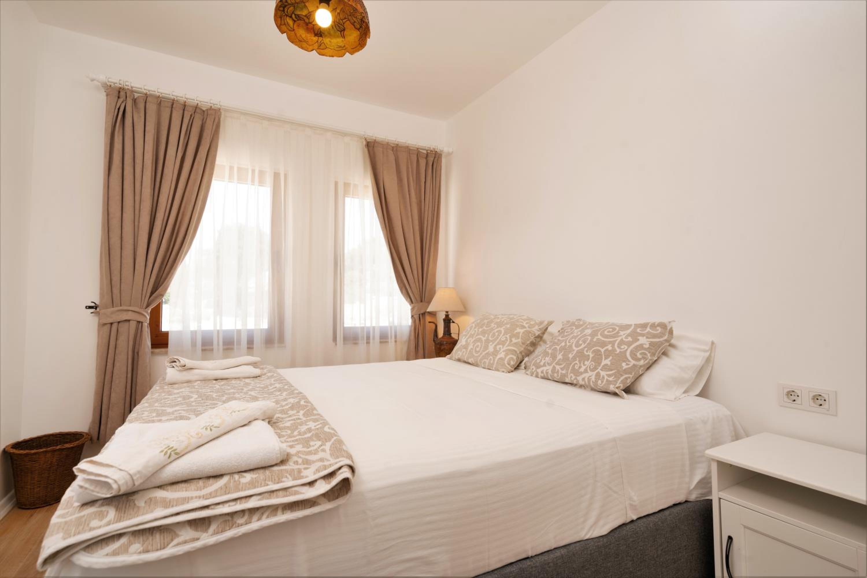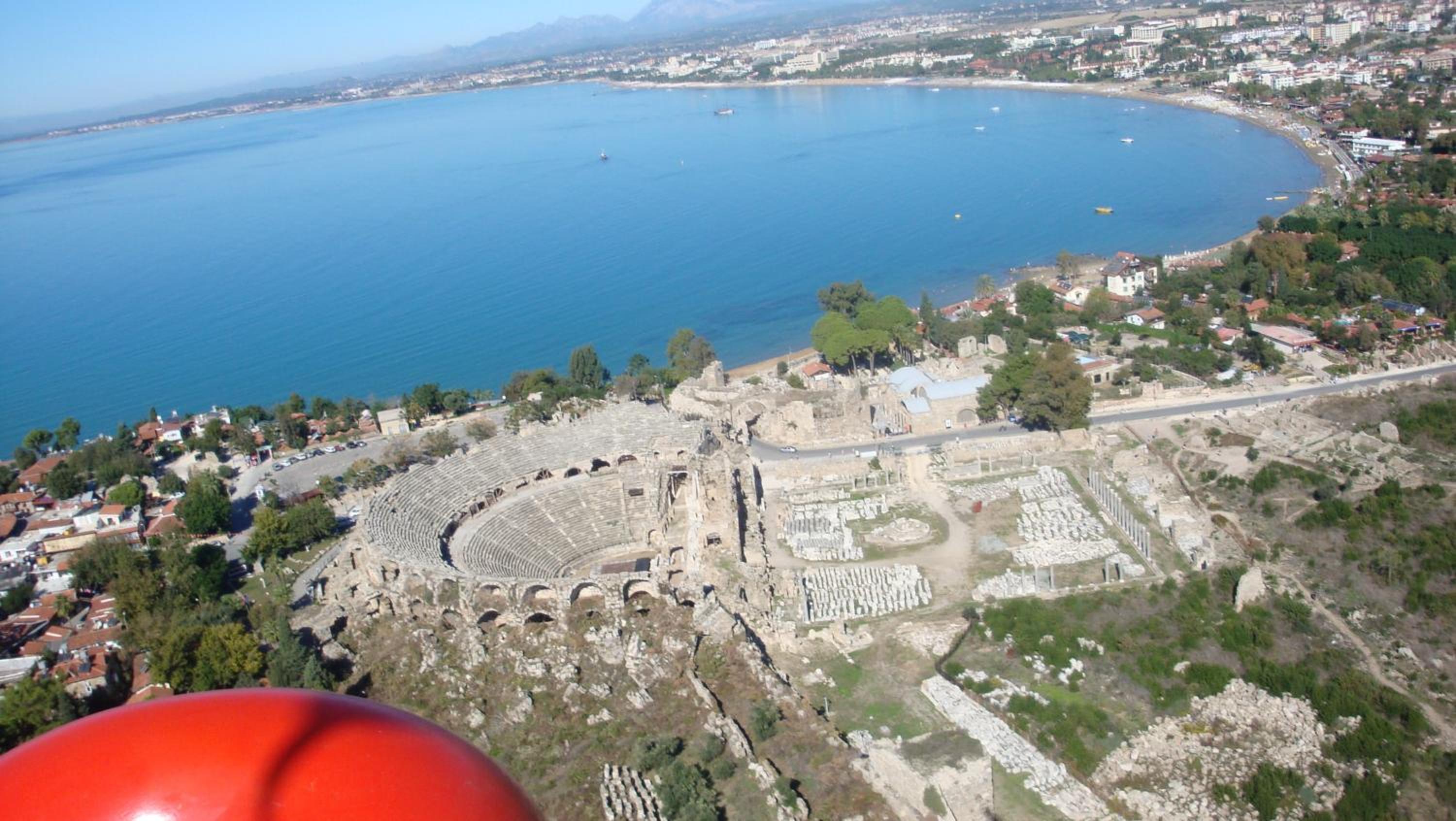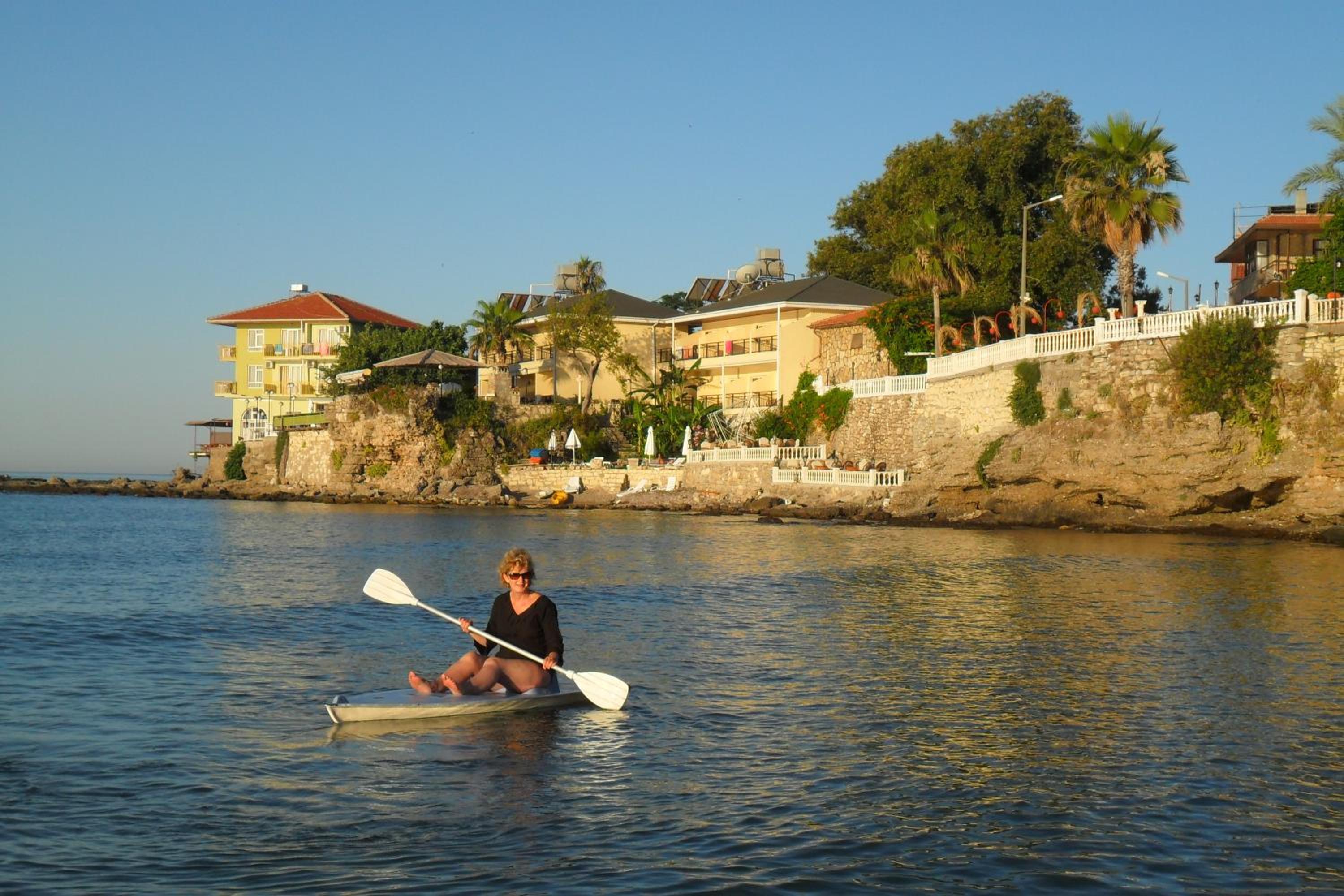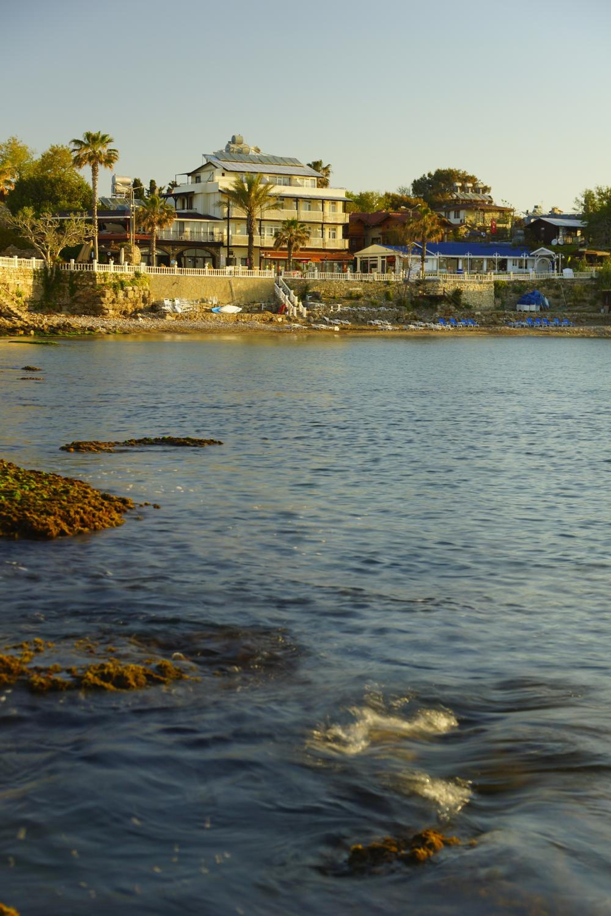 Oh, this place is wonderful!!! Beautiful view on the sea from 2 balconies, nicely decorated, clean, comfortable, very cosy. Located directly in Side antique city on the beach in a calm area but near to all the attractions.