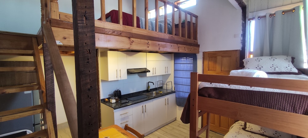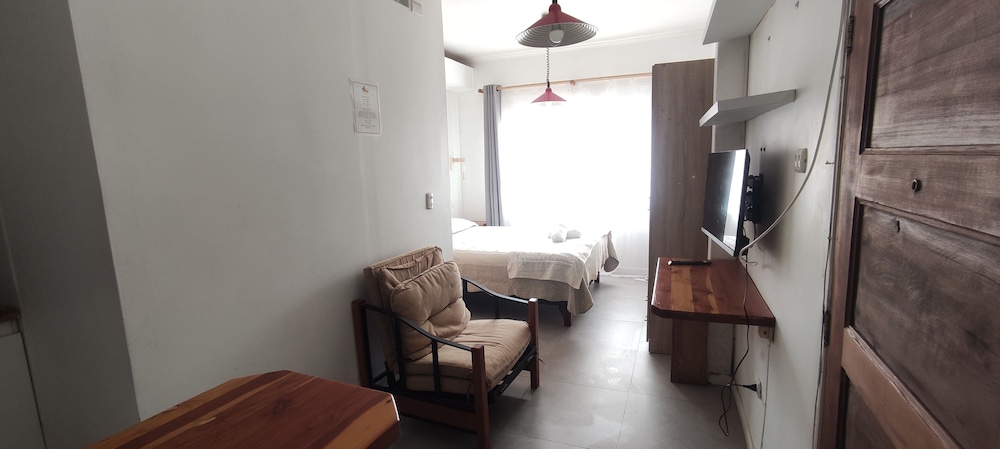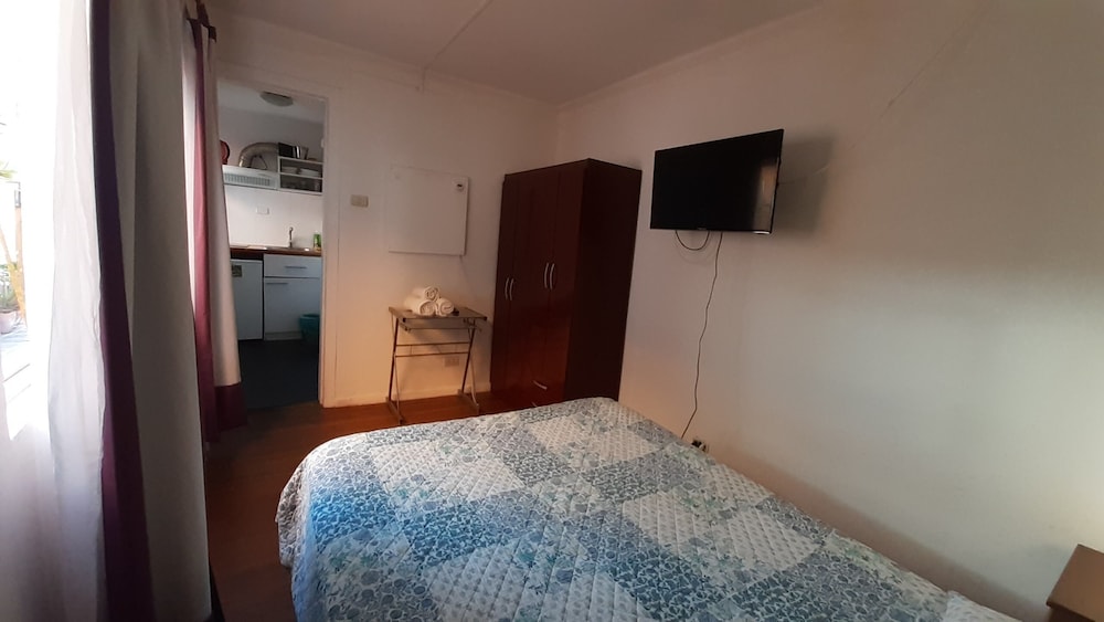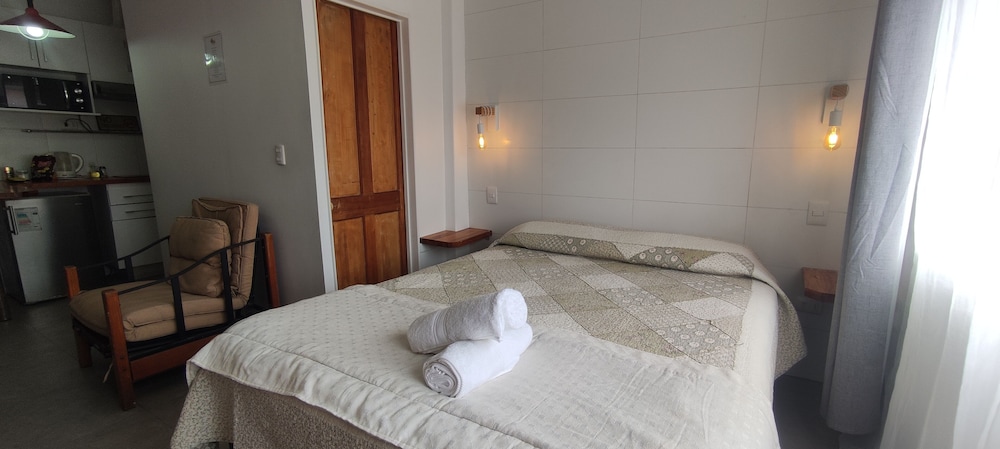 Llegamos al lugar, luego de subir una muy alta escalera nos encontramos con un patio desordenado y desprolijo con bicicletas, cajones apilados, ropa y una pequeña pileta. La habitación pequeña y no coincide con las fotos, atención muy mala desde el principio, ni bien comenzamos con el pago de acuerdo con la reserva, el propietario comenzo a incorporar ítems, que estaban cubiertos en la reserva, elevando considerablemente el valor de la habitación, que en comparación con otros hoteles, no lo vale. No hay estacionamiento cercano como dice la reseña. Mala experiencia y más llegando un fin de semana de noche.