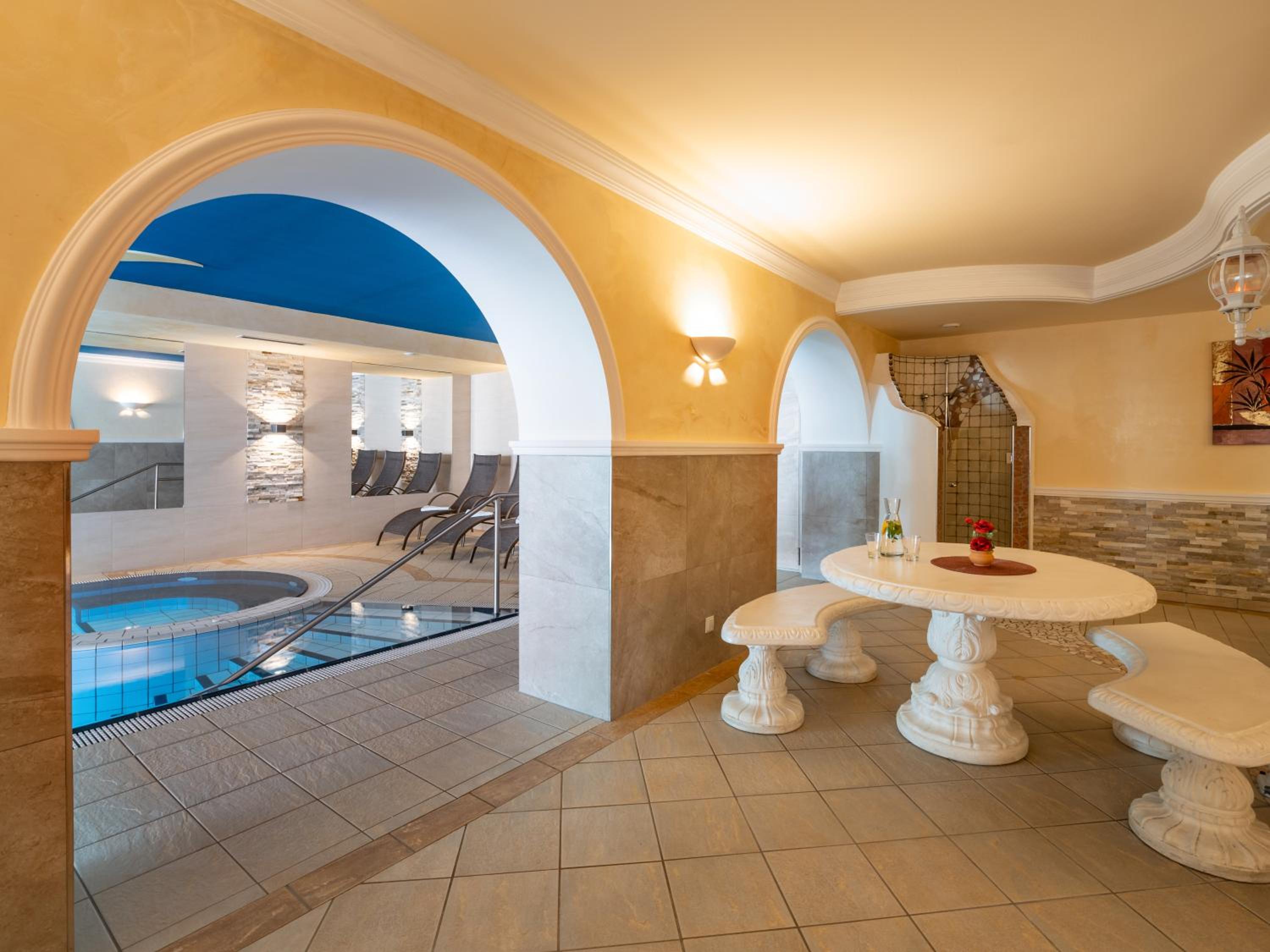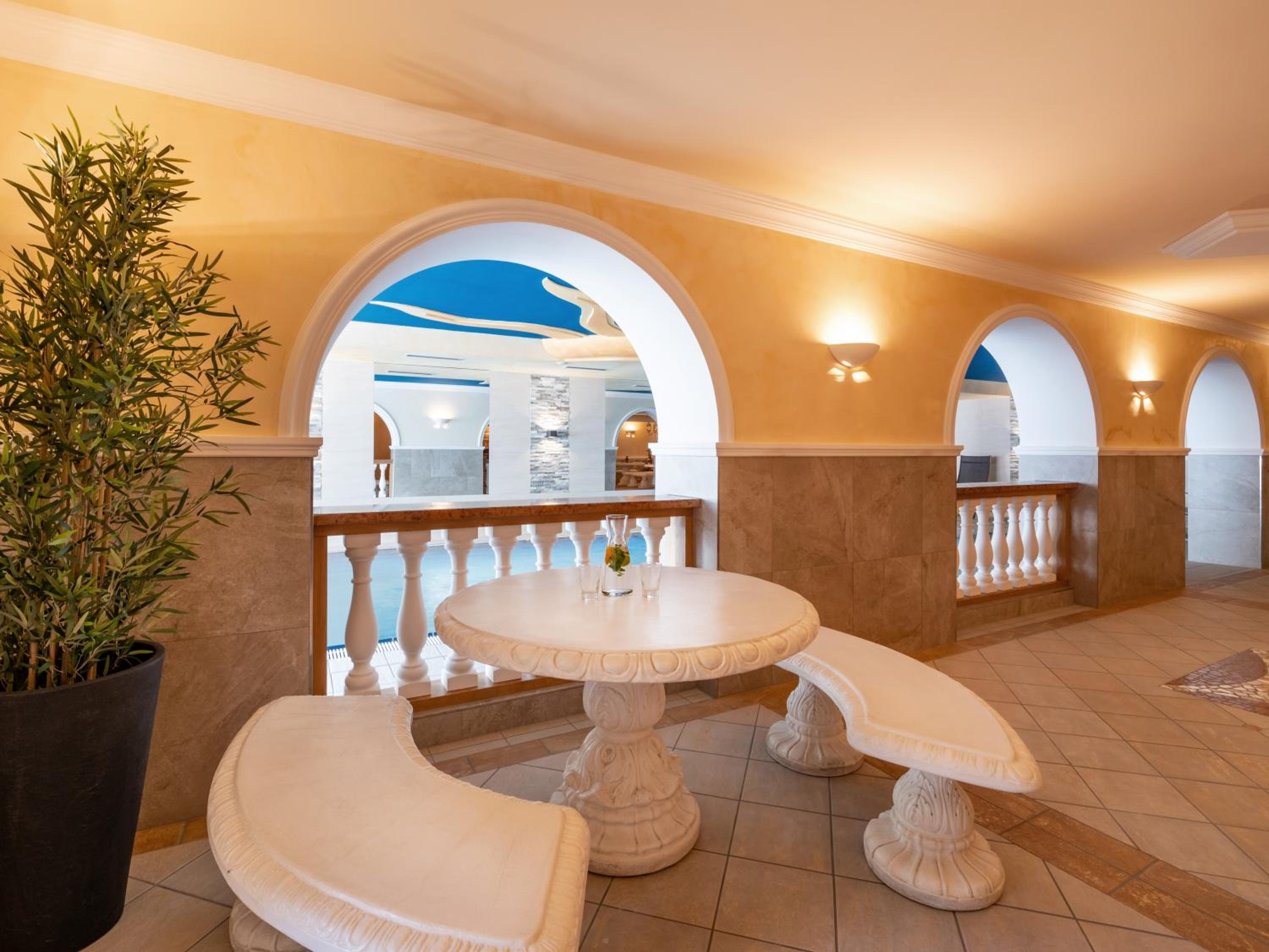 Luxurious Spa Area - Indulge in relaxation at the hotel's spa area featuring an indoor pool, steam bath, sauna, and solarium. Treat yourself to wellness treatments for the ultimate rejuvenation.