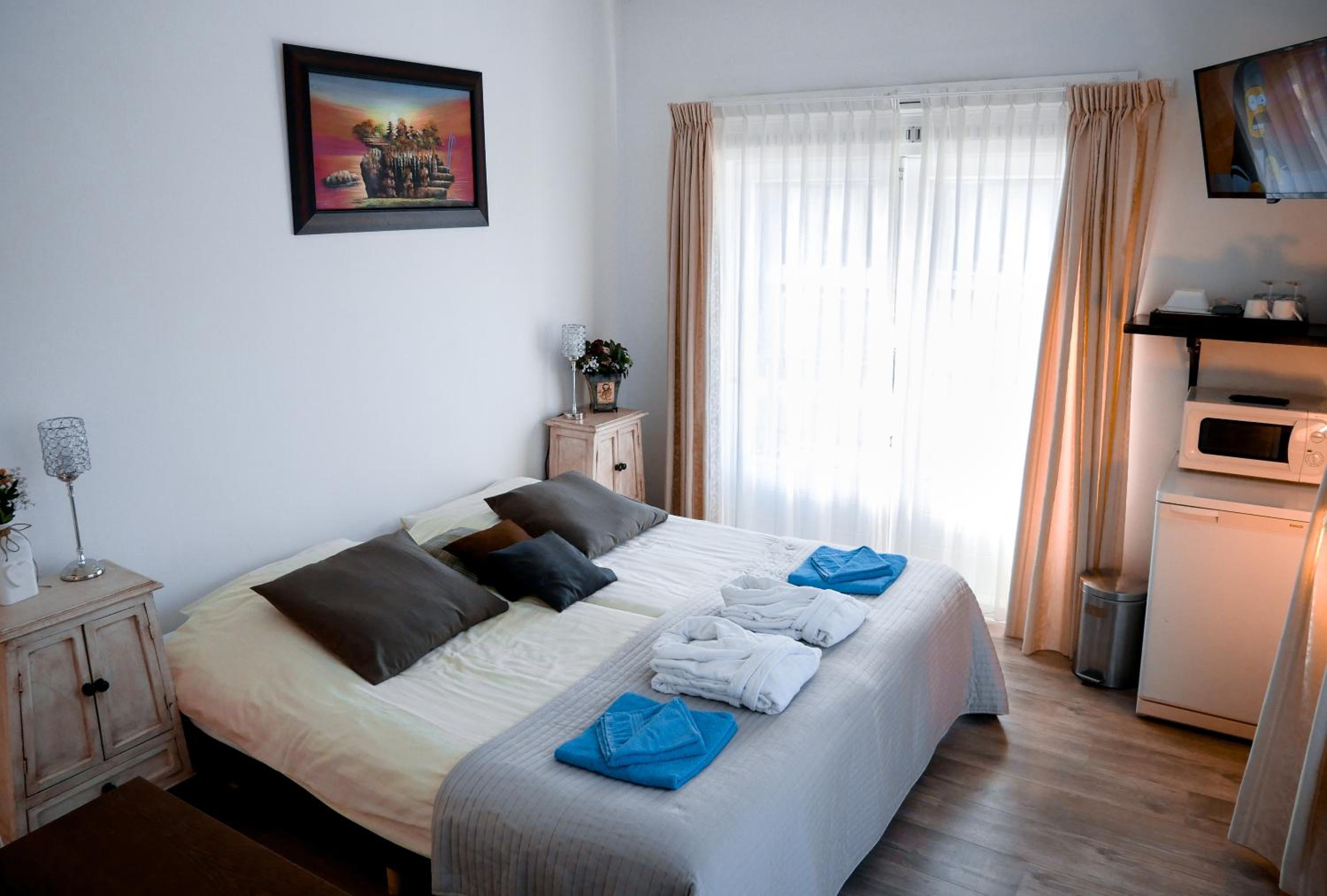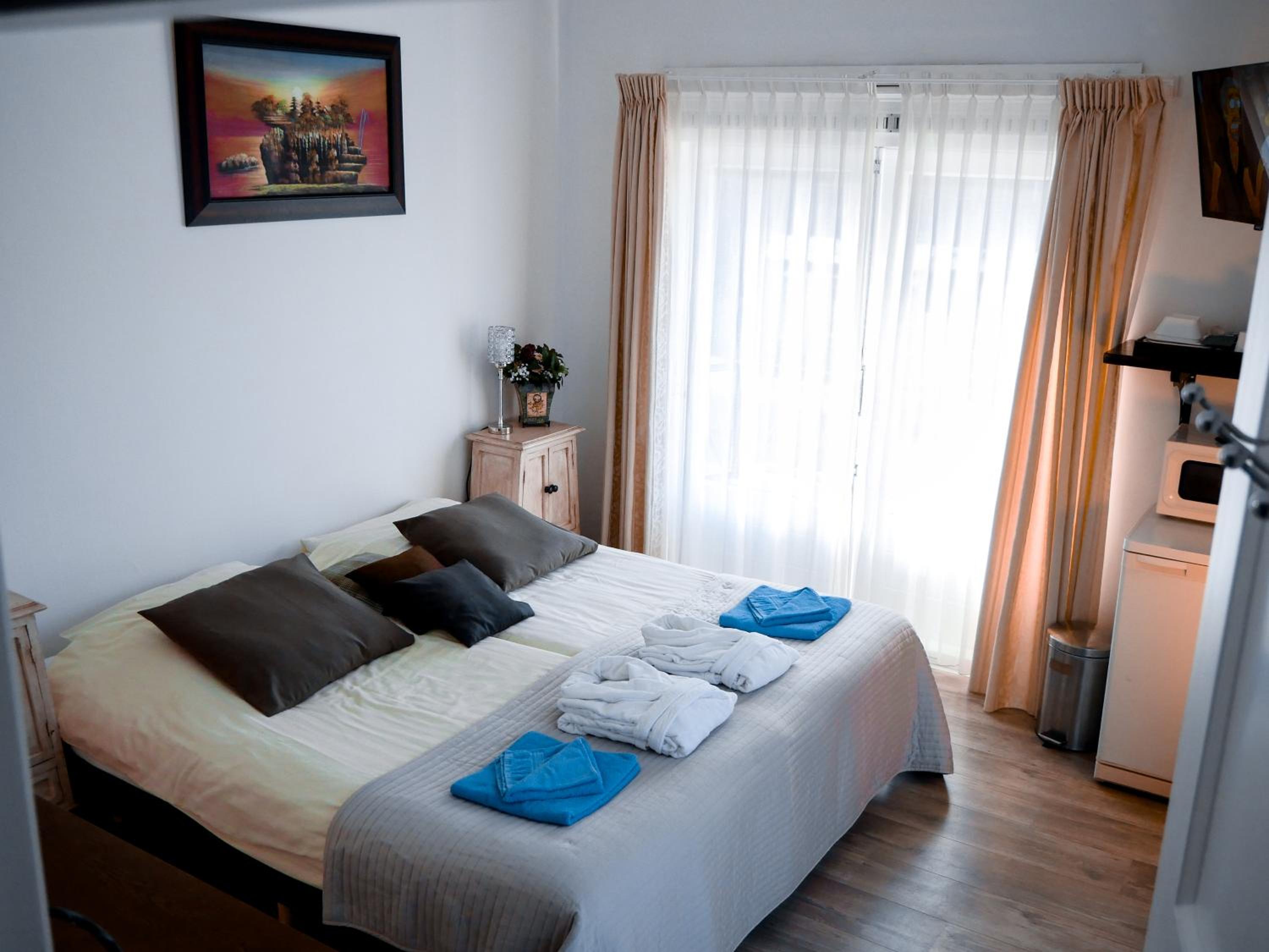 Die Pension ist sehr gut gelegen. Zum Strand und in die Stadt sind es nur wenige Gehminuten, die selbst für unsere 4jährige Tochter kein Problem waren. Das Haus an sich ist in die Jahre gekommen. Die Ausstattung ist prinzipiell einfach, aber mit ein paar sehr liebenswerten Add-Ons, z.B. einer Flasche Wein, Bademantel, Hand- und Duschtücher, Föhn, Einmal- Verbrauchsware (Nagelpfeile, Ohrenstöpsel, Wattepads etc.) auf dem Zimmer. Die Betten sind sehr bequem und neuwertig. Wir hatten ein Studio direkt unter'm Dach mit einer kleinen Küchenecke: Mikrowelle, Eierkocher, Wasserkocher, Kühlschrank, Geschirr - alles vorhanden und sauber. Das Badezimmer mit Dusche ist sauber und mit kleinen Shampoo- Greetings, aber unglaublich fußkalt.