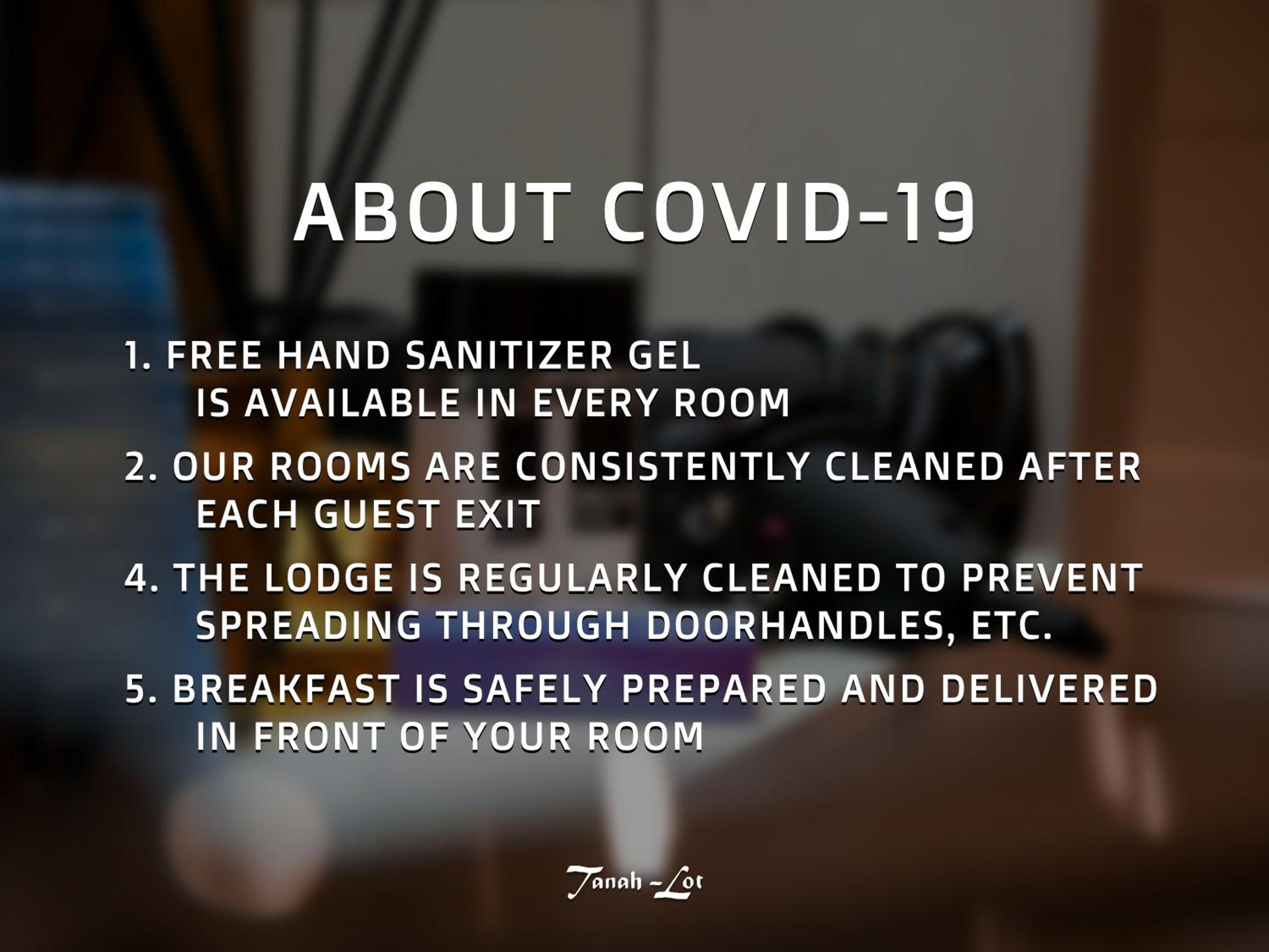 Due to the Coronavirus (COVID-19), breakfast will be served in the guest rooms until further notice.