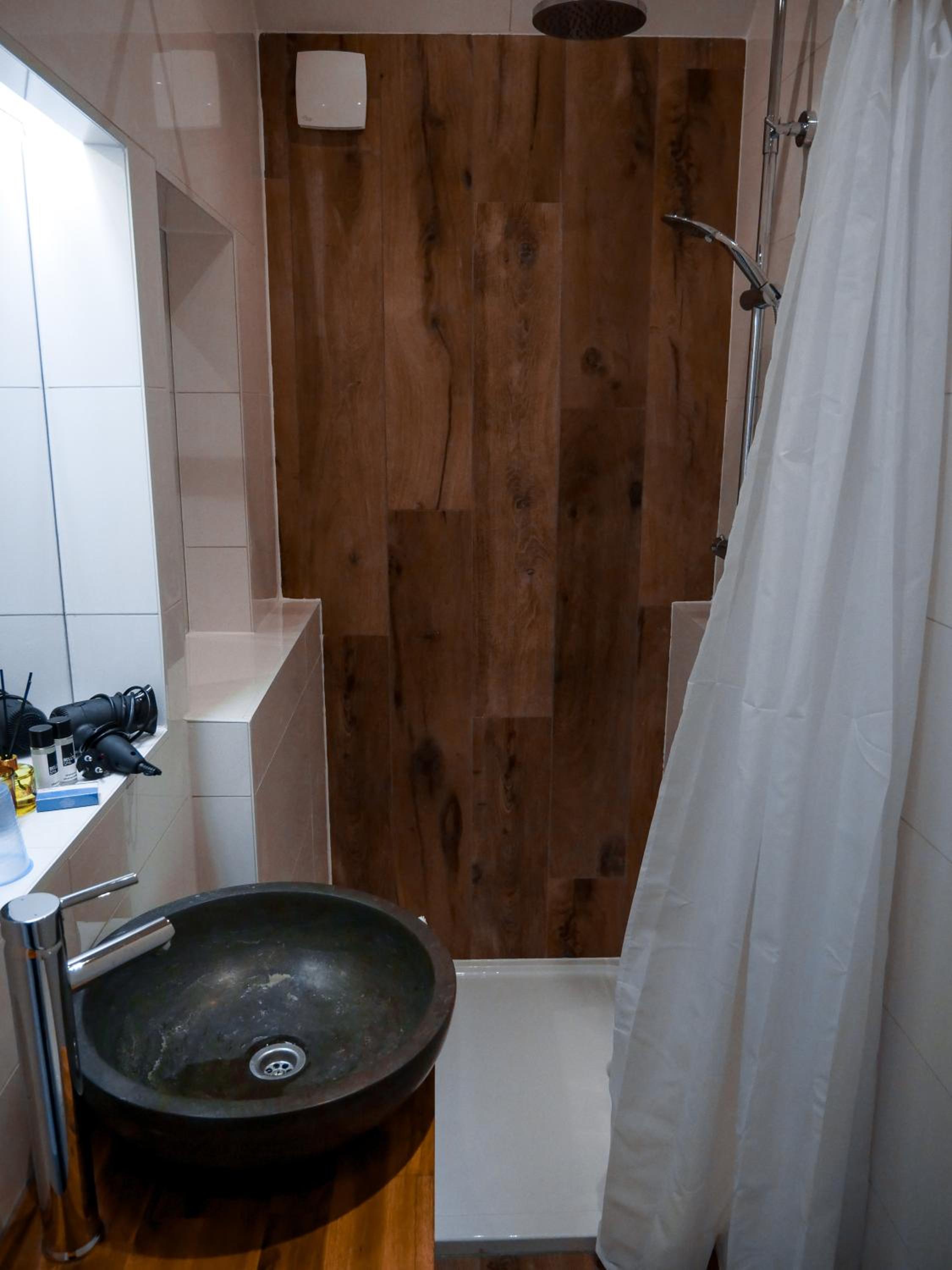 Bereits beim Betreten des Badezimmers fiel uns ein starker Schimmelbefall bei der Dusche auf. Die Luftfeuchtigkeit war extrem hoch und der beißende Schimmelgeruch kaum auszuhalten. Das Duschbecken wies einen großen Riss auf, in dem sich sogar noch altes Wasser aus den vergangenen Tagen gesammelt hatte – absolut unhygienisch und inakzeptabel.