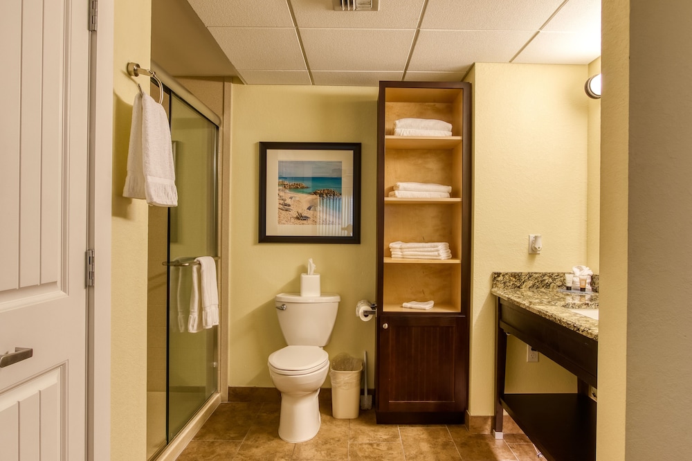 Overall our trip was wonderful, the units nice but could use fresh paint. There was a major safety hazard as one of the outlets had a metal outlet socket plug sticking out/ broken inside. Other then that the experience was great as well as the staff. The water park was a nice add although a little overwhelming as some guest have to pay. The pool area is open to guest after 6pm for those who dont want to pay the additional fee. The shops around the property were great. There's live music everyday at 6pm from the venue across the hotel. Plenty of bars and restaurants to eat from. Bait shop less then 5 min away. Beach is a block and a half away.