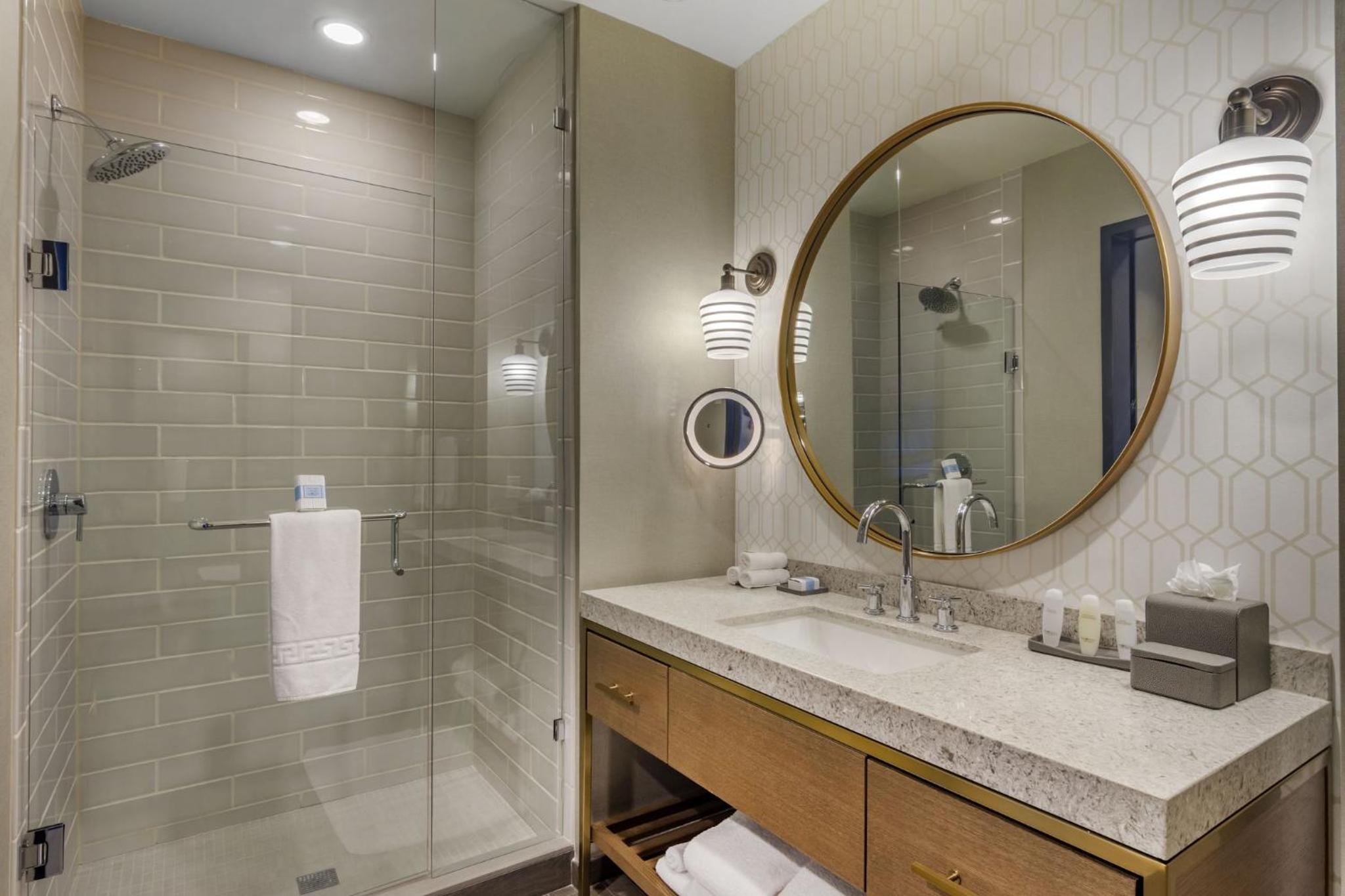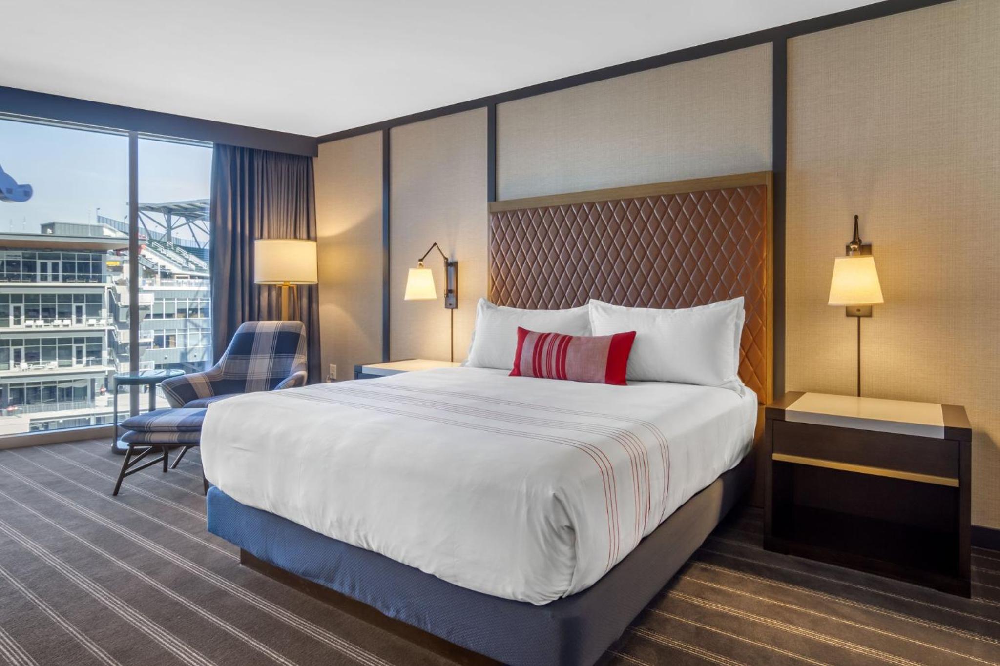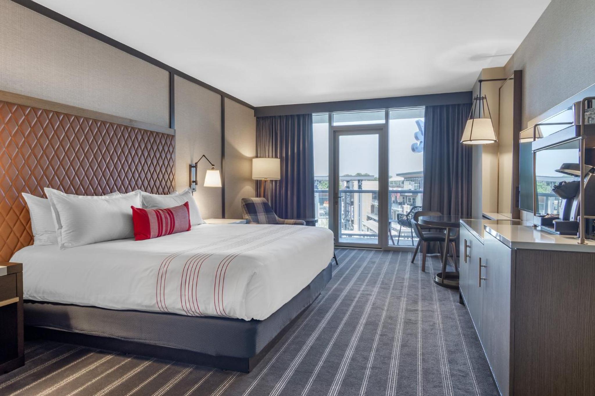 Indulge in comfort with flat-screen TVs, cozy seating areas, and elegant bathrooms stocked with premium amenities at Omni Hotel at the Battery Atlanta.