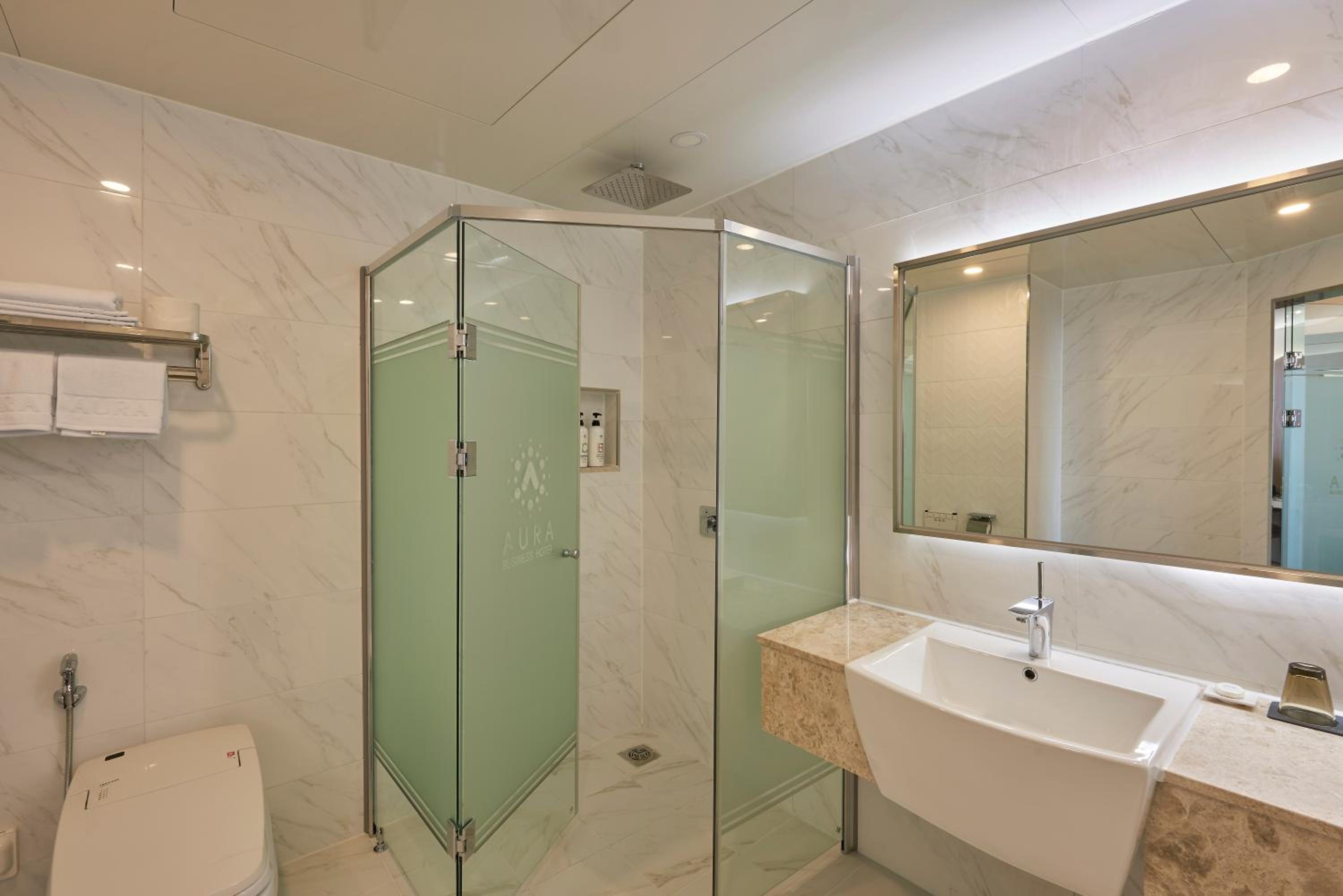 Each room at Gwangju Aura Hotel is equipped with modern amenities such as a flat-screen TV, fridge, and electric kettle. The en suite bathrooms are stocked with complimentary toiletries and feature conveniences like slippers and an electronic bidet. Select rooms even boast a luxurious spa bath for ultimate relaxation.