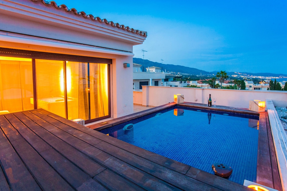 Indulge in the outdoor pool or relax in the garden at Medina Luxury Penthouse. Lush greenery and a serene atmosphere await you.