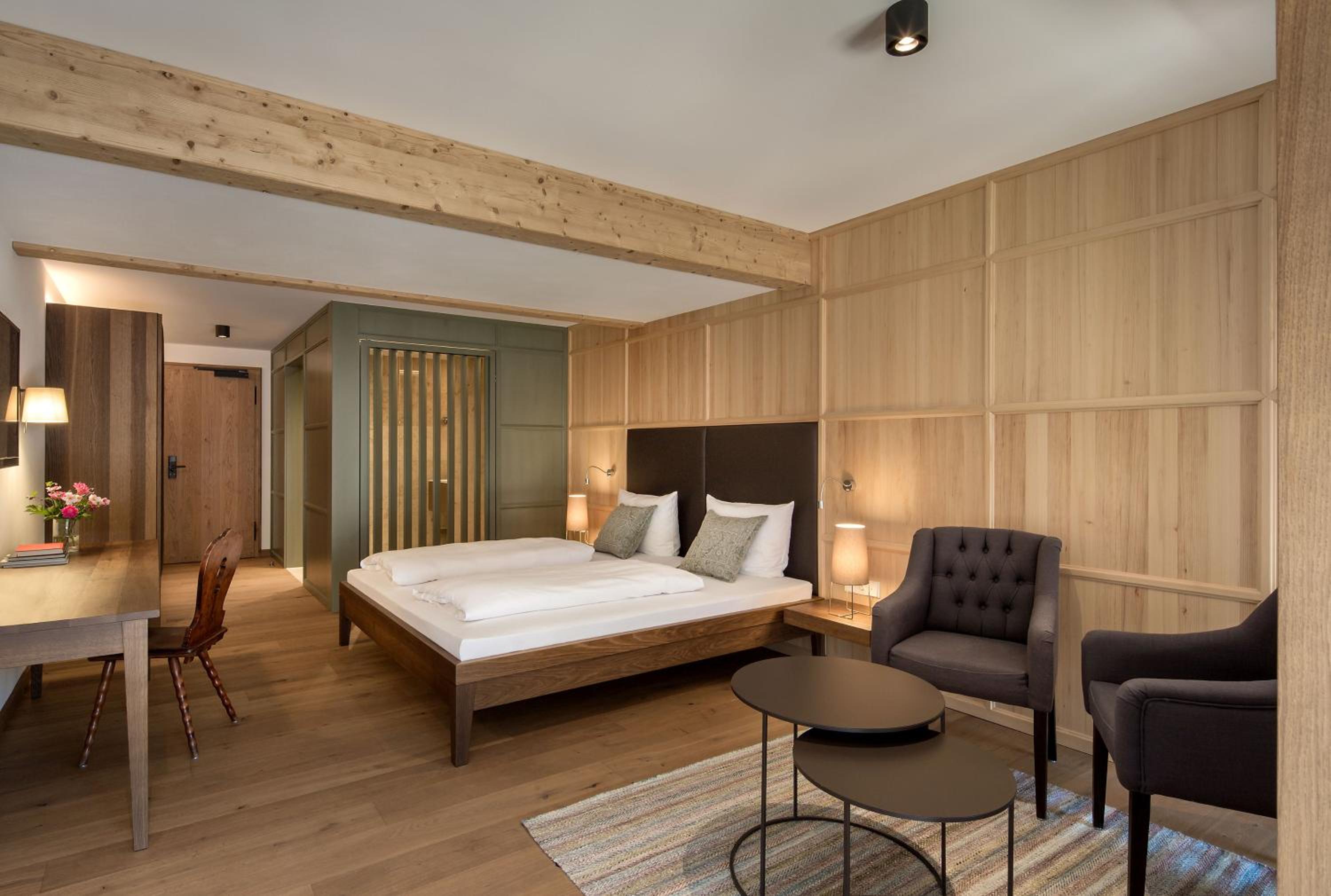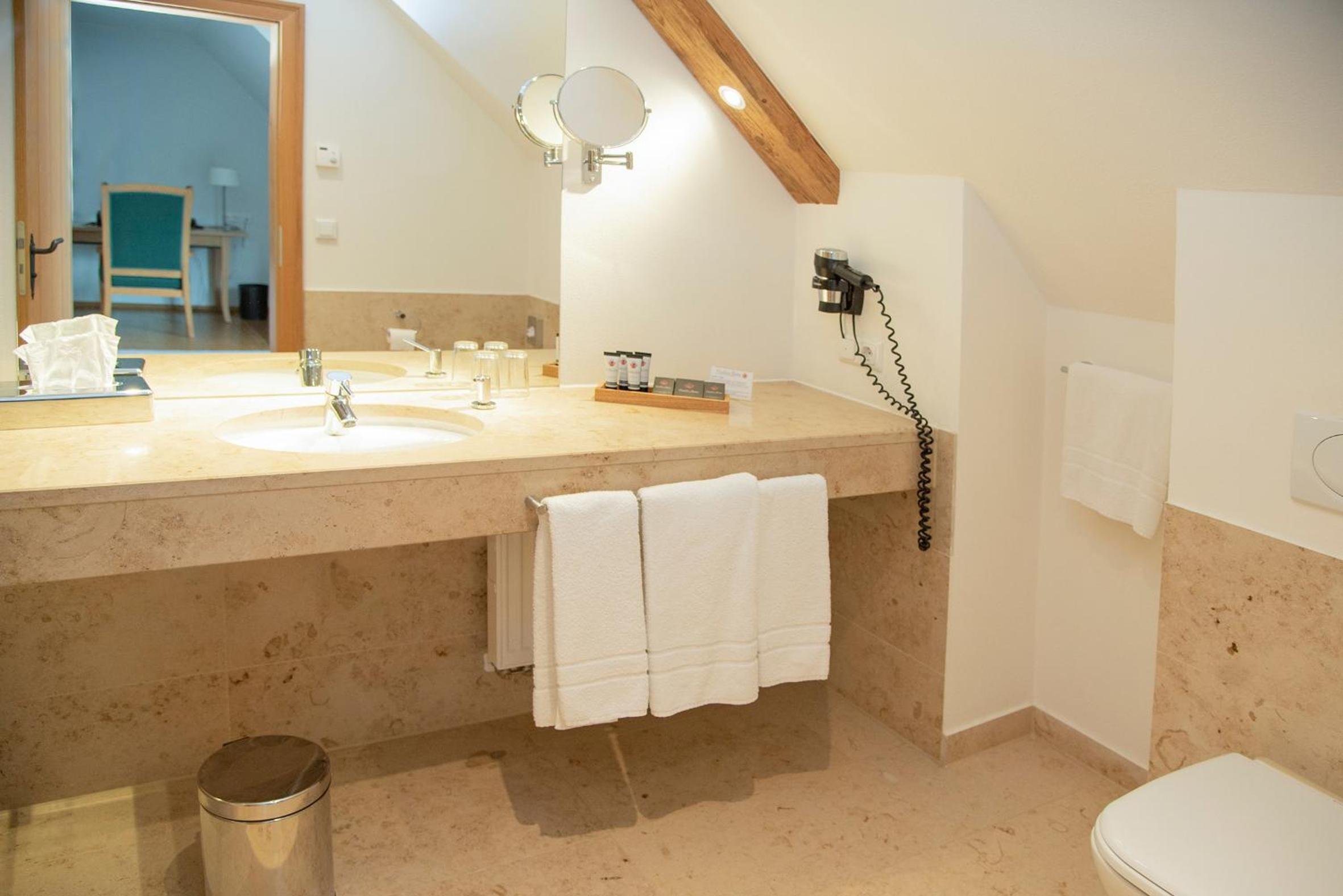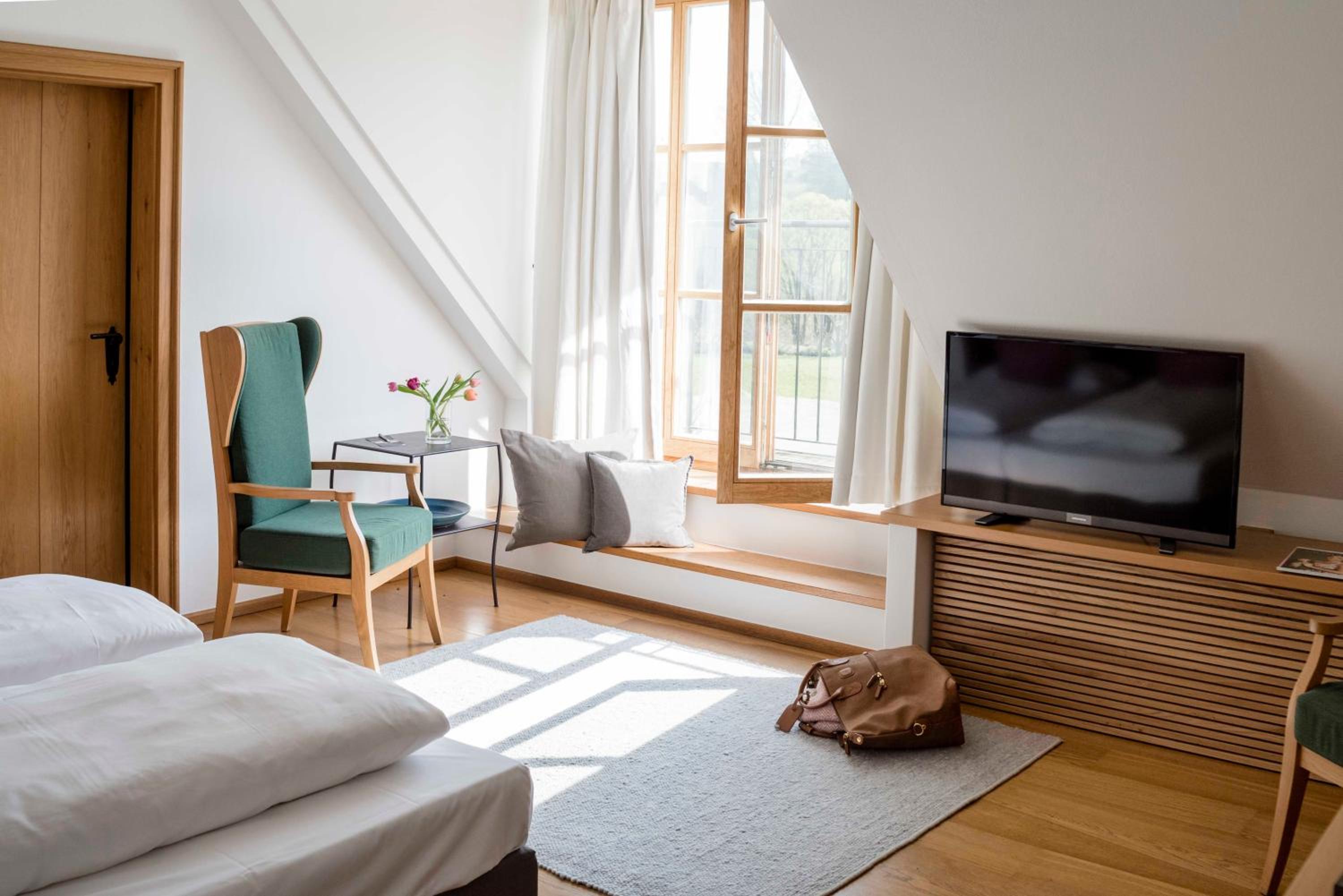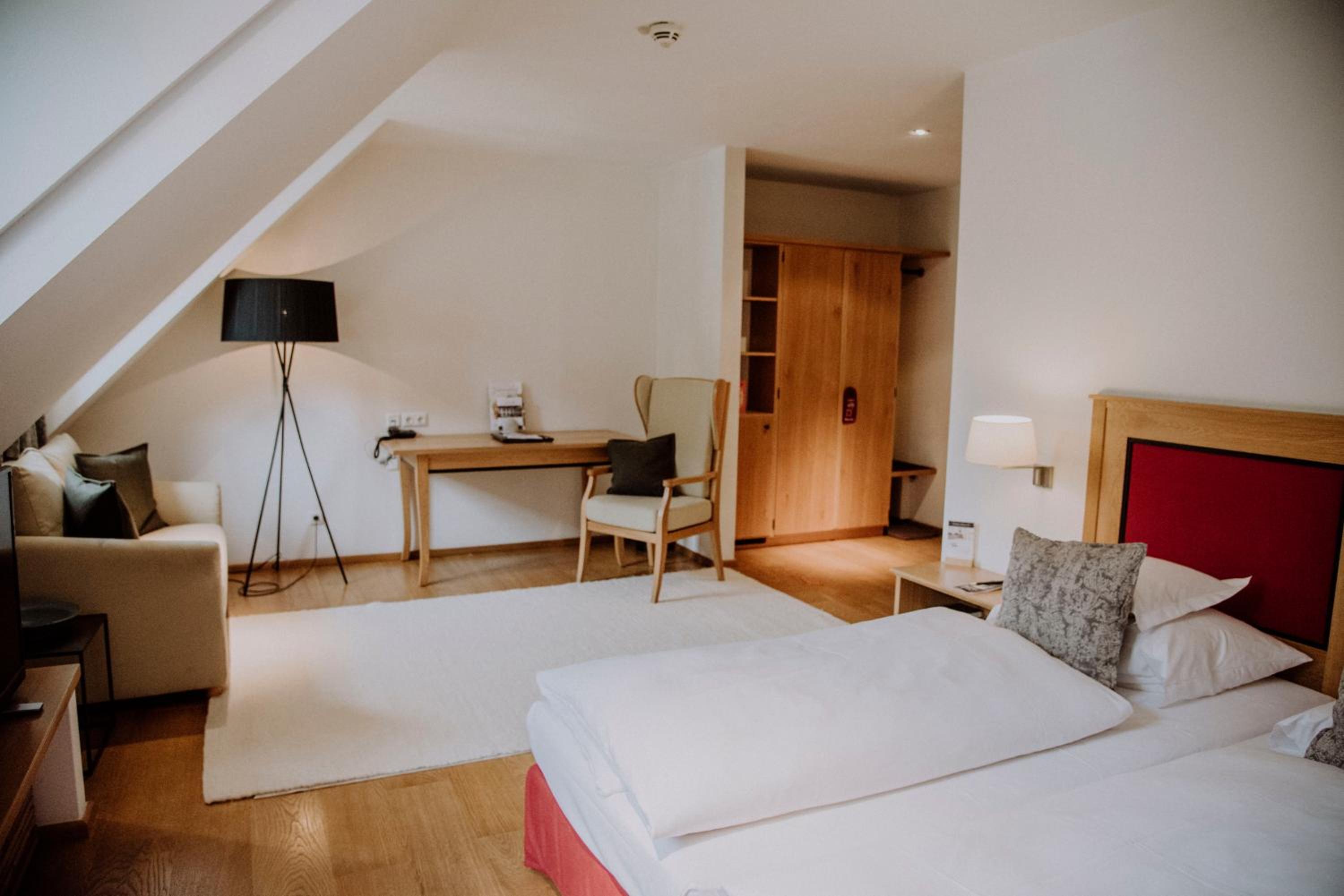 Toller Wellnessbereich, tolles Frühstück, sehr idyllisch gelegen mit tollem Garten, großer Parkplatz, viel Tradition, hundefreundlich, schöne Zimmer und ein leckeres Abendessen. Der Service war meistens gut.