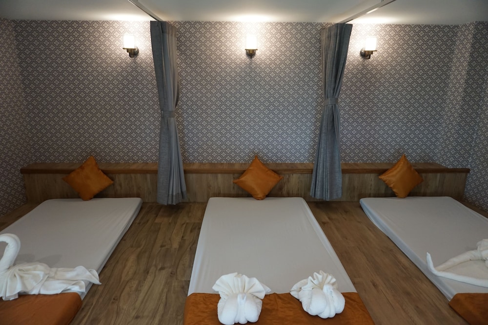 I was arriving at the airport at 12.55 am and leaving for Phuket next morning. So I decided to stay at the airport hotel, somewhere comfortable at a reasonable price. This hotel is a 35 minute taxi ride from the airport. It is in the middle of nowhere. The reception staff, while polite do not speak any or very, very minimal English. The return shuttle to the airport has to be booked one day in advance and costs $20.00. Everywhere in the world, the airport hotels are near the airport and have frequent, free shuttle to the airport.