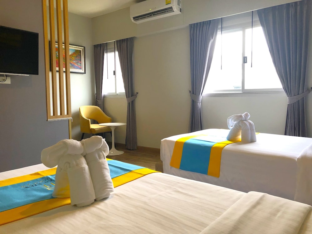 The surrounding of the hotel is okay and the room I book is quite big. BUT, the bed is too hard and pillow so high that I cannot sleep well at all. The breakfast is awful that I would rather buy fast food from 7-11 next to the hotel.