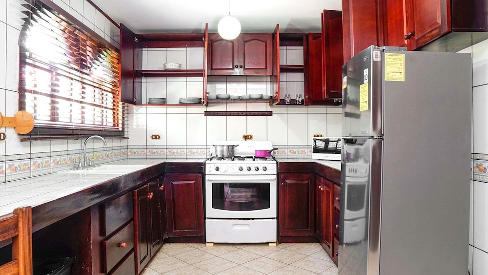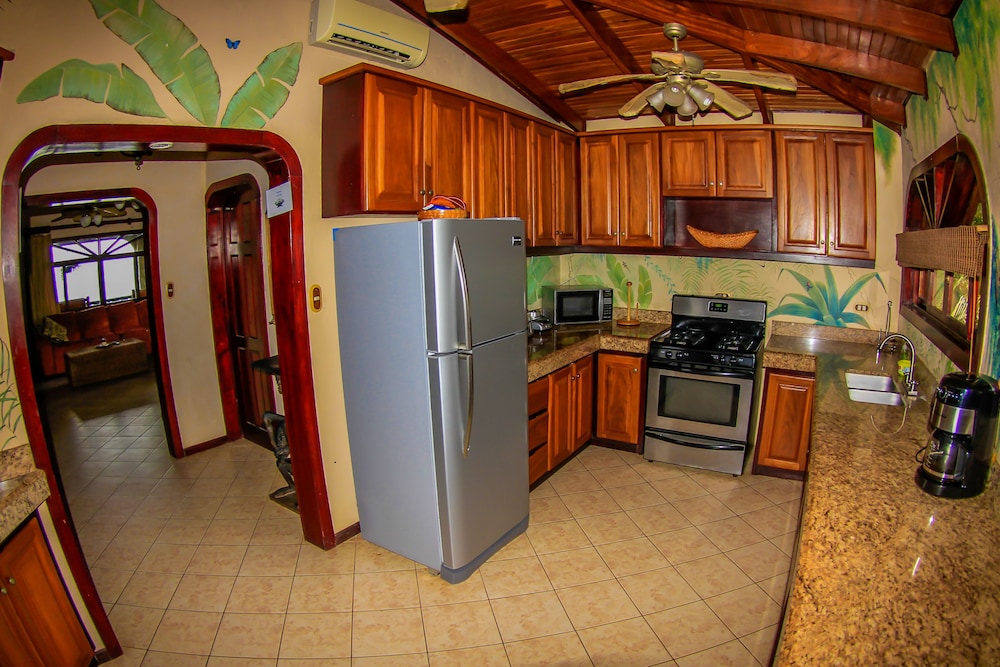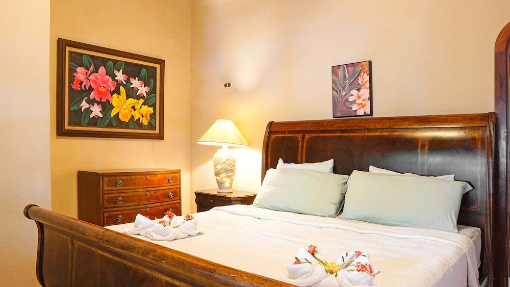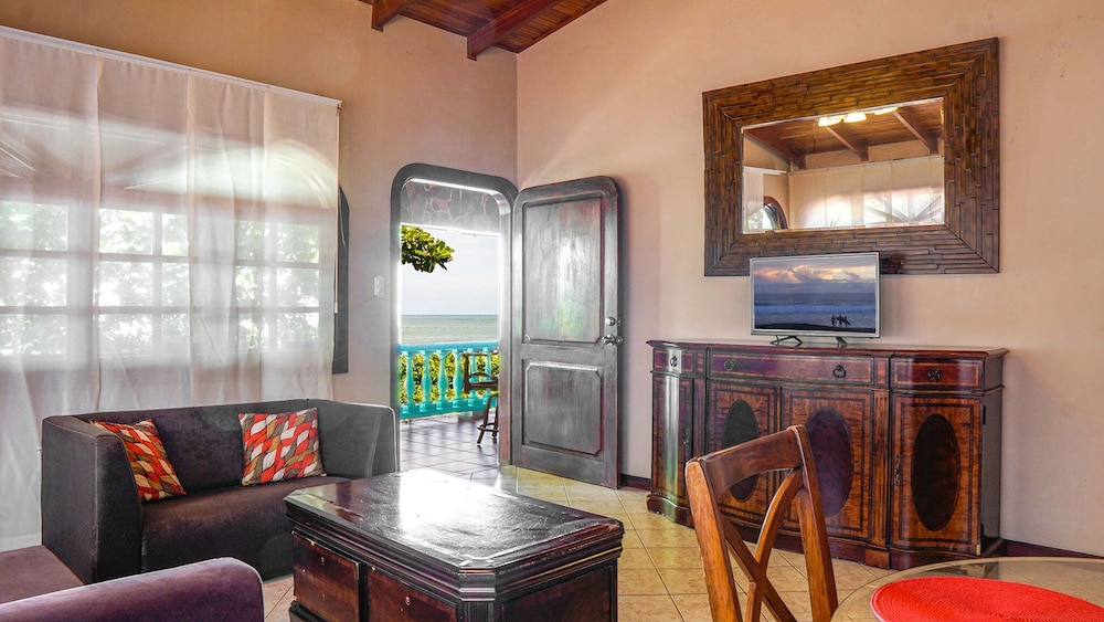 Kitchen counter had to be kept clean due to ants. Occasional lizard visitor would creep in under kitchen door, probably to feast on the ants, harmless. Beach side entrance had large porch with dinette that seated four and bench seat. Beautiful view. A large, white pawed, black cat slept on one of the cushioned chairs nightly, also, harmless, non-aggressive. Though out animal companions were never mentioned in the advertisement, it took little away from the magnificent beauty of this place.