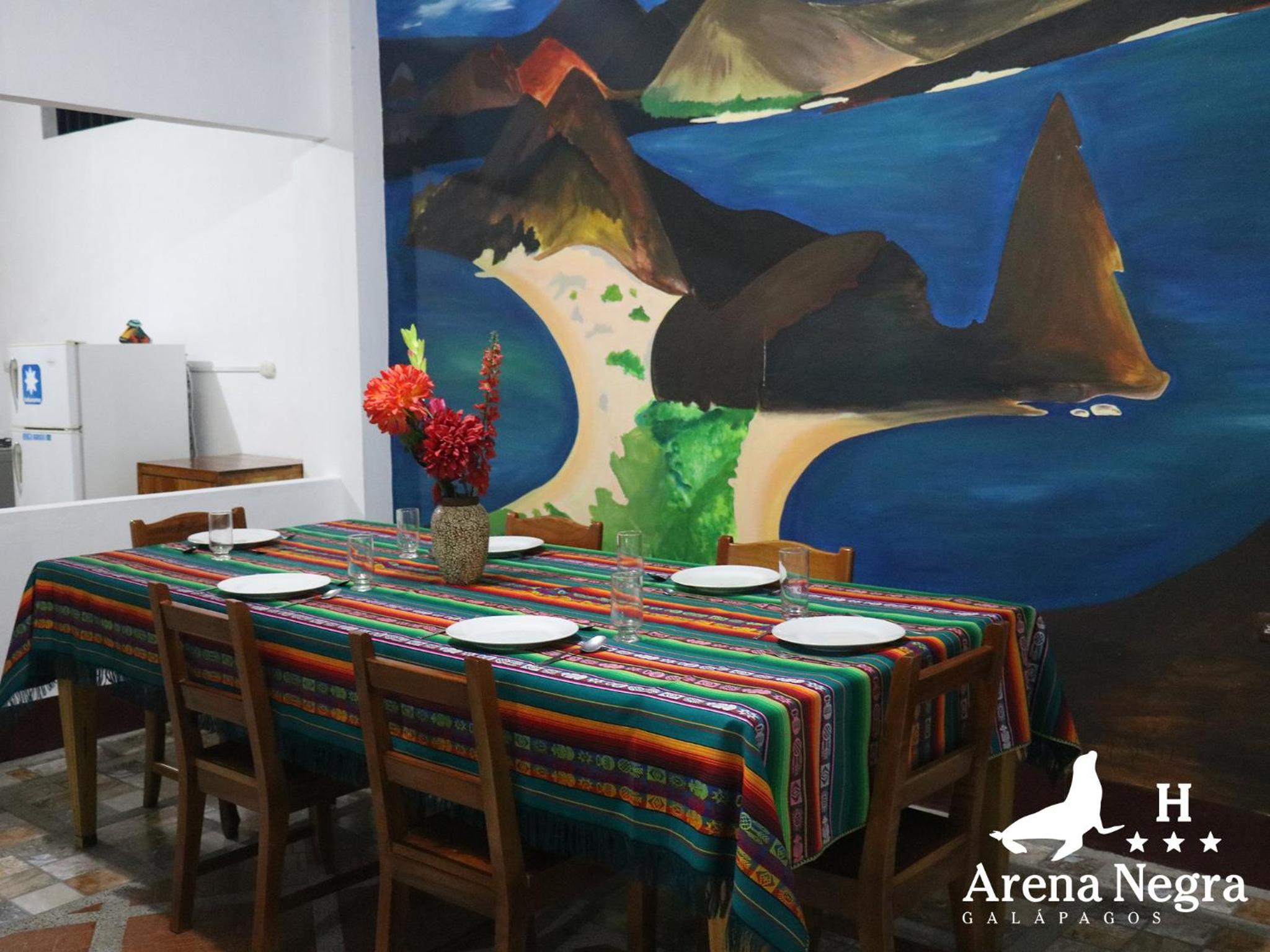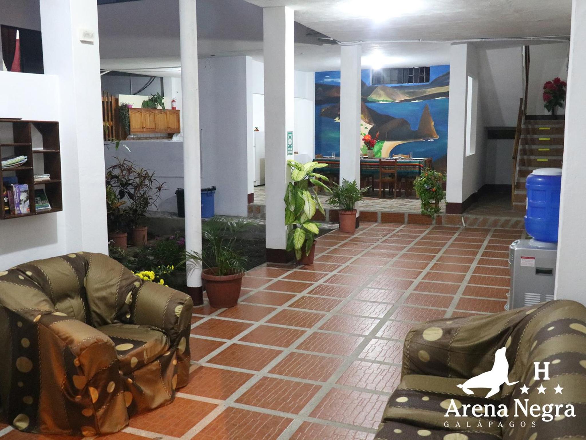Experience the beauty of Puerto Ayora at Hostal Arena Negra, just steps away from Galapagos National Park. Enjoy comfortable rooms with garden views, air conditioning, and a private bathroom. Unwind in the peaceful garden or terrace, and take advantage of the 24-hour tour desk and shared kitchen. With a prime location near local attractions like Charles Darwin Station and Playa de la Estación, Hostal Arena Negra is the perfect choice for your stay in the Galapagos. Book now to secure your unforgettable island getaway.