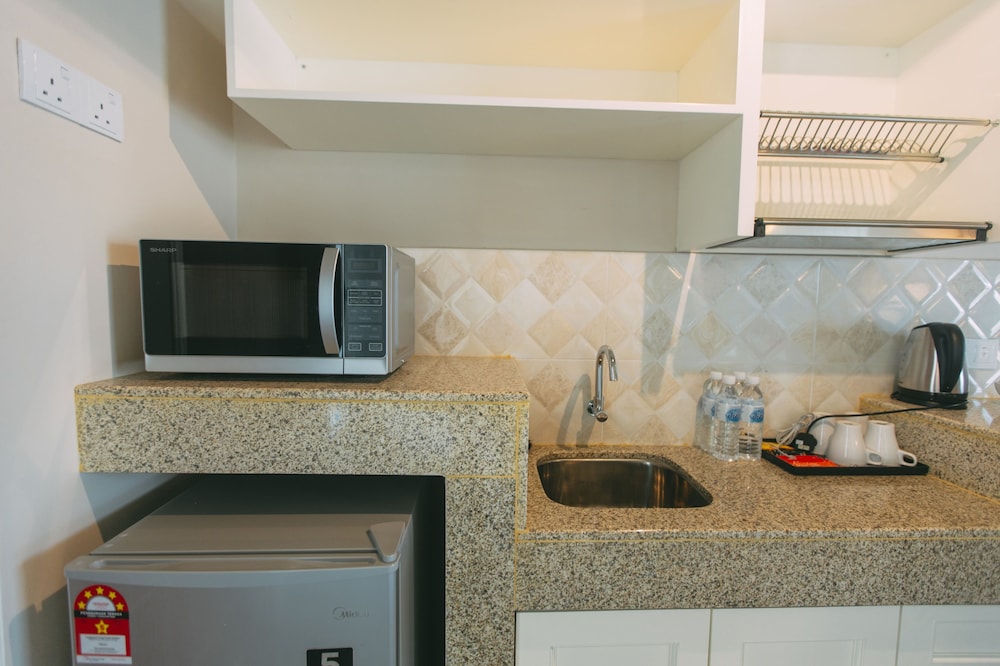 Far away from beaches, and a 20 min walk to a good convenience store (although a petrol station and McDonald's nearby)
