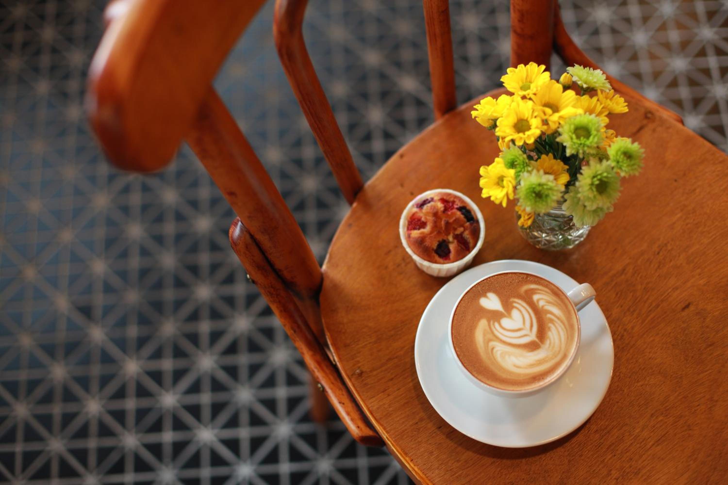 The cafe downstairs serves great coffee and pastries.