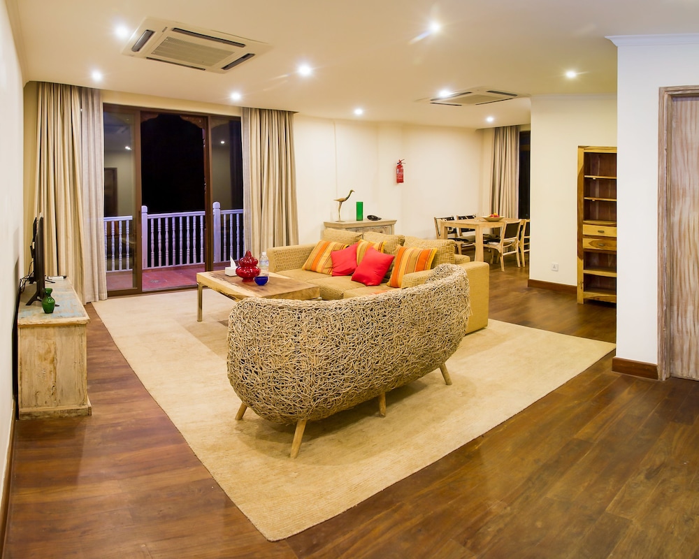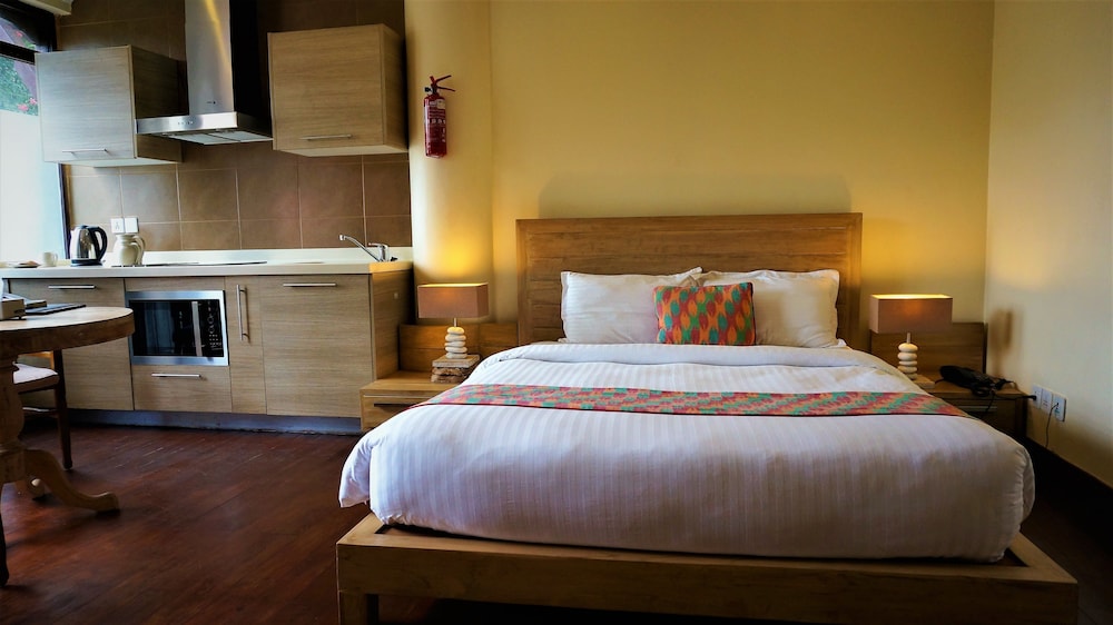 公寓的设计者不同凡想,尼泊尔风情的旧旧的实木,配上全明大玻璃的阳台和窗户,即使是背光的房间,光线也是充足的;欧式开放厨房,设施特别好!做中餐也没问题。(订房时注意要订标有“带餐具”的房间。)加德满都最好的超市走路五分钟,做做饭看看书,特别适合休闲度假。院子很大,里面有一个著名的Bar,我还赶上了新年演出和婚礼,好不热闹。Bar经营到深夜,在电力不足的加德满都,晚上不会觉得荒。楼下的餐馆很好吃,同一条街上还有多家不错的餐馆供选择。热水和Wifi不是很稳定,但可以满足需要,在加德满都算不错的。总之,我溜达了加德满都大部分城区,比较了主要酒店网站和Airbnb,首选了这儿。实际入住证明我的选择还不错,就这儿的条件和地段来说,价格比同等条件的酒店大概要便宜30%,以后再来,我肯定还是首选这儿。