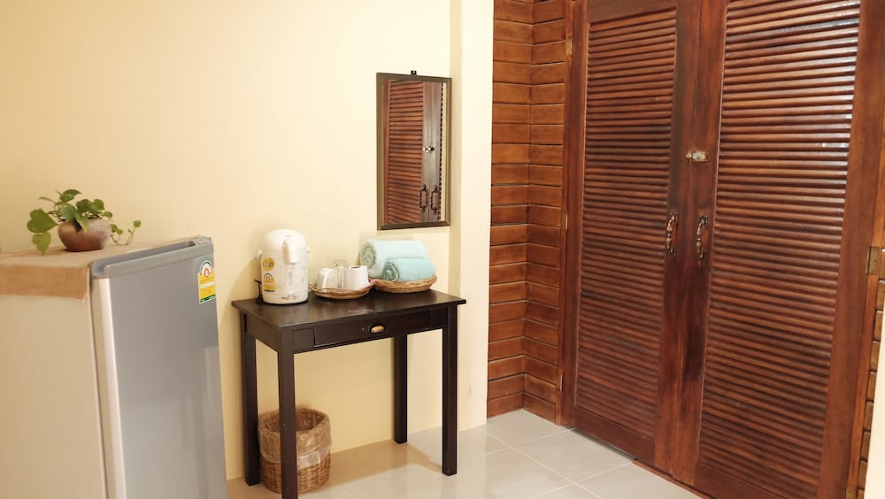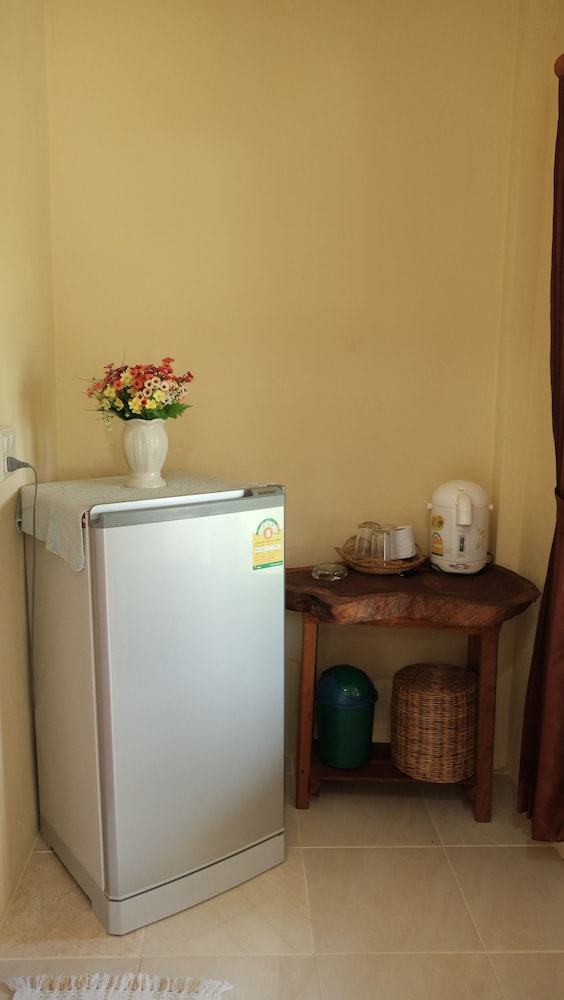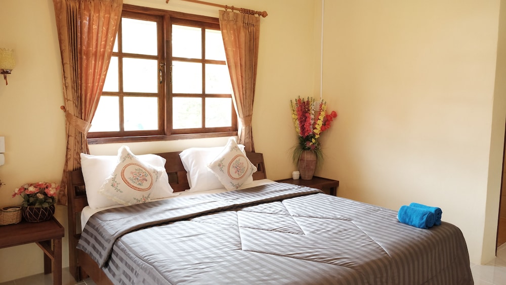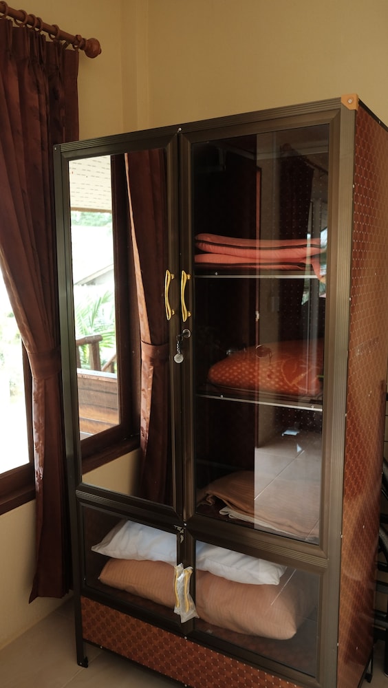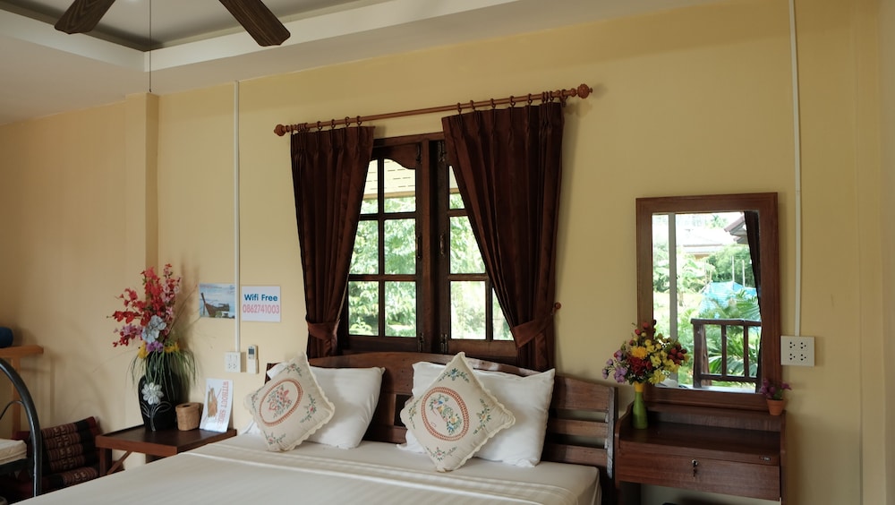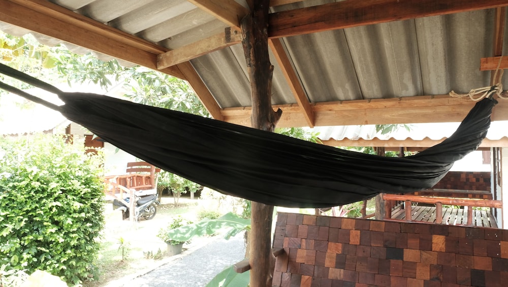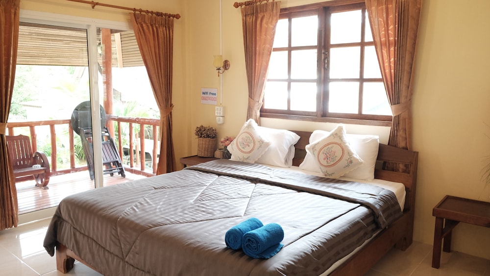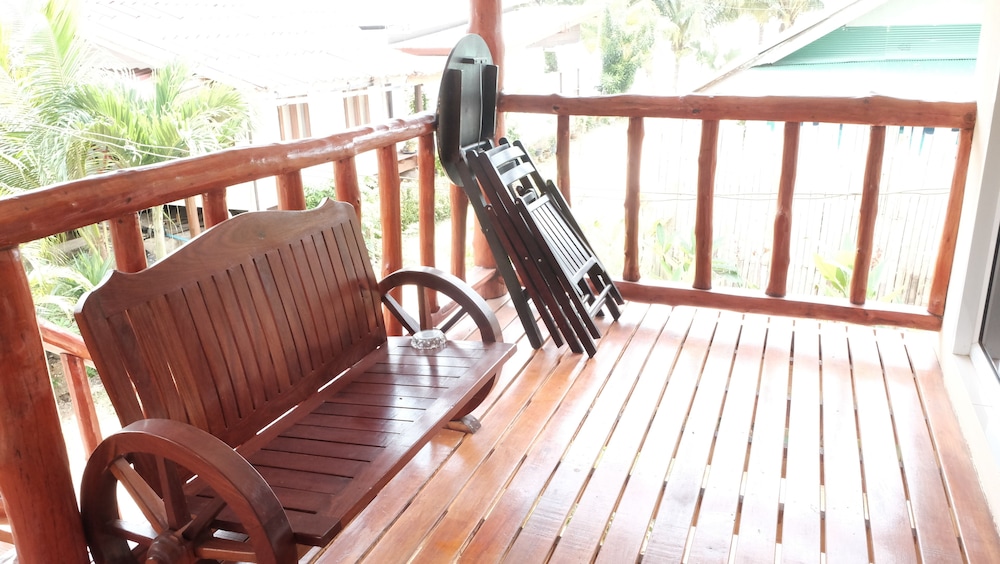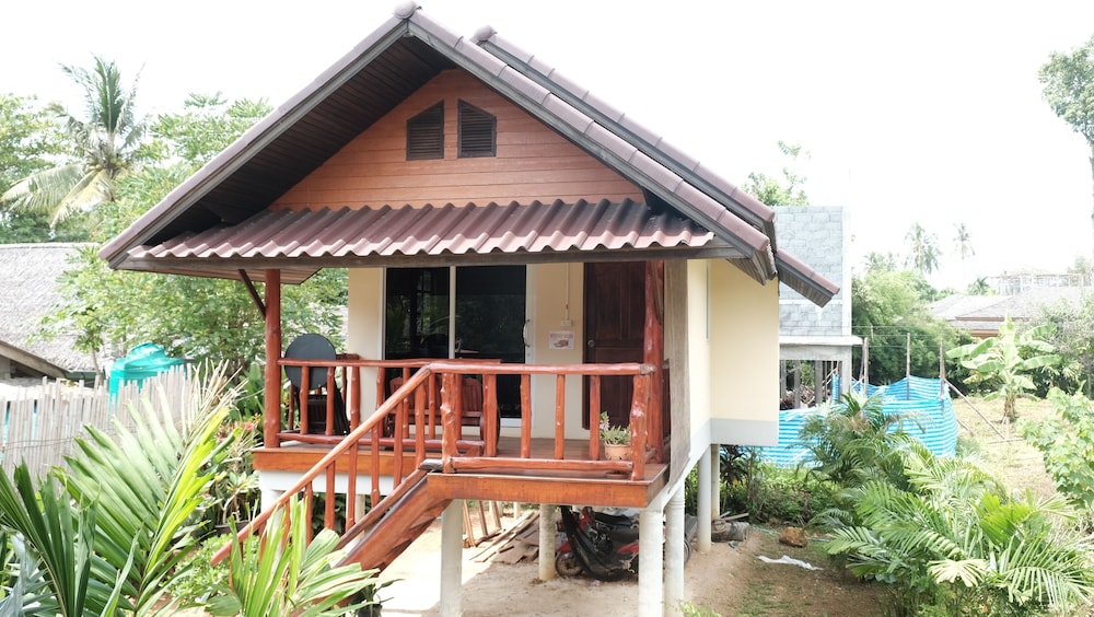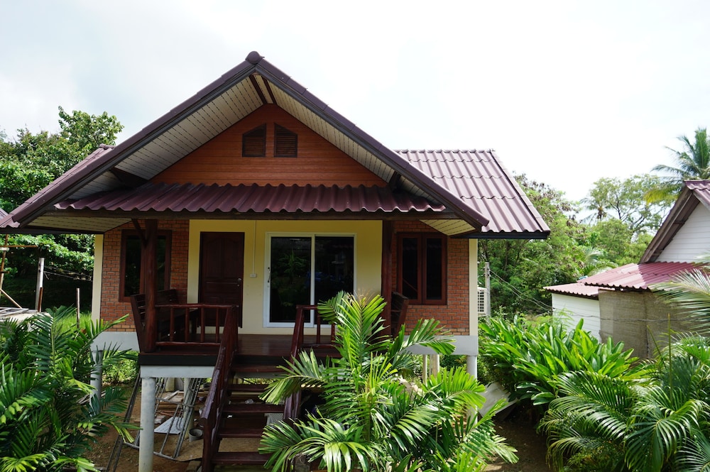 The bungalows seem to be quite new, and are in great condition - they all have a nice deck, too. Ours was clean and spacious with AC, perfect for a couple of nights' stay. The check-in was fast and easy and the owner was really friendly, laid-back and helpful. We rented a scooter from them for 200 BHT per day which was convenient, and cheaper than renting it from a rental place. The only con was that the drain in the bathroom was placed weirdly behind the toilet seat instead of near the shower, and the water would pool up on the bathroom floor after showering. There was no squeegy to wipe the water towards the drain either. That was a small thing though in the overall picture. All in all, a very nice stay, and I would recommend these bungalows for other travelers.