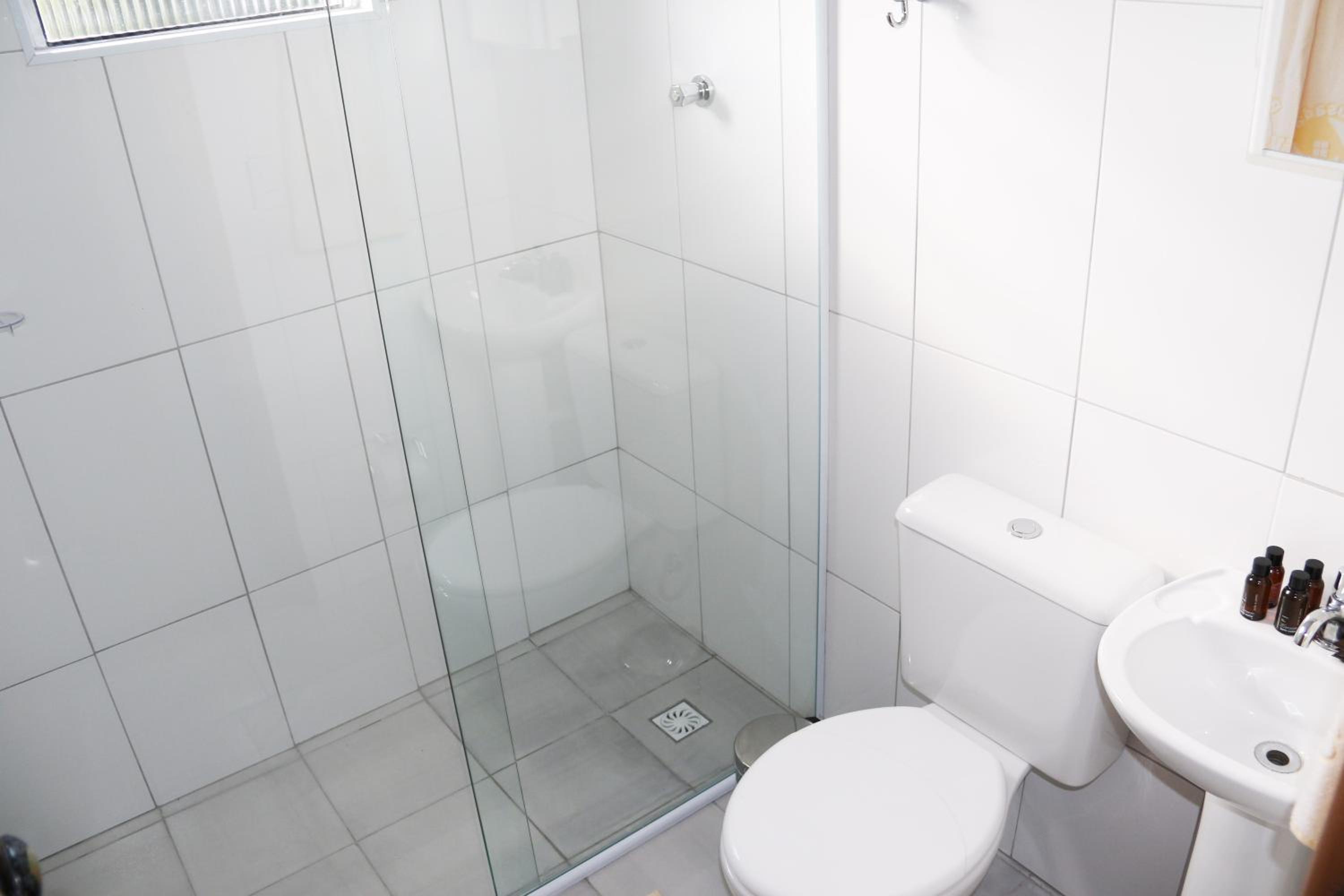Da entrada à pé pela mesma rampa dos carros. Ela é muito inclinada, senti dificuldade na subida, deveria haver degraus para os pedestres. Nosso quarto foi mudado para um superior, segundo a recepção. Mas, no nosso havia uma rachadura numa coluna e mancha de infiltração no teto. Não havia ducha manual no chuveiro.