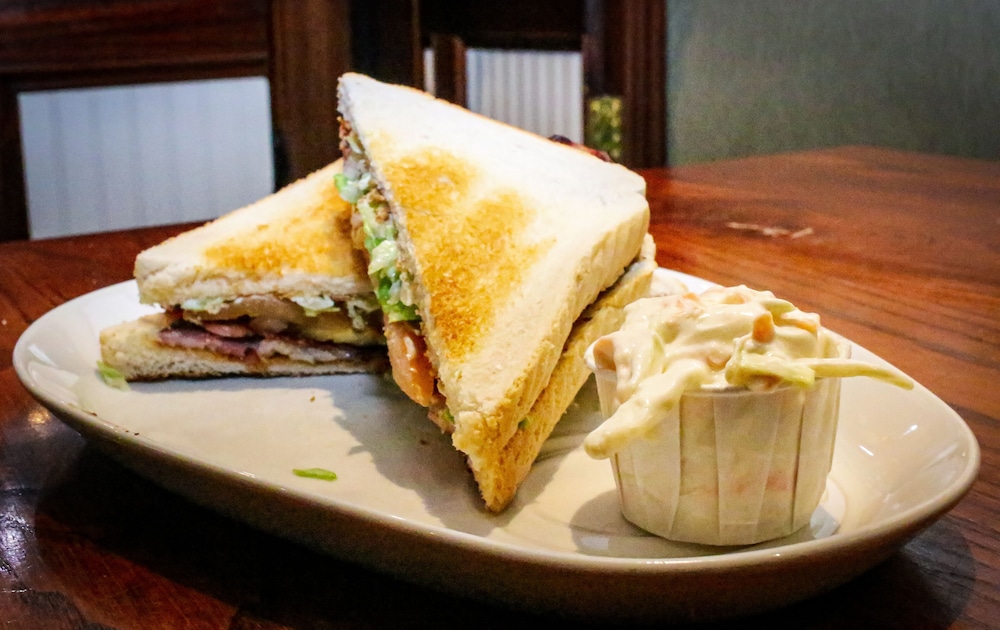 Now we only stopped in for a late breakfast and a tea an coffee. greeted and seated with a smile and welcome. It was a quite time but service was still attentive must not pushy. Our breakfast was prepared in a timely manner and was fresh and hot. This is a nice spot in town as there is always something to watch. I peered into the Pub which looked warm and country. Great place for our impromptu breakfast stop/