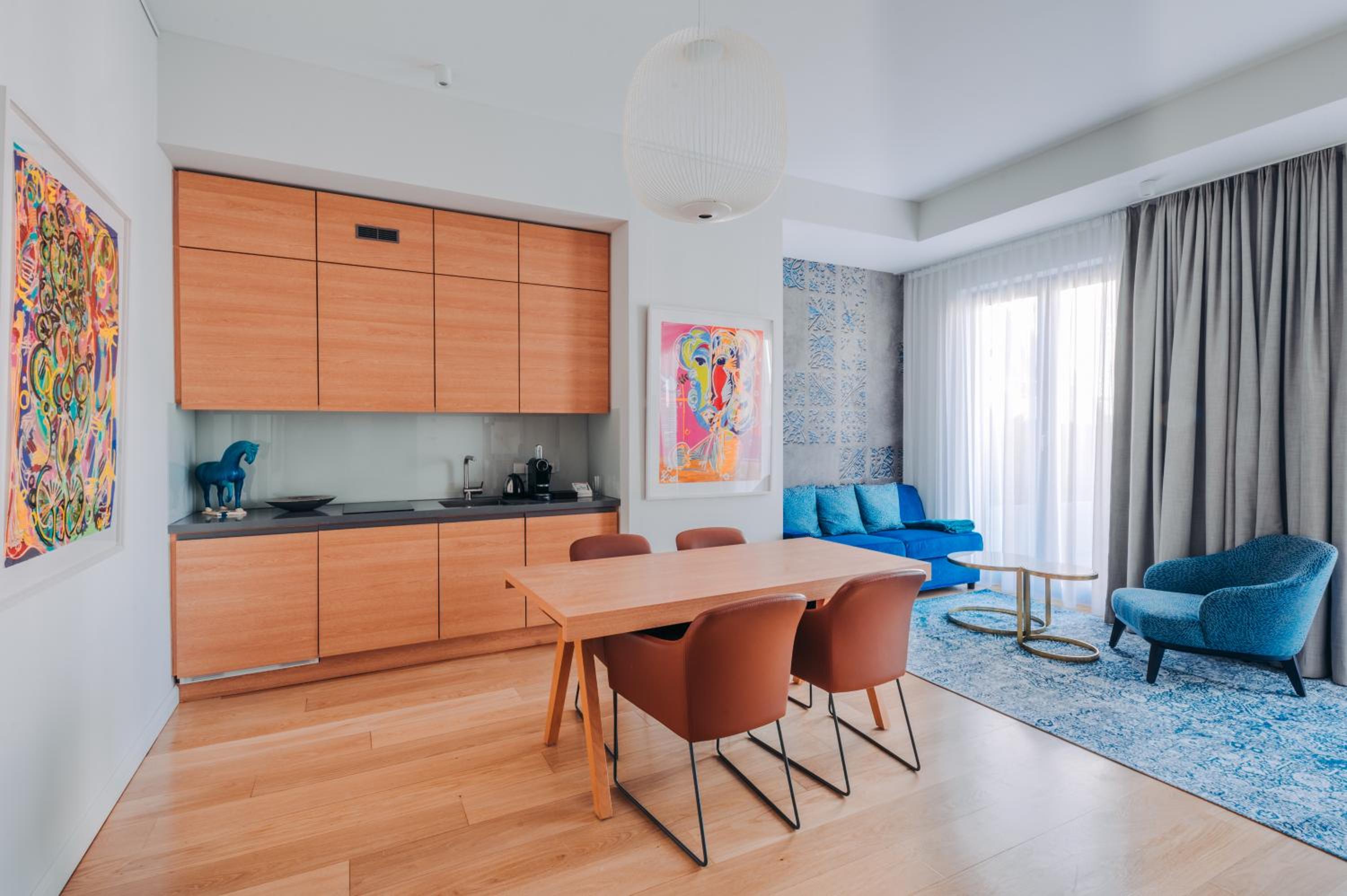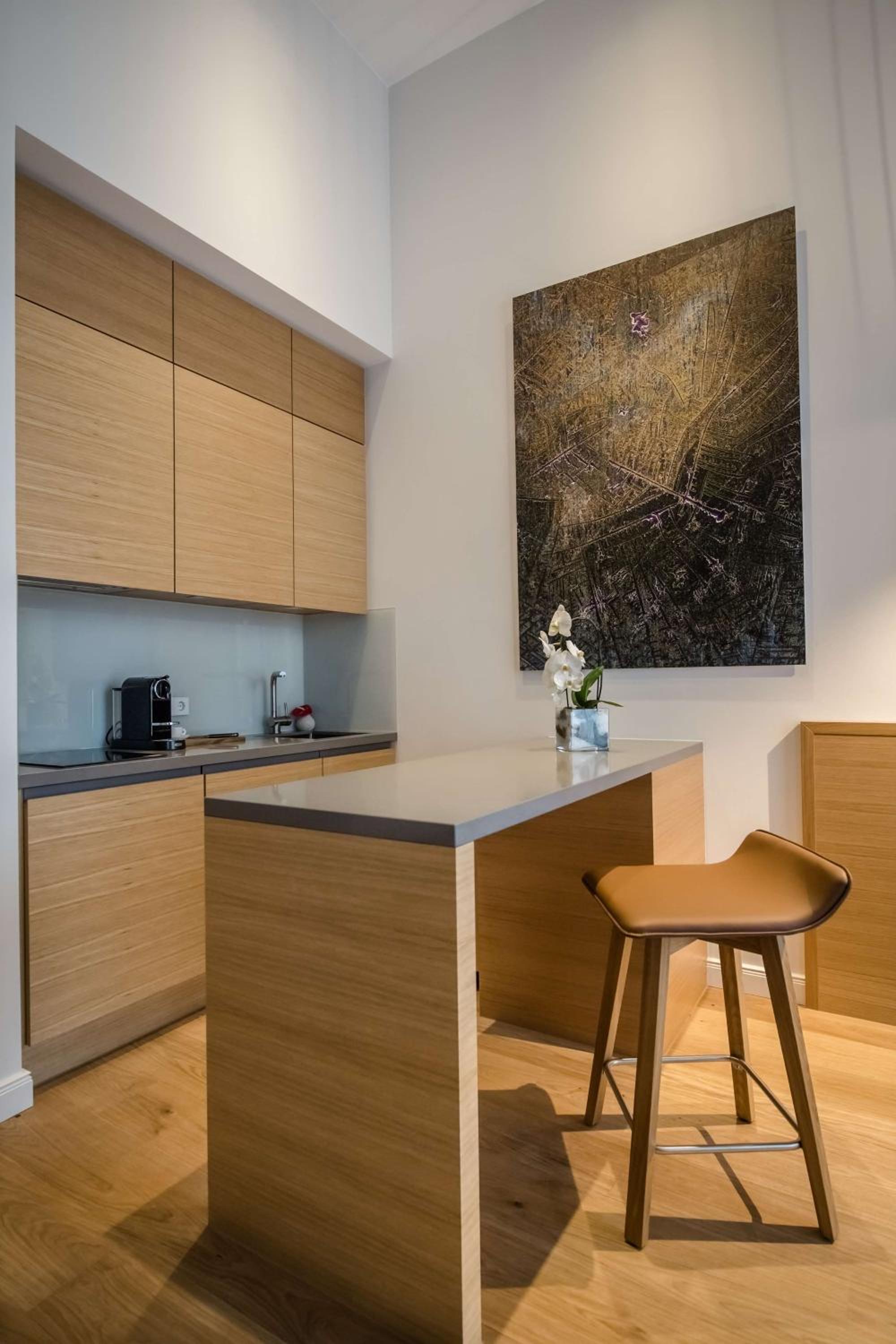Indulge in the opulence of suites and studios at The Wellem, featuring fully equipped kitchens, high ceilings, and exclusive artworks for a truly unique stay.