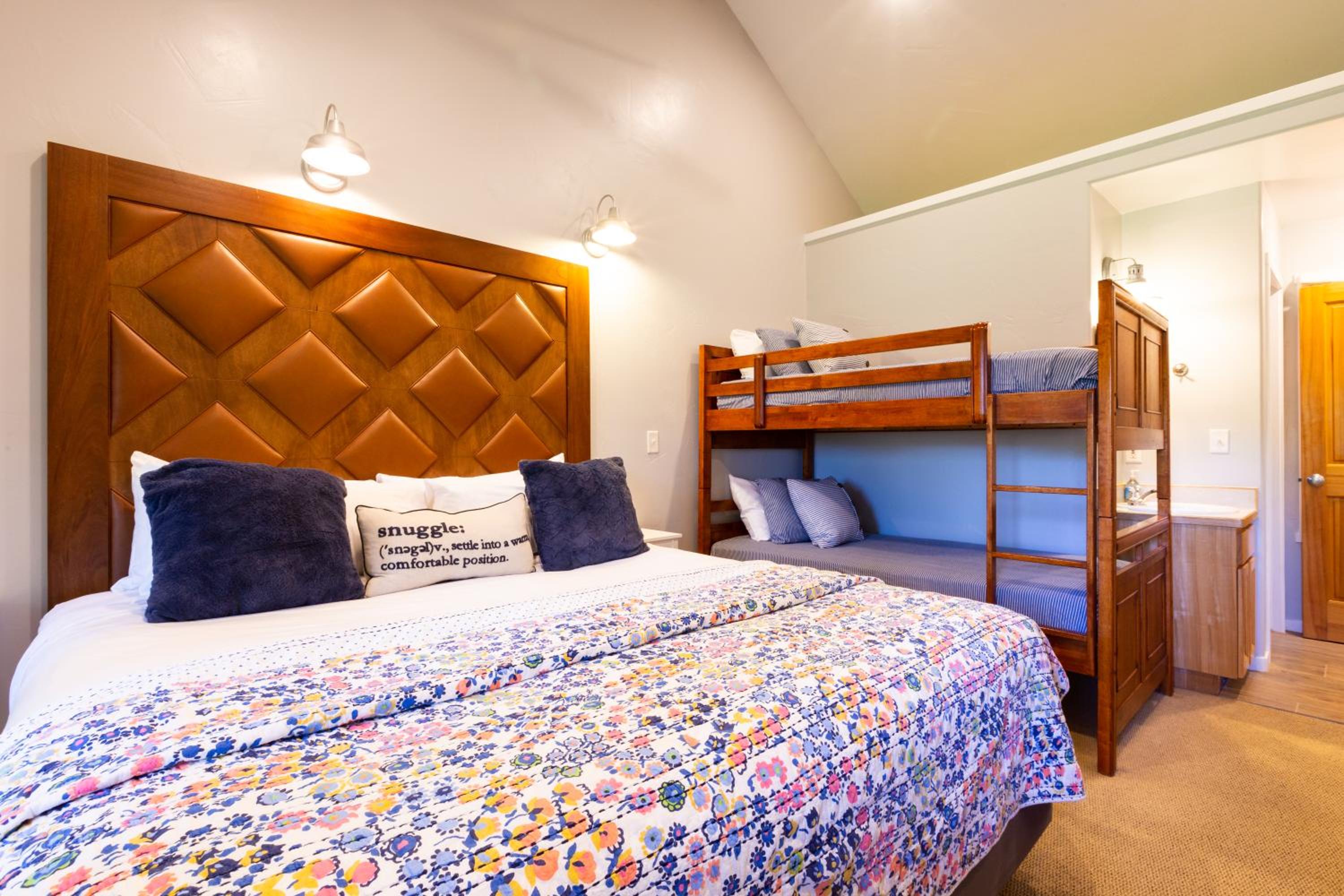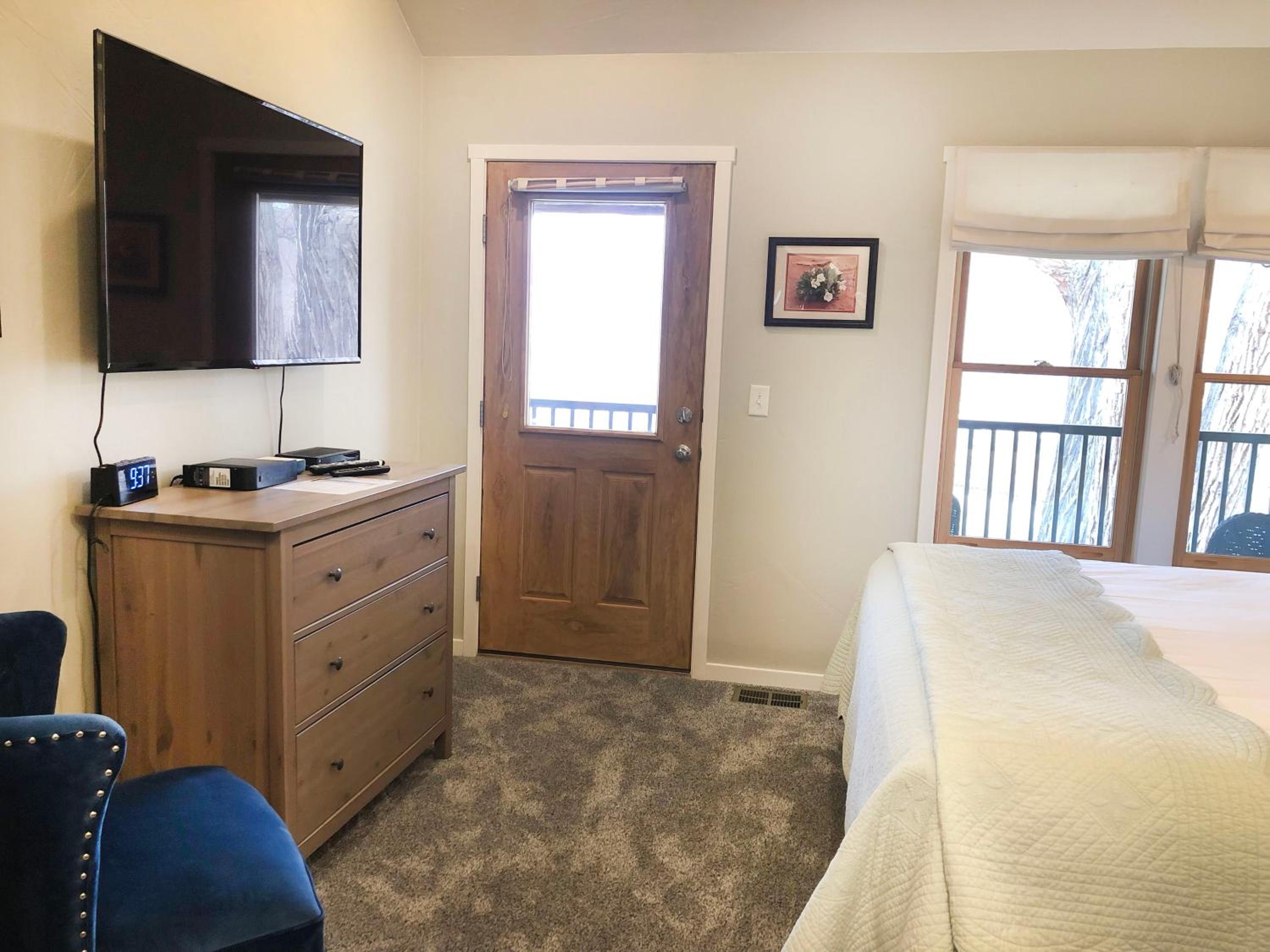Newer facilities/cabin, comfy beds and pillows. Adequate AC when 100 degrees plus. Available coolers, ice, grilling equipment and minutes from town. The meadow was an oasis. Plus Wizard the cat watches over everything at the main house.
