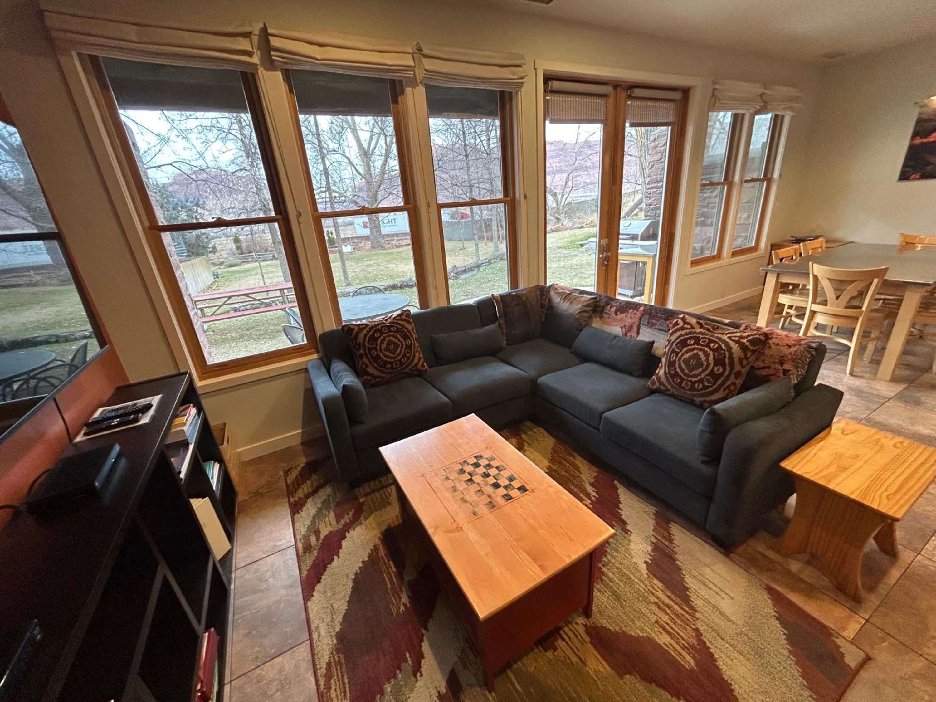 The cabin was perfect for our needs. My son and daughter-in-law were running the Moab Half Marathon Trail Race and I was taking care of my 17 month old granddaughter. There was plenty of outside areas to keep her busy and it was really easy to take care of her here.