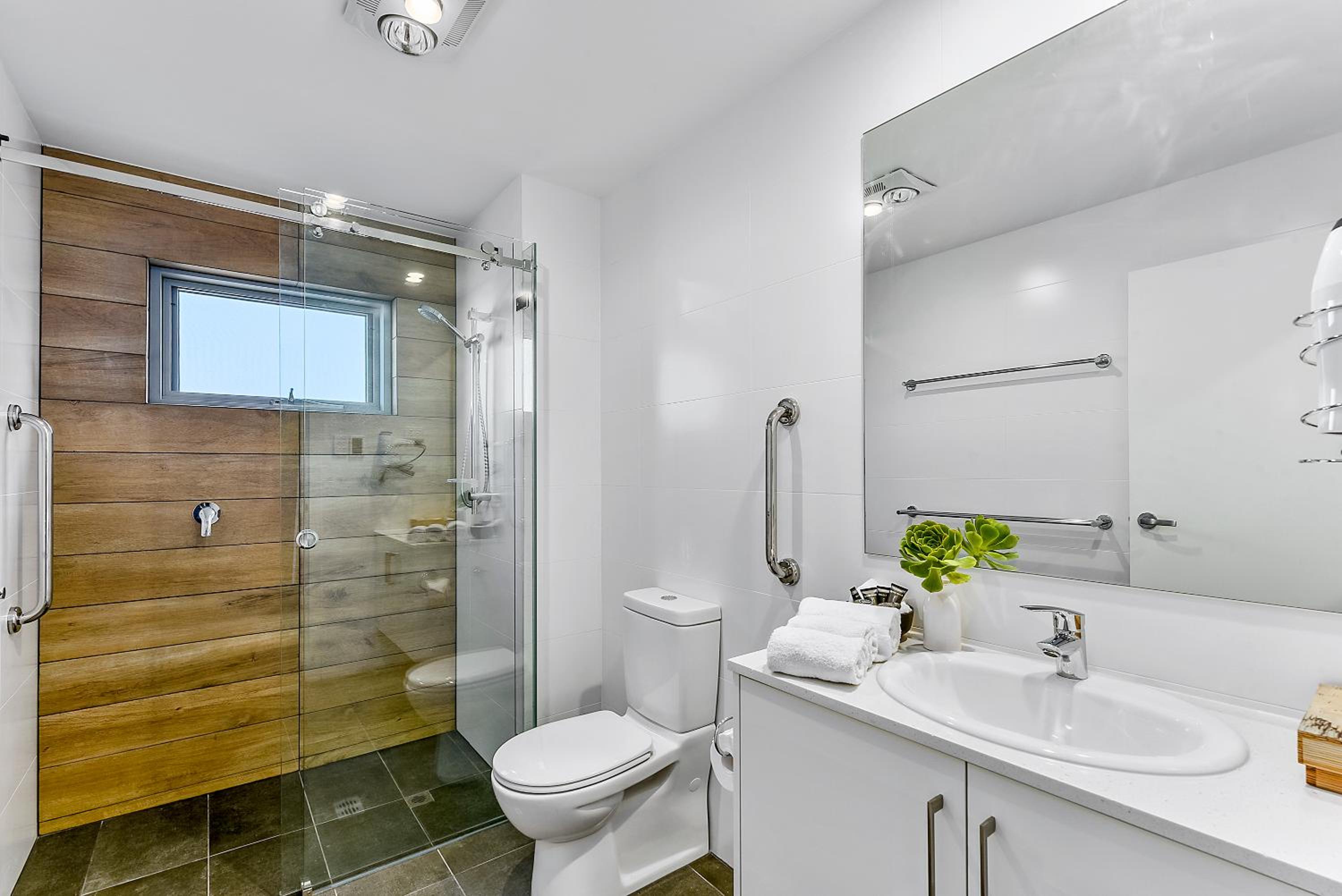 Shower screen and mirror above bathroom sink need a clean. Does not look like they have been cleaned for some time.