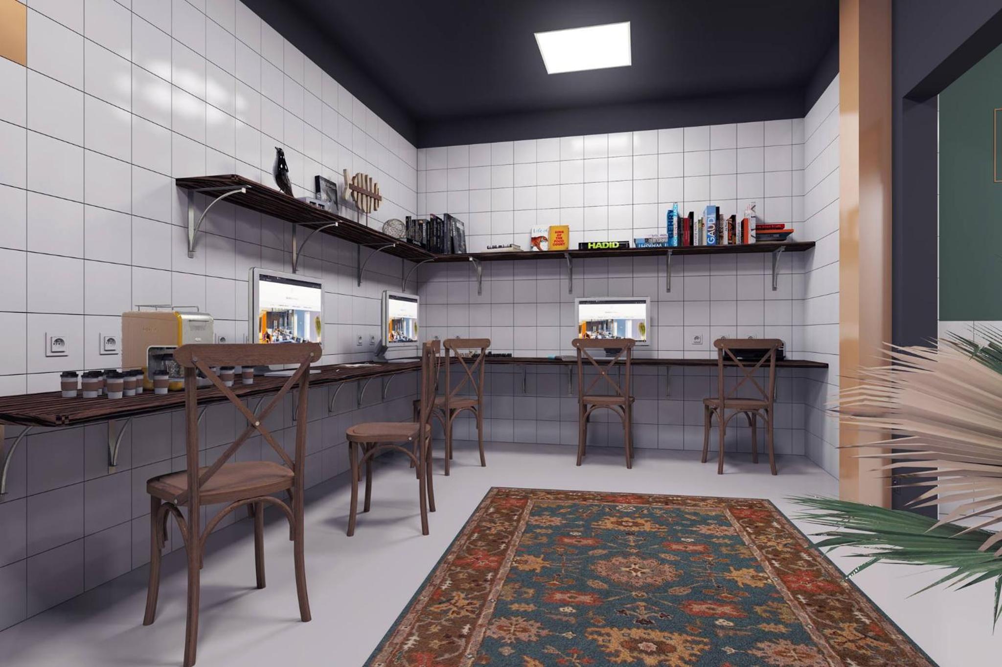 - Є зона відпочинку та кулер із холодною та гарячою водою, мікрохвильовка