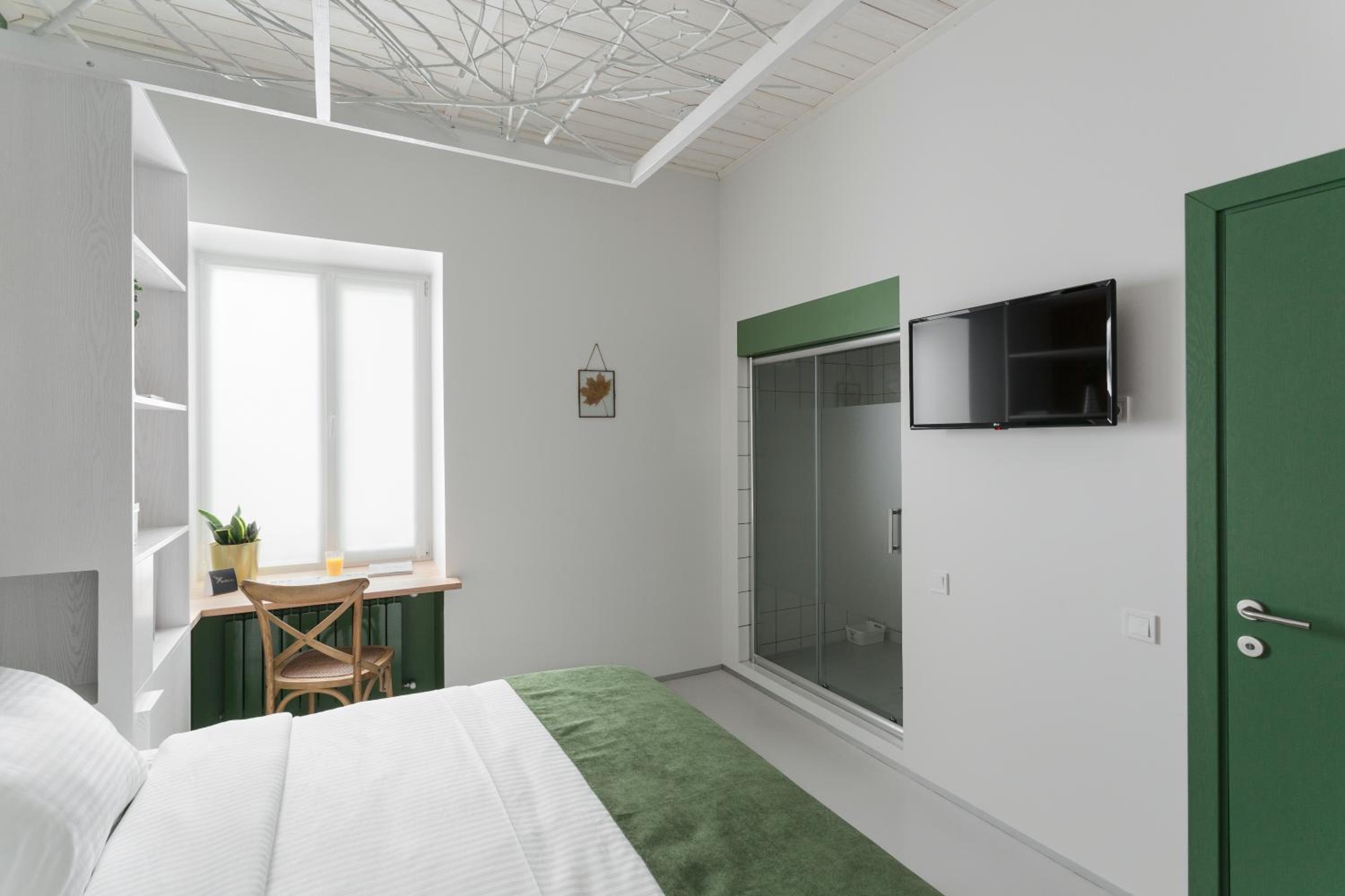 Небольшой современный отель в центре города. Номер-полулюкс. Интересное дизайнерское оформление номера. Душ и туалет/умывальник - два отдельных помещения. Удобный рабочий стол. Удобная кровать. Масса розеток, размещение которых продуманно. Сейф. Зимой тепло, и есть свой кондиционер. На этаже отдельная уютная деловая/кухонная зона. Ценовое предложение за такие условия зимой было превосходным.