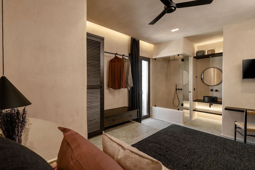 We loved our stay at the Emery. Our check in was seamless (after being delayed by a day). Adrianna was super friendly and even offered us a bottle of wine to toast our arrival with our friends. So sweet and thoughtful. Room was super well appointed and comfortable. Curtains had a few holes in them and were a bit tattered but that didn’t affect our stay. Best water pressure in the shower I have ever experienced. Breakfast was good and had options. You order the night before and they prepare it when you come down. The location was ideal. Right in the middle of it all but tucked away from shops and restaurants allowing for a peaceful sleep. Ten minute walk past shops and restaurants to the port and to the Georgios Beach. The beds were super comfy but could benefit from a quilt or duvet to make them a bit more cozy (Literally the only thing I would change about the room.) Also included a good strong hair dryer and Nesspresso machine and fridge. Huge bonus for me. Highly recommend this place. Don’t think twice. Book it.