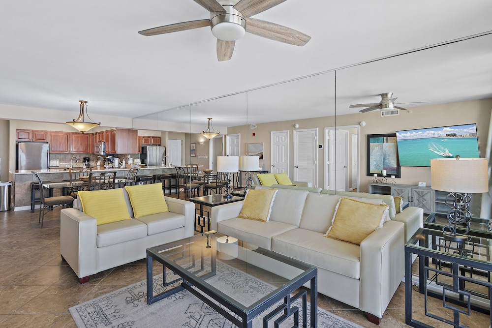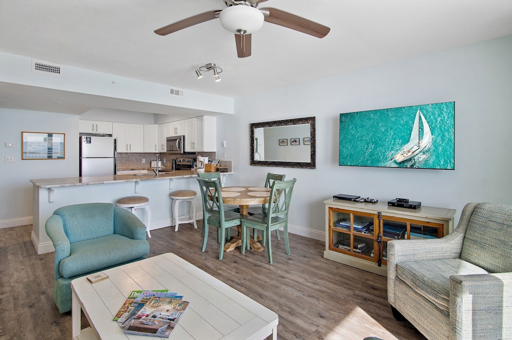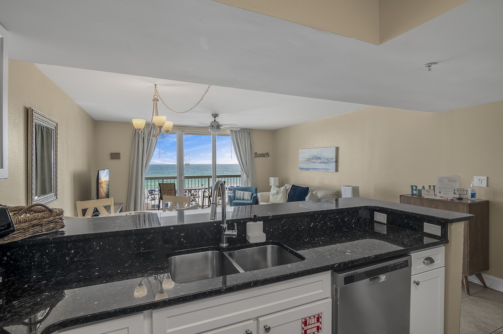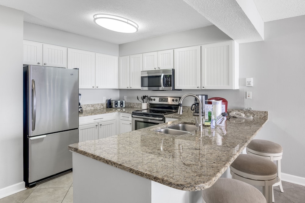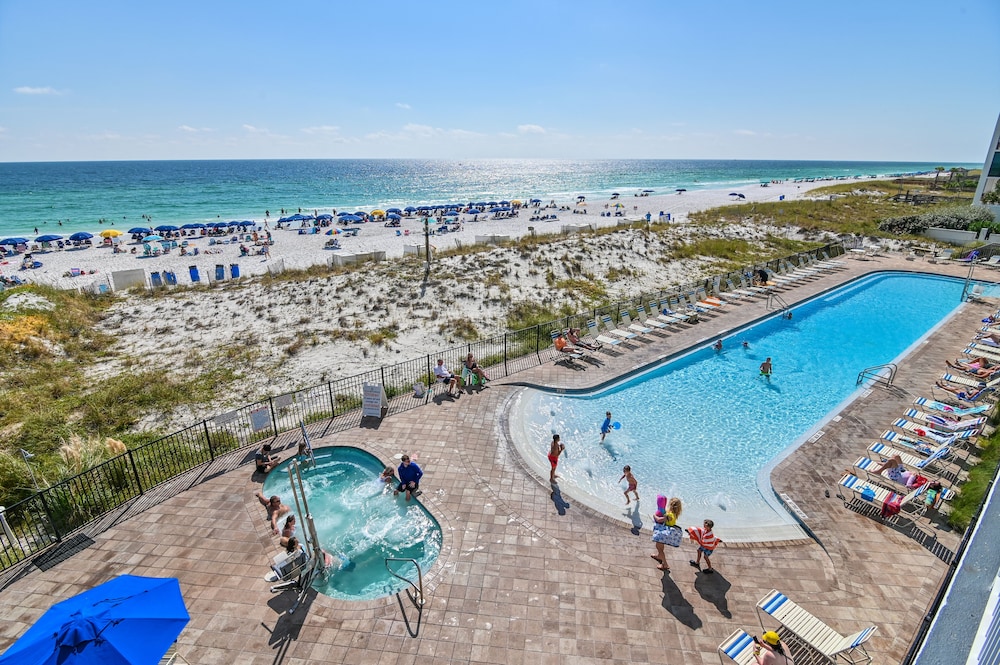 This was the best beach vacation. The condo was clean and comfortable. The manager was extremely helpful and checked on us to make sure everything was going good. The staff were nice and helpful too. The food and drinks from the tiki bar and cafe were some of the best. We particularly liked the honey bbq wings. The sand was white and clean. We saw dolphins from our condo balcony. This is the perfect place for families with kids.