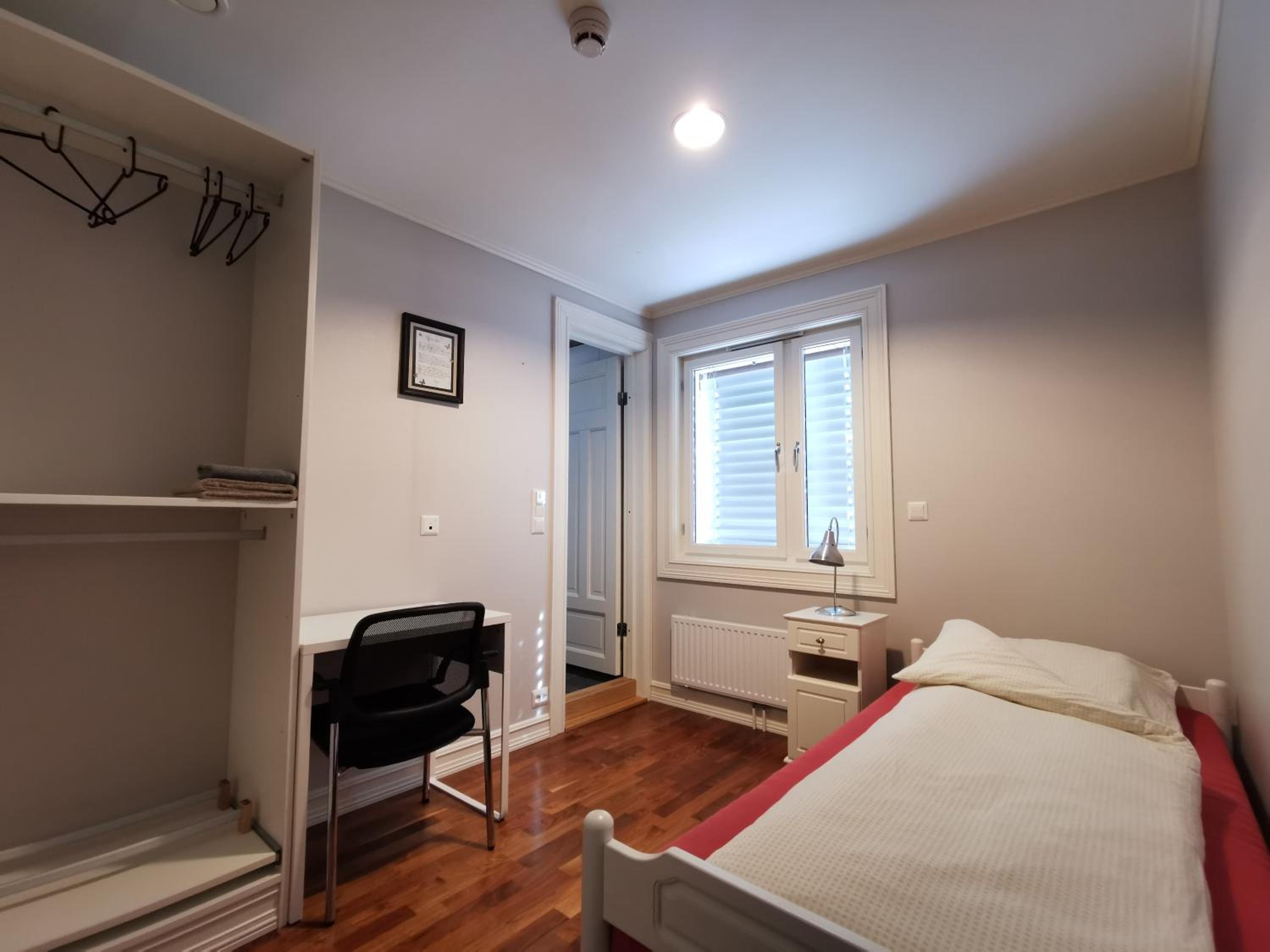 Good wifi, TV-lounge, kitchen. Quiet. Comfortable bed and the building looked very fresh and inviting. Very nice and serviceminded receptionist.