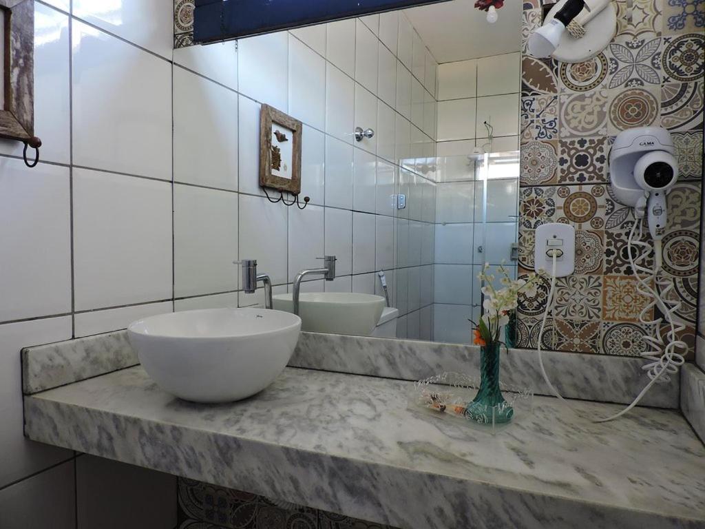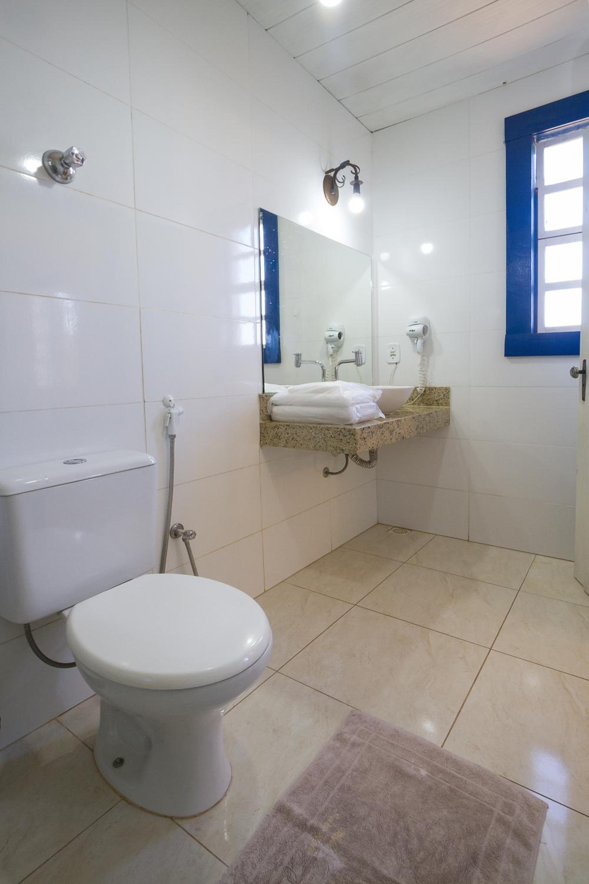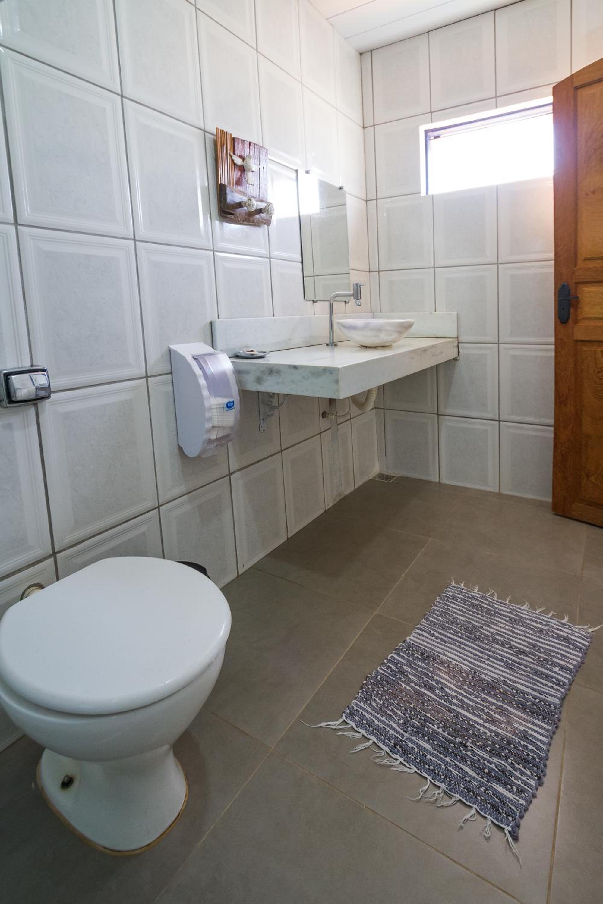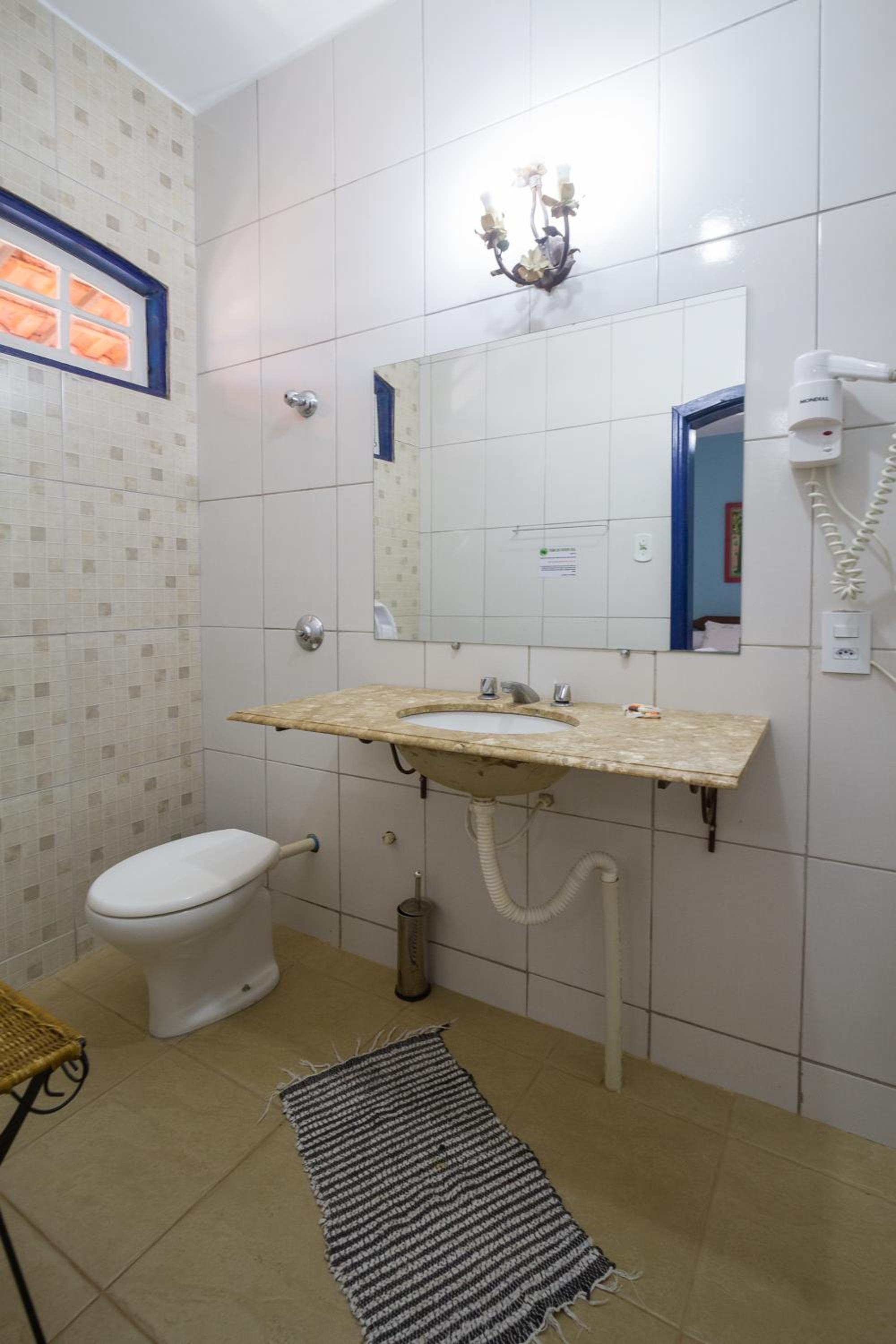 Banheiro da suíte não tem porta, tem somente uma cortina, sendo que tem uma porta de vidro transparente separando a parte da pia do restante. Algumas partes da pousada estão antigas e precisando de reformas.