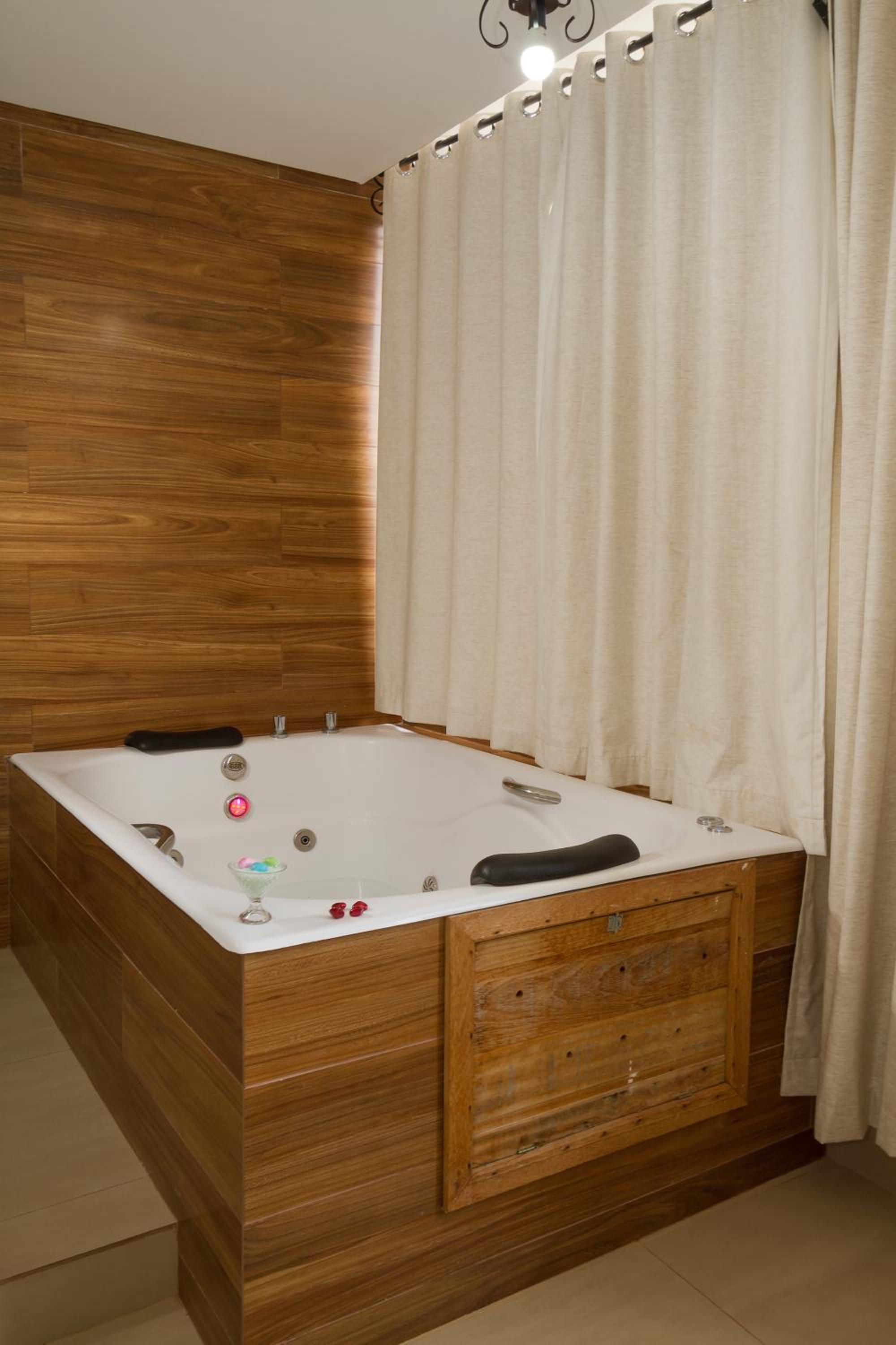 O hotel precisa urgentemente de manutenção: vazamento no banheiro deixando todo o piso molhado. O quarto possuía banheira de hidromassagem porém a mesma não funcionava. No primeiro dia da reserva, faltou água em vários quartos. Foi-nos oferecido que tomássemos banho no quarto nº. 1, com chuveiro elétrico, no andar térreo, porém, quando meu esposo foi tomar banho, o chuveiro começou a emitir faísca e exalar fumaça… Conclusão: Fiquei sem tomar banho. No segundo dia de reserva, faltou luz das 22:00 às 03:00 horas da manhã.