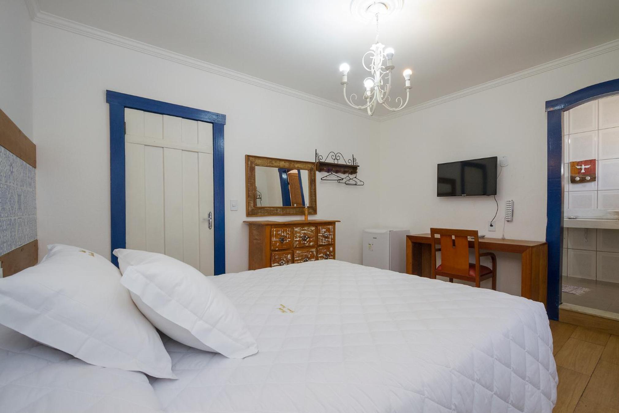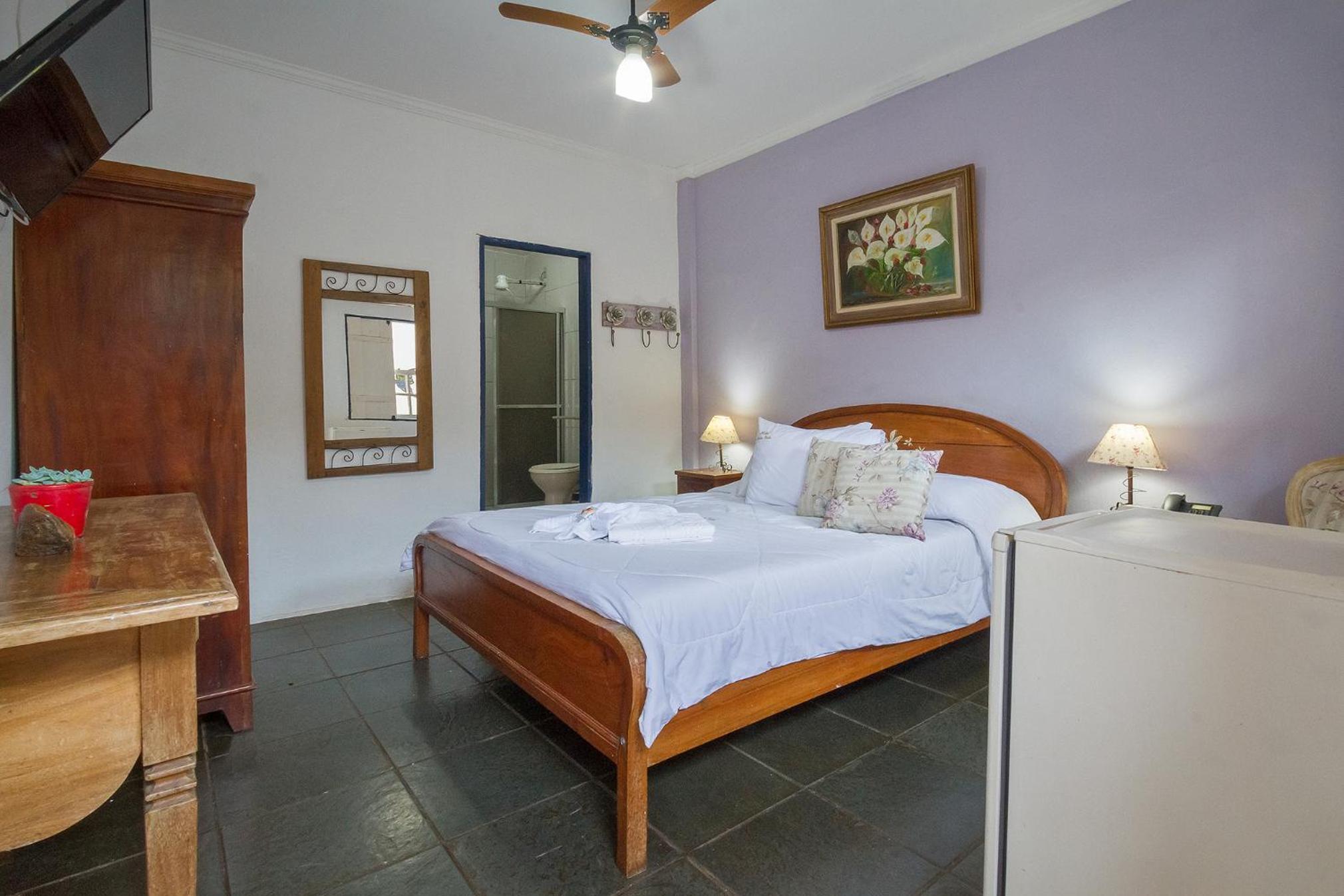Boa localização. Ficamos em um quarto superior espaçoso, bem arejado, com ar condicionado e cama king. Tinha cachaça de cortesia e a área externa é bem agradável. Bom café da manhã.