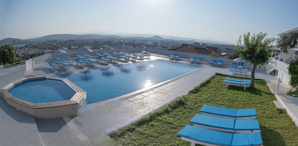 Erkek arkadaşımla 2 günlük bir kaçamak yapıp tercih ettiğimiz bir yer. Öncelikle yetkilisi bir çift aşırı samimi ve cana yakın insanlardı. Rustik masmavi taş duvarlı deniz ve havuz manzaralı muhteşem bir oda verildi bize. Banyo tuvaleti temizlik açısından kesinlikle çok iyiydi. Kahvaltısı normal ideal fiyatlar aşırı pahalı değildi. Ben ve erkek arkadaşım için çok güzel bir deneyimdi ve asla unutamayacağımız bir yerdi. Emekleri ve hizmetleri için sonsuz teşekkürleeerr ::)))))